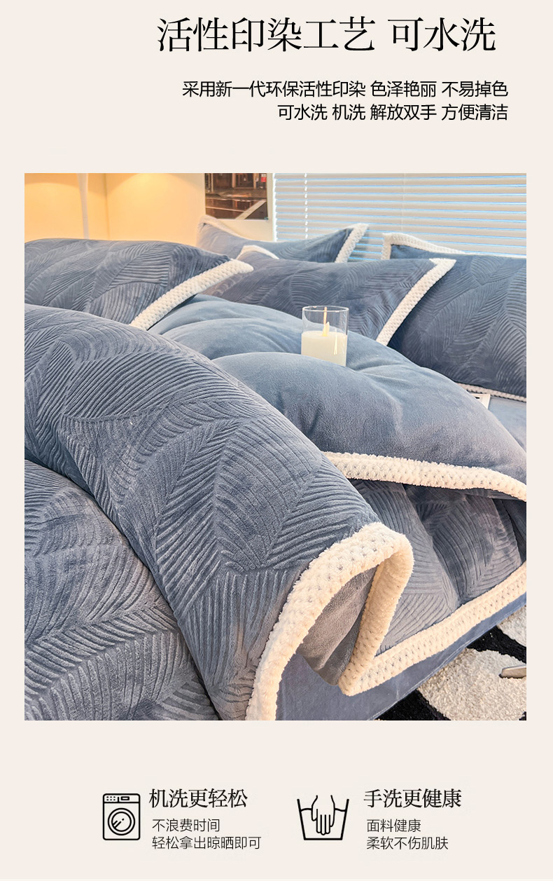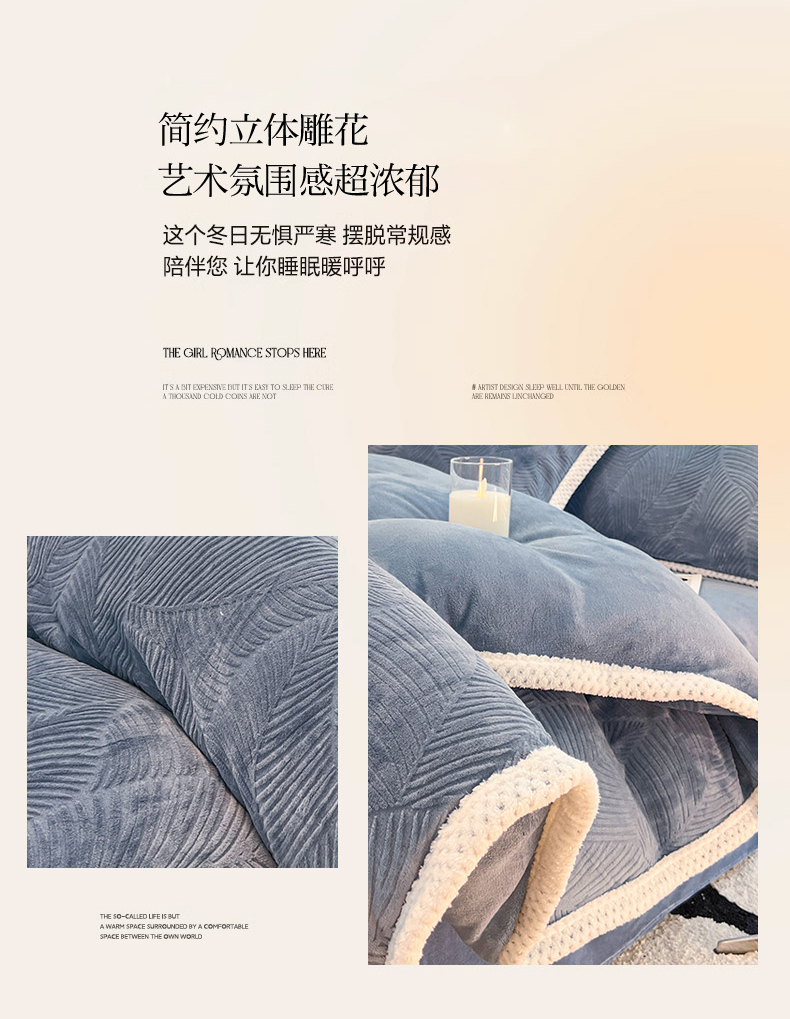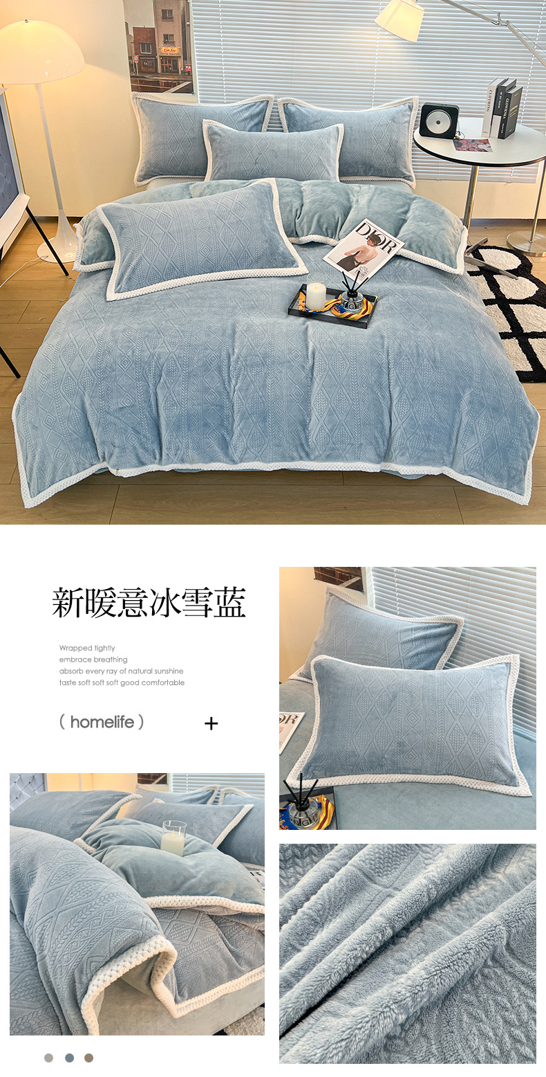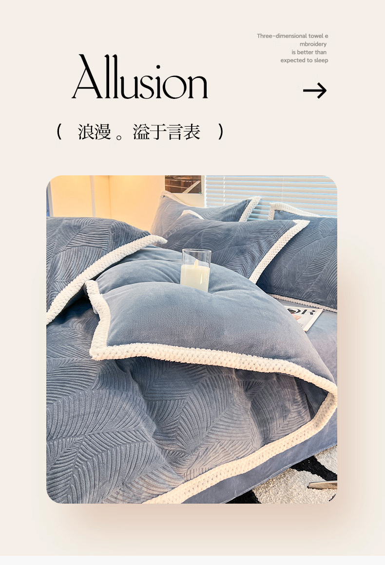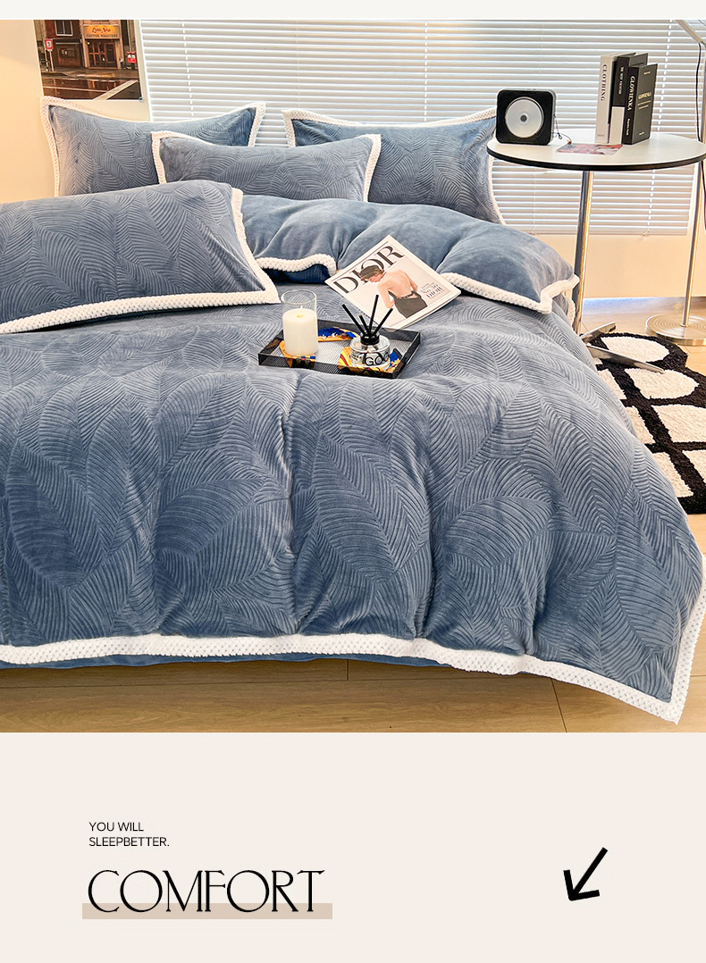 商品名称:(总)2024新款A类高克重3D立体雕花牛奶绒保暖系列套件单品-四件套