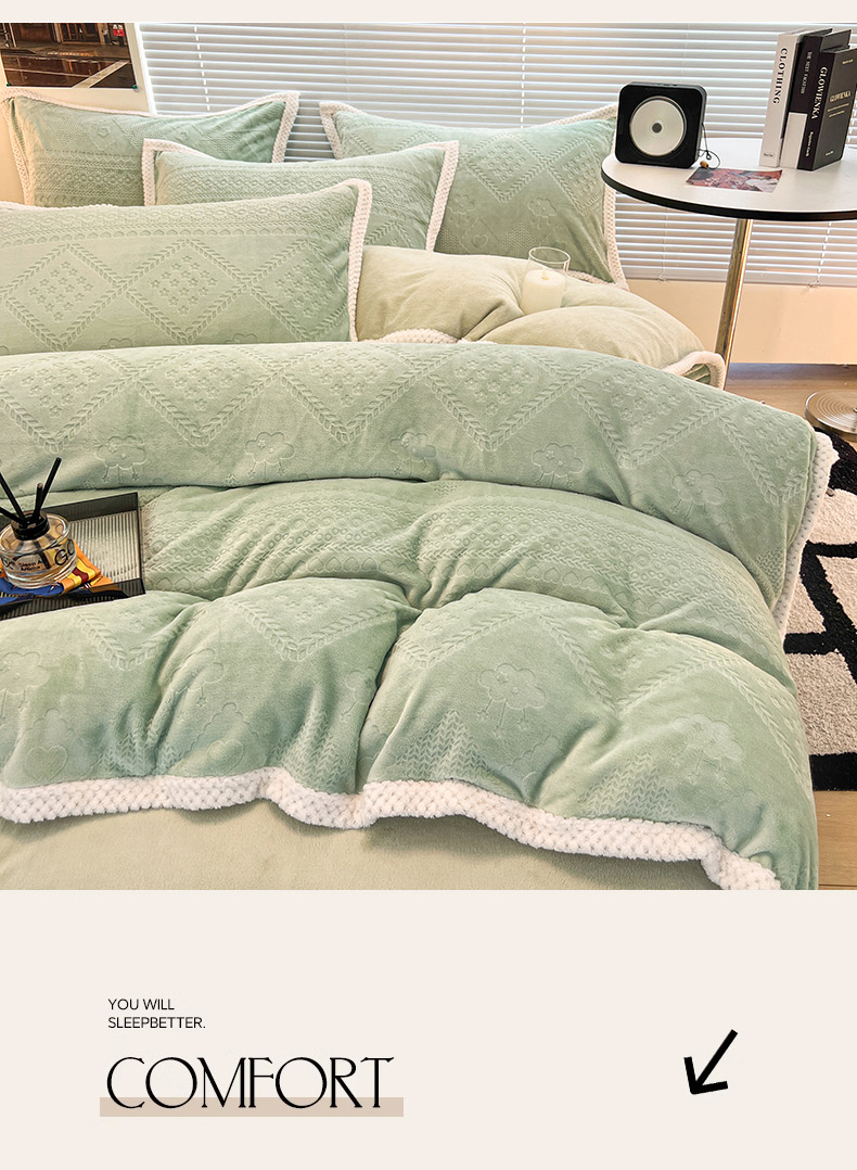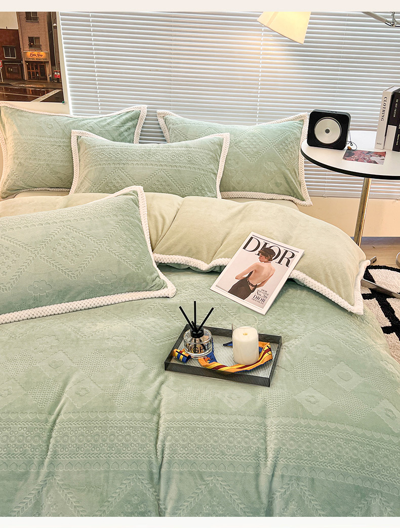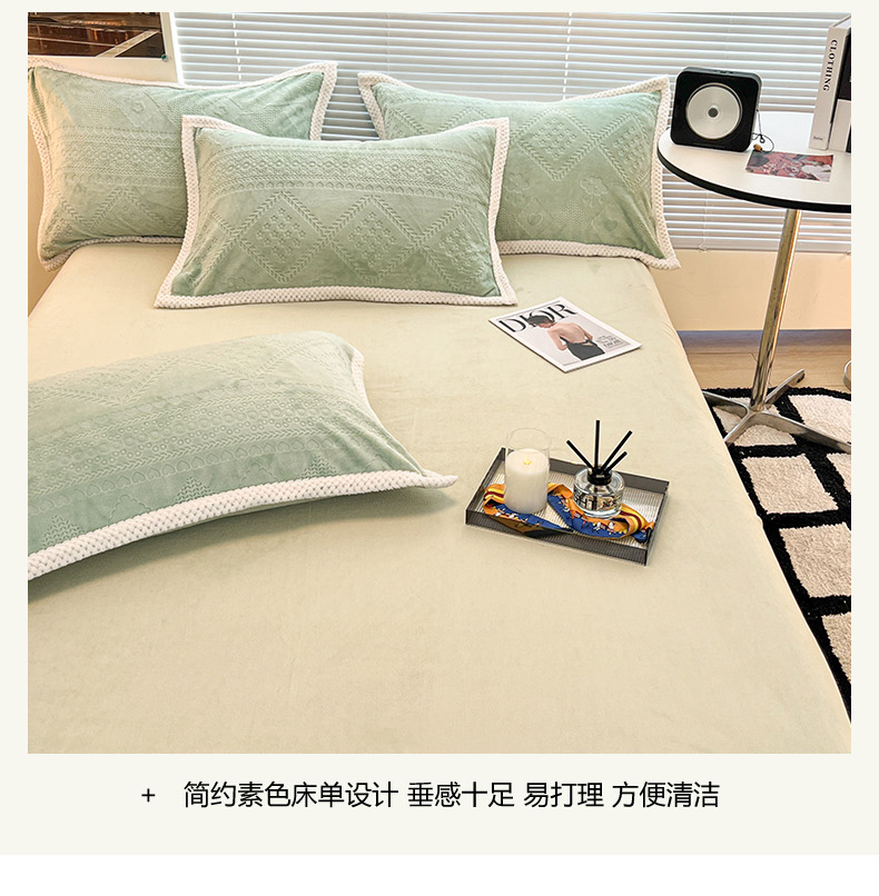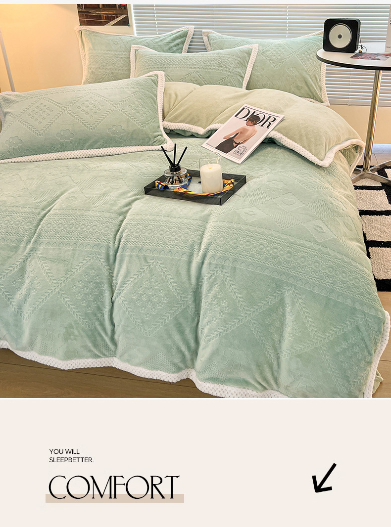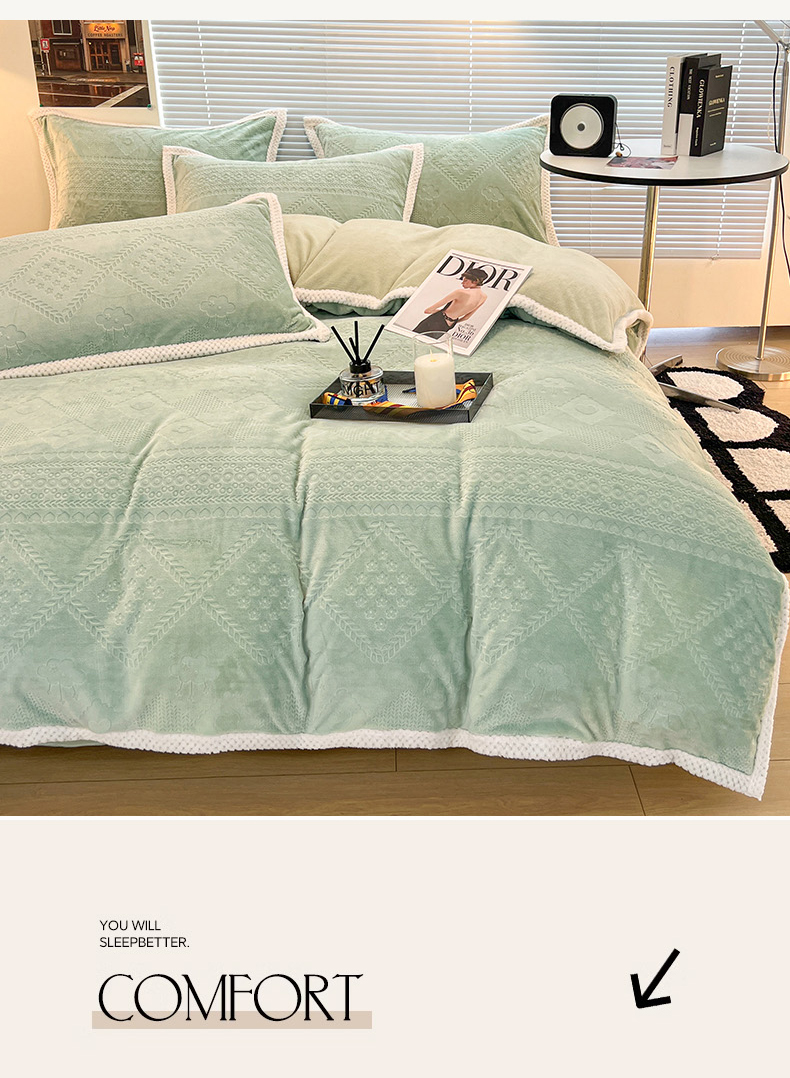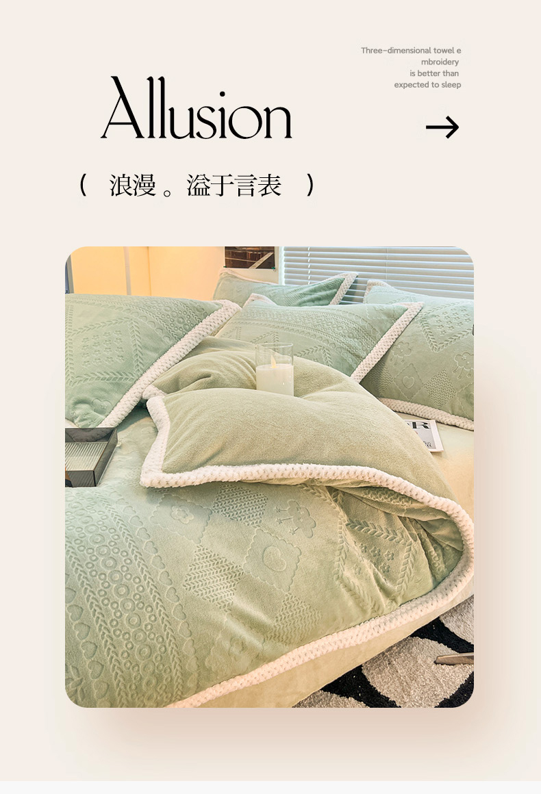 当前位置: 91家纺网 > 商品网购 > 床品套件 > 四件套 > 牛奶绒四件套 > 2024新款A类高克重3D立体雕花牛奶绒保暖系列套件单品-四件套 新泫雅花青春绿