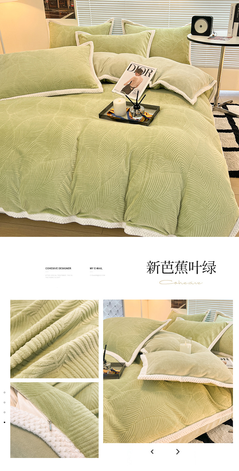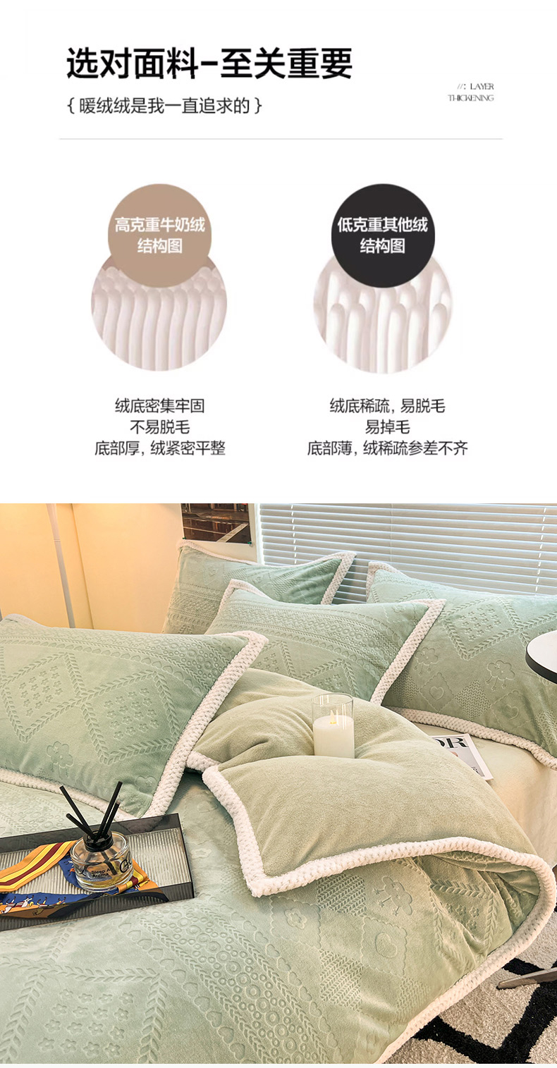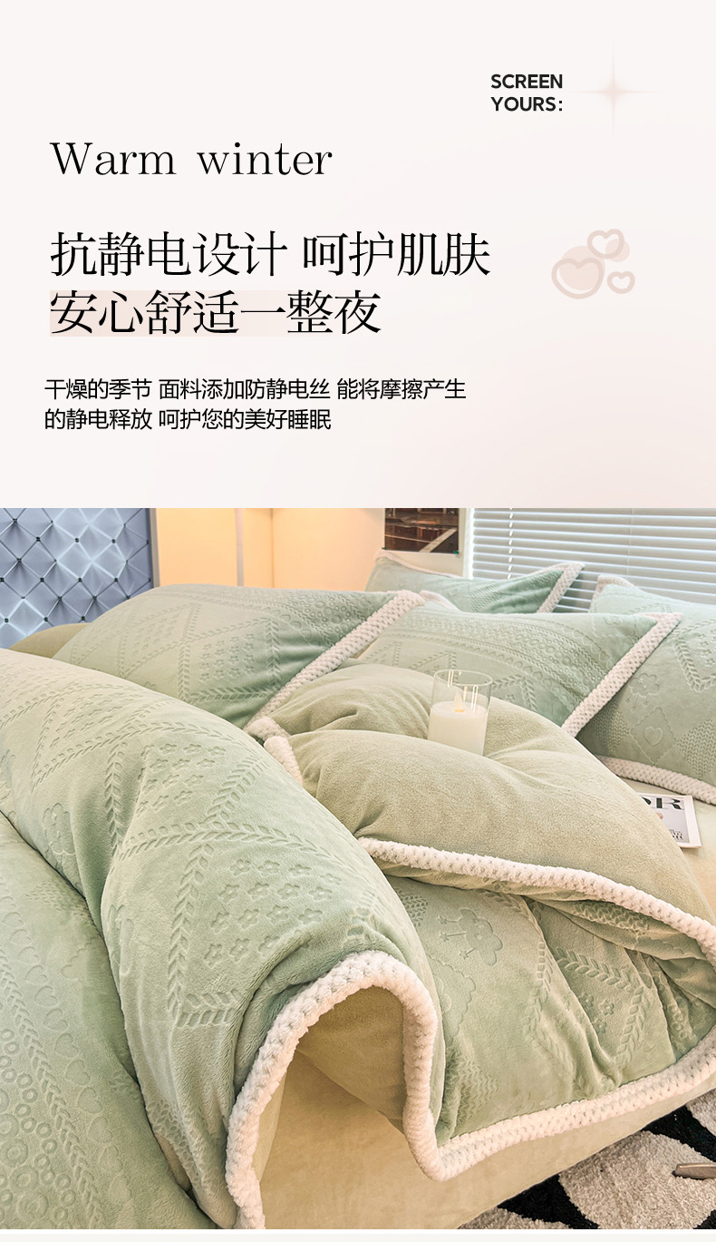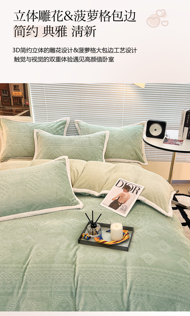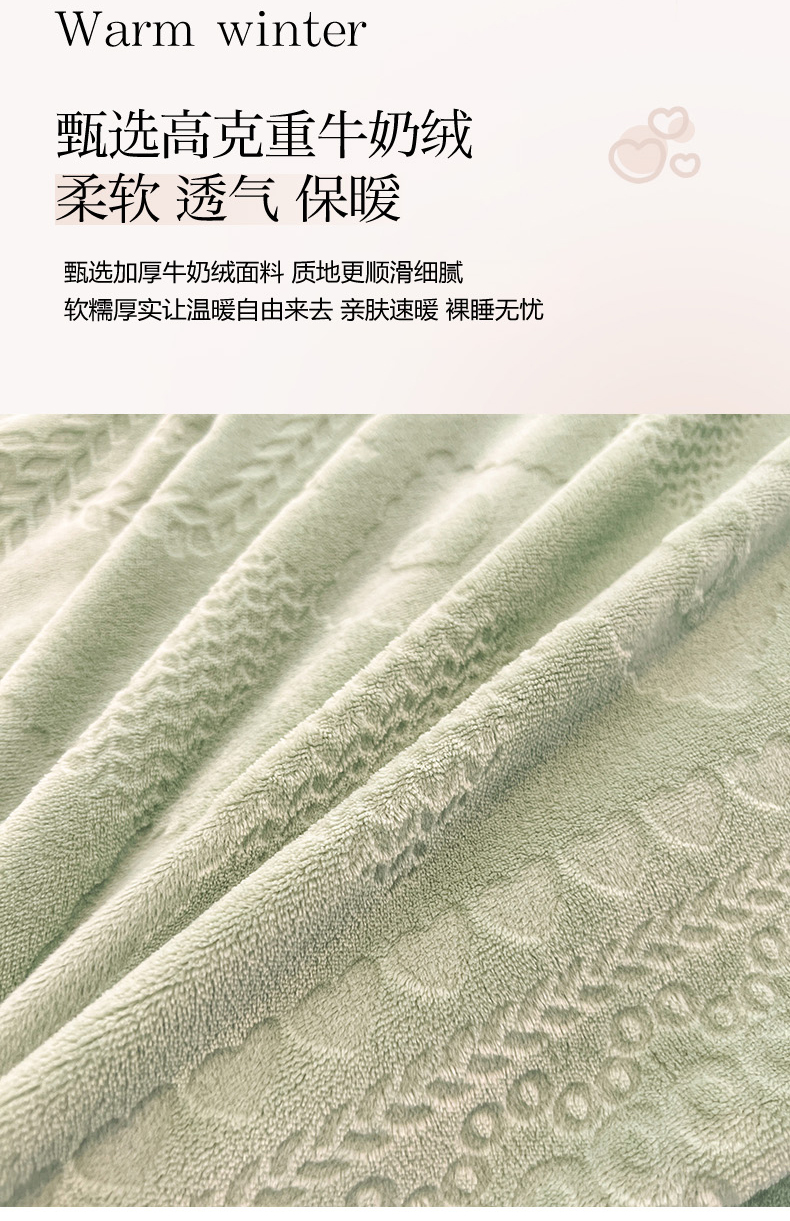 商品名称:2024新款A类高克重3D立体雕花牛奶绒保暖系列套件单品-被套 新泫雅花青春绿