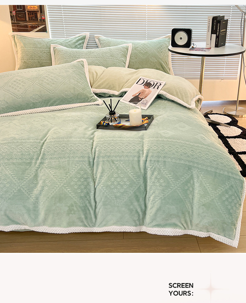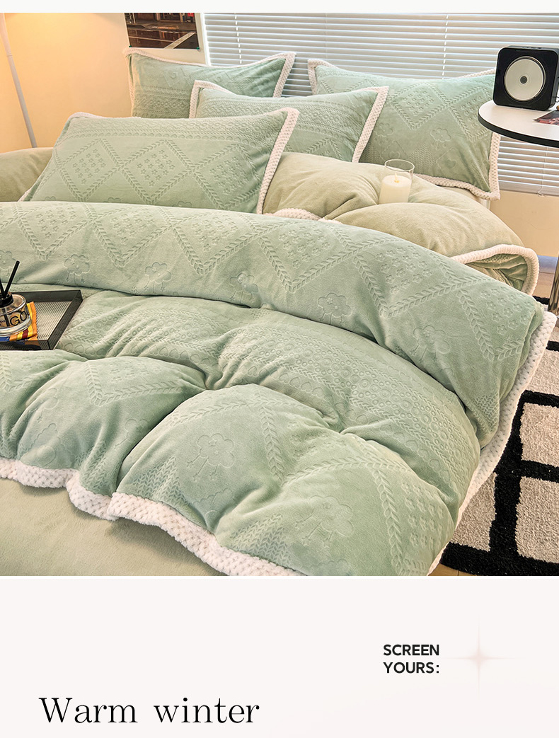 2024新款A类高克重3D立体雕花牛奶绒保暖系列套件单品-被套 新泫雅花青春绿