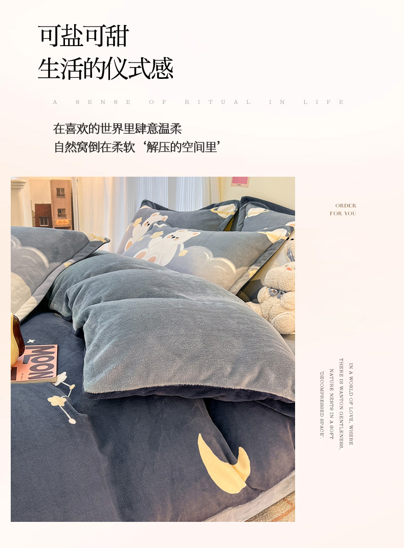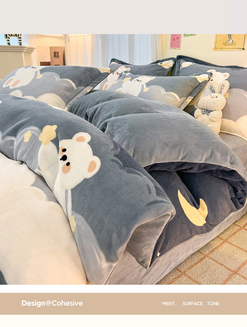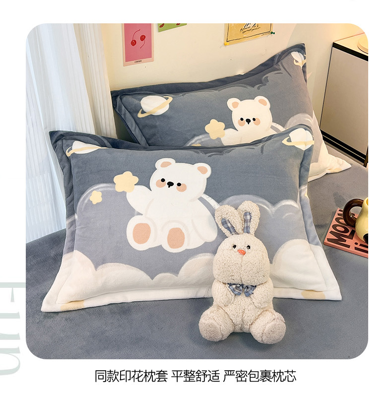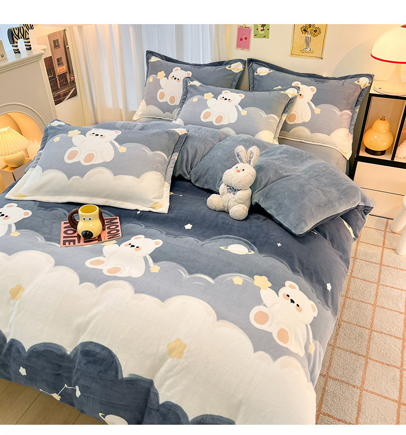 当前位置: 91家纺网 > 商品网购 > 床品套件 > 四件套 > 牛奶绒四件套 > 2024新款A类高克重时尚风牛奶绒加厚保暖系列套件单品-四件套 星球小熊