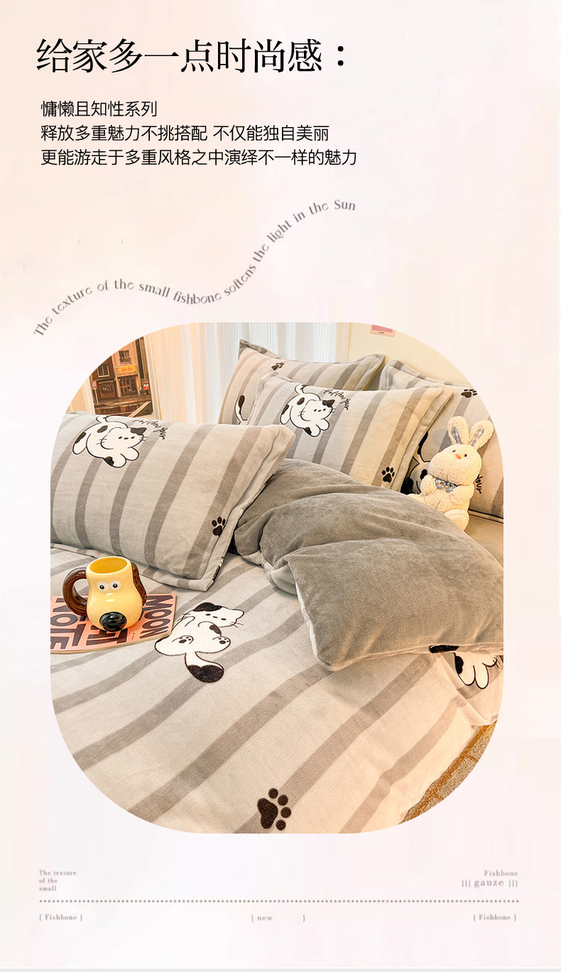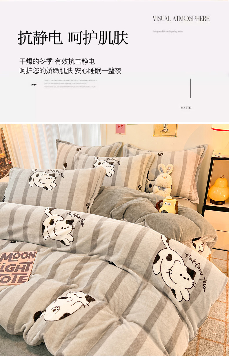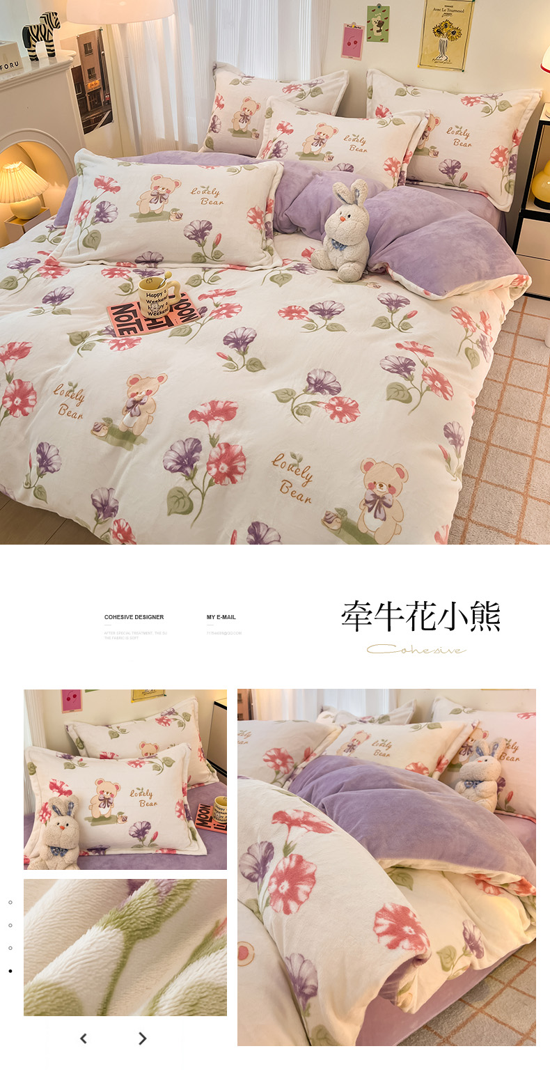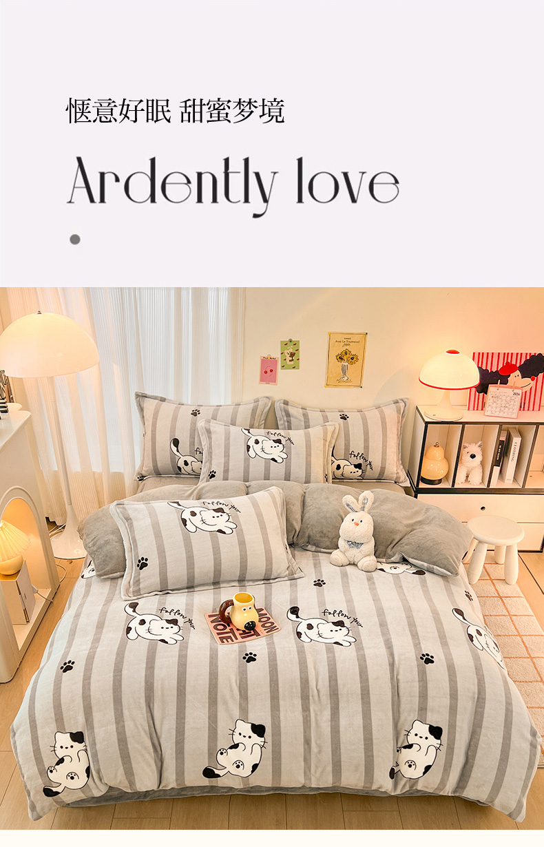 (总)倾慕家纺 2025新款卡通毛巾绣加厚保暖牛奶绒四件套,爱心女孩,咖啡小狗,猫咪熊兔,迷你小车,圣诞树熊,音乐企鹅