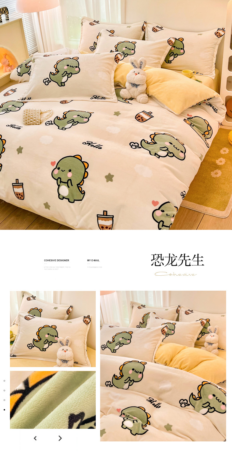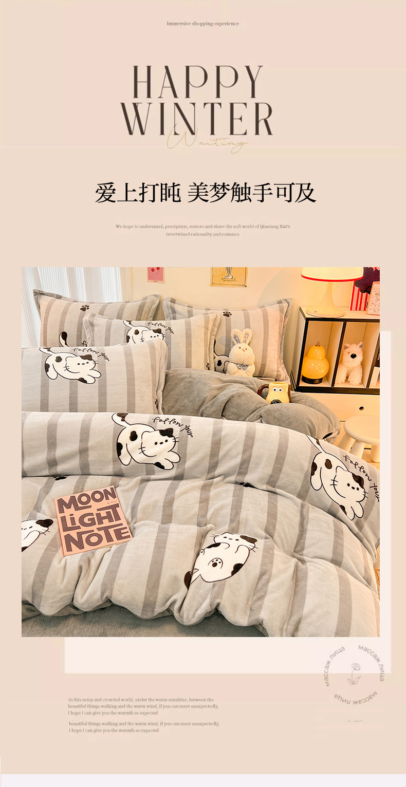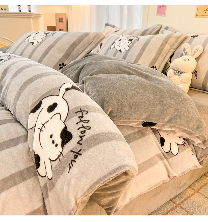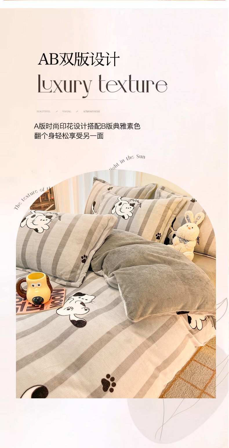(总)倾慕家纺 2025新款卡通毛巾绣加厚保暖牛奶绒四件套,爱心女孩,咖啡小狗,猫咪熊兔,迷你小车,圣诞树熊,音乐企鹅