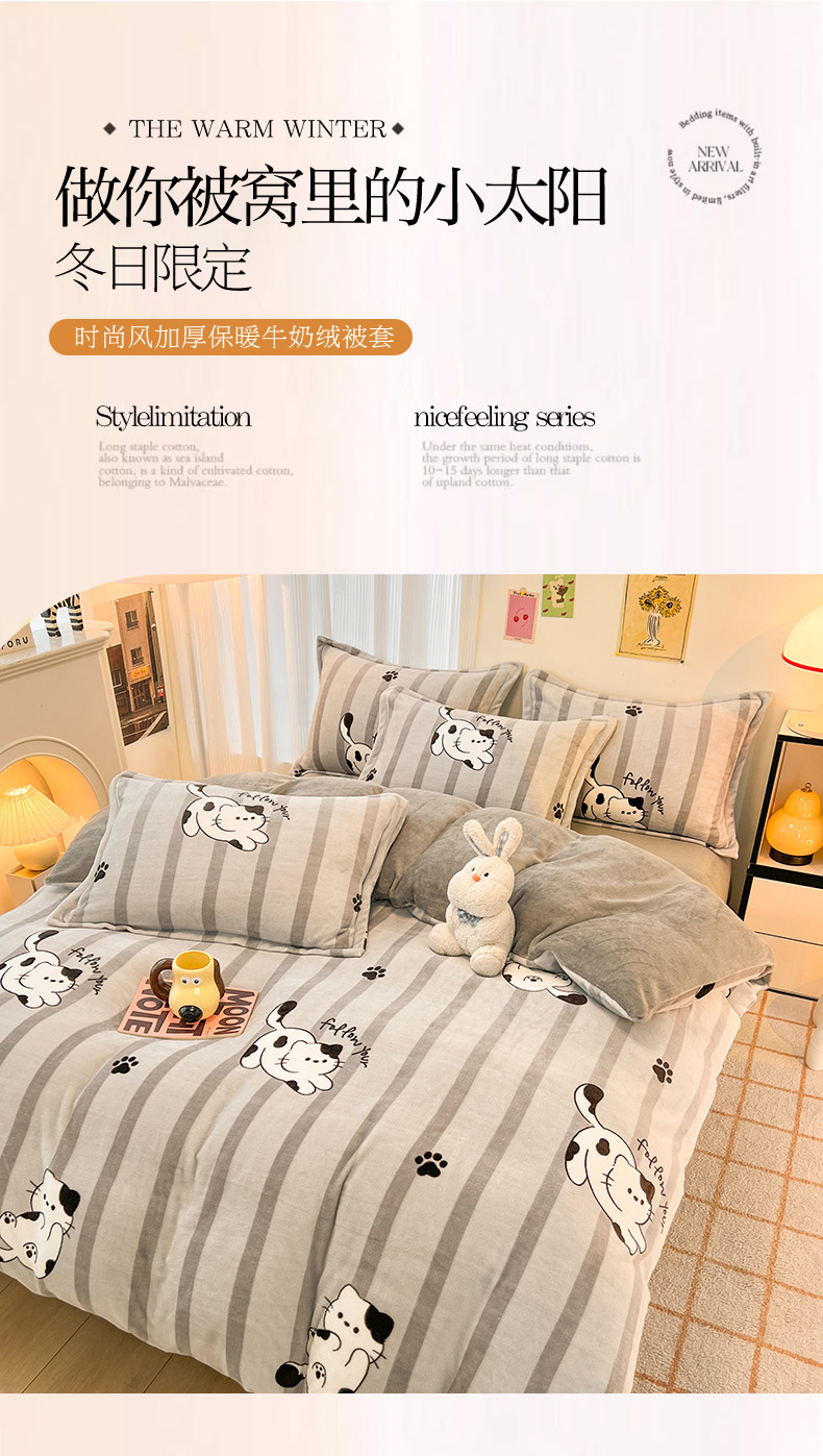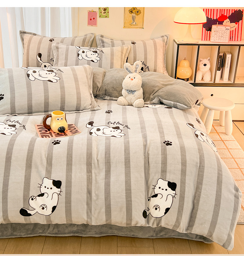 2024新款A类高克重时尚风牛奶绒加厚保暖系列套件单品-被套 黑白猫