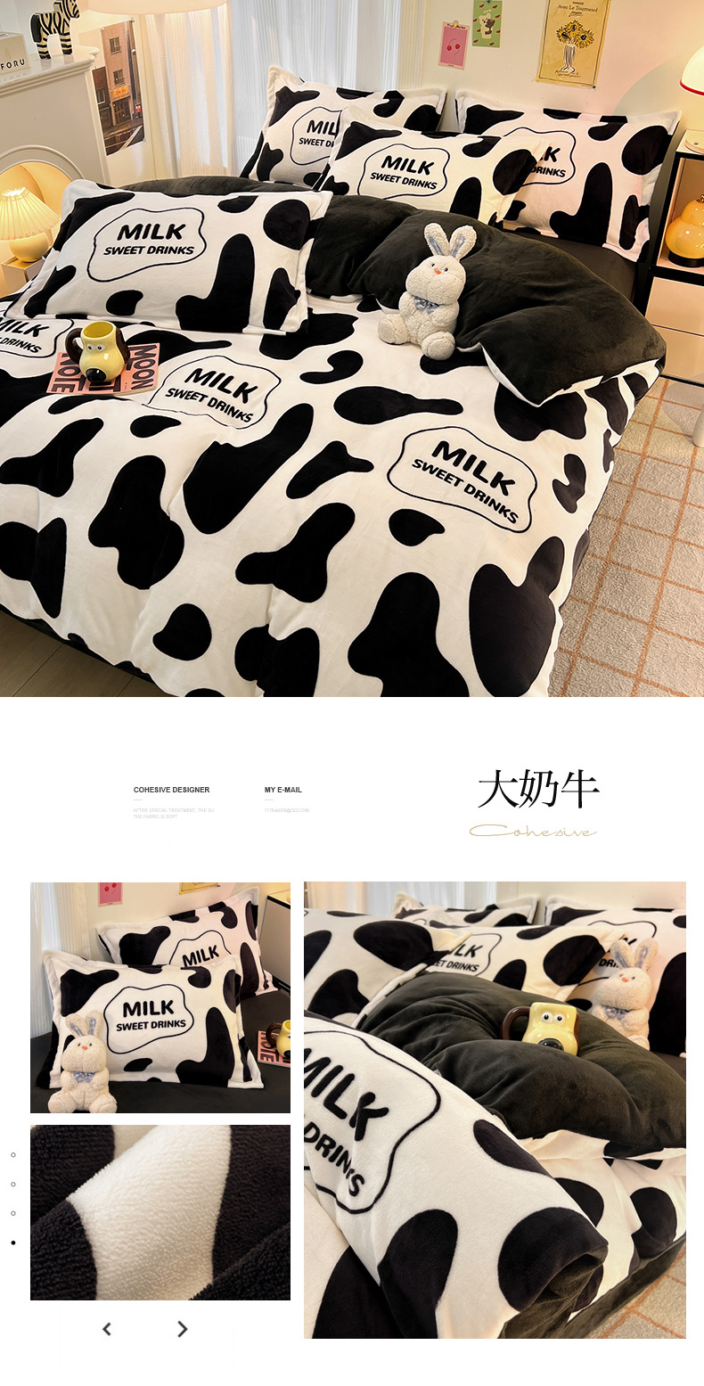 商品名称:2024新款A类高克重时尚风牛奶绒加厚保暖系列套件单品-被套 黑白猫