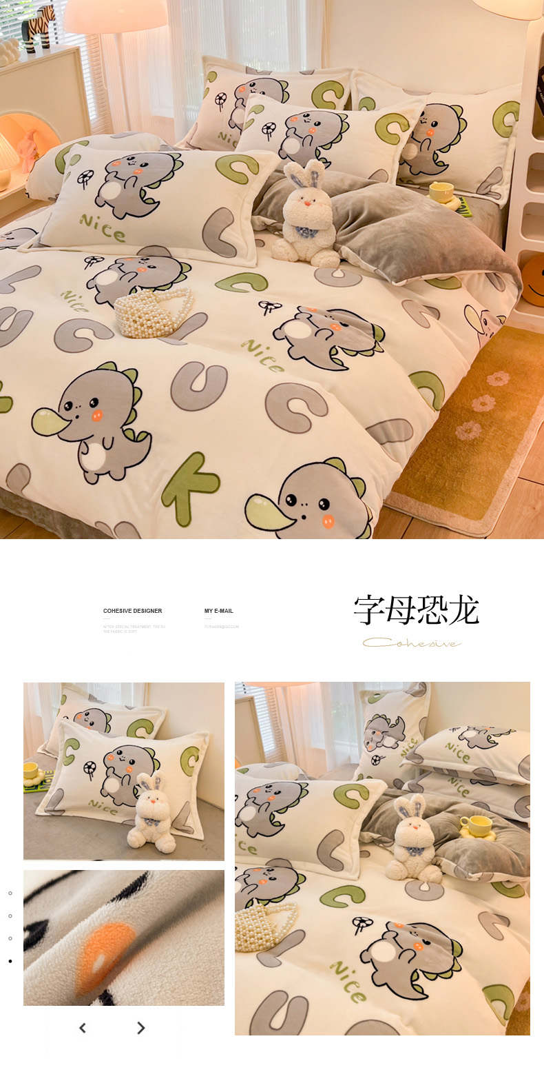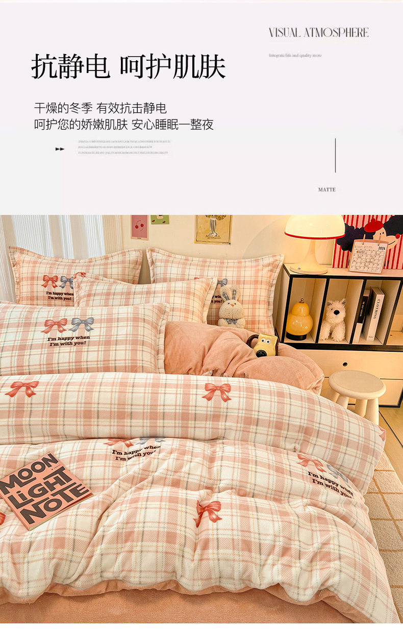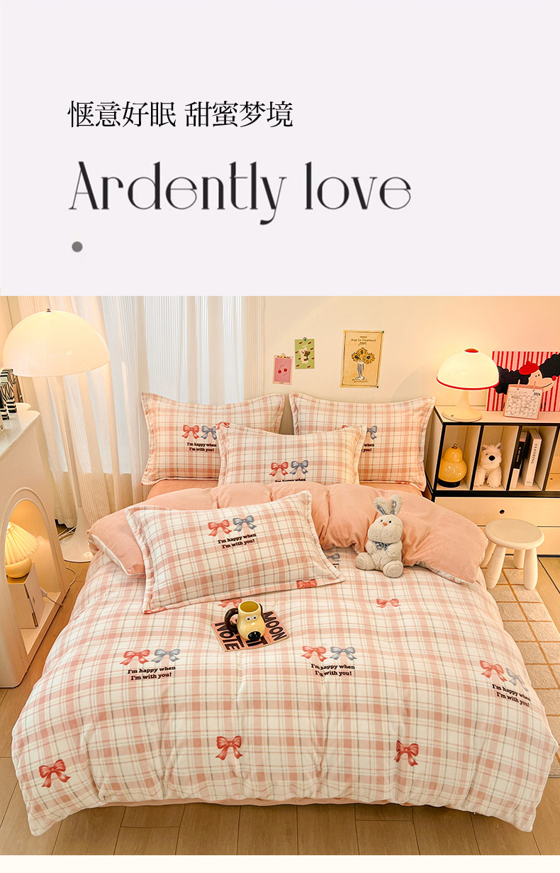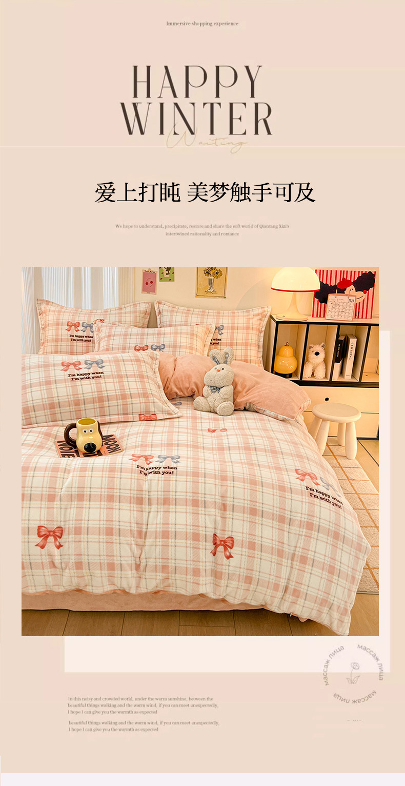 (总)倾慕家纺 2025新款卡通毛巾绣加厚保暖牛奶绒四件套,爱心女孩,咖啡小狗,猫咪熊兔,迷你小车,圣诞树熊,音乐企鹅