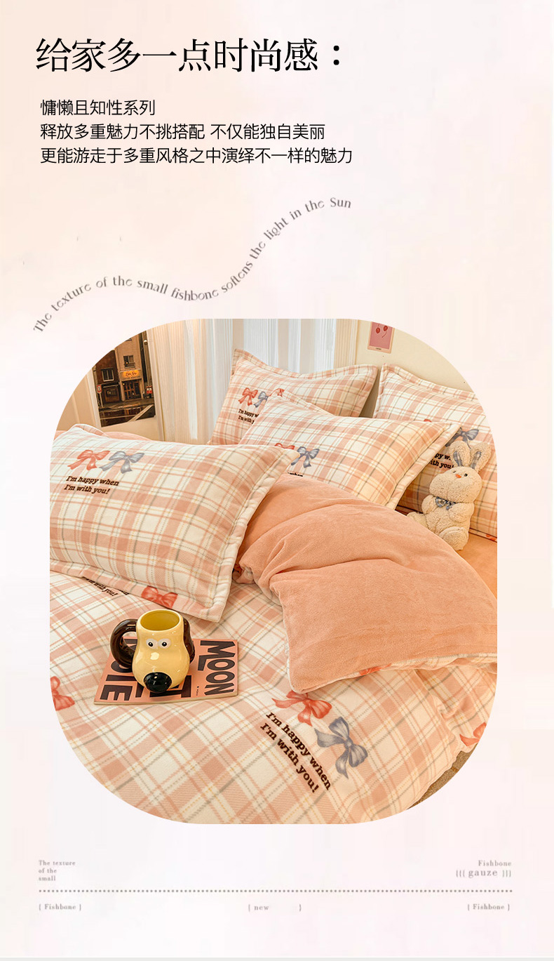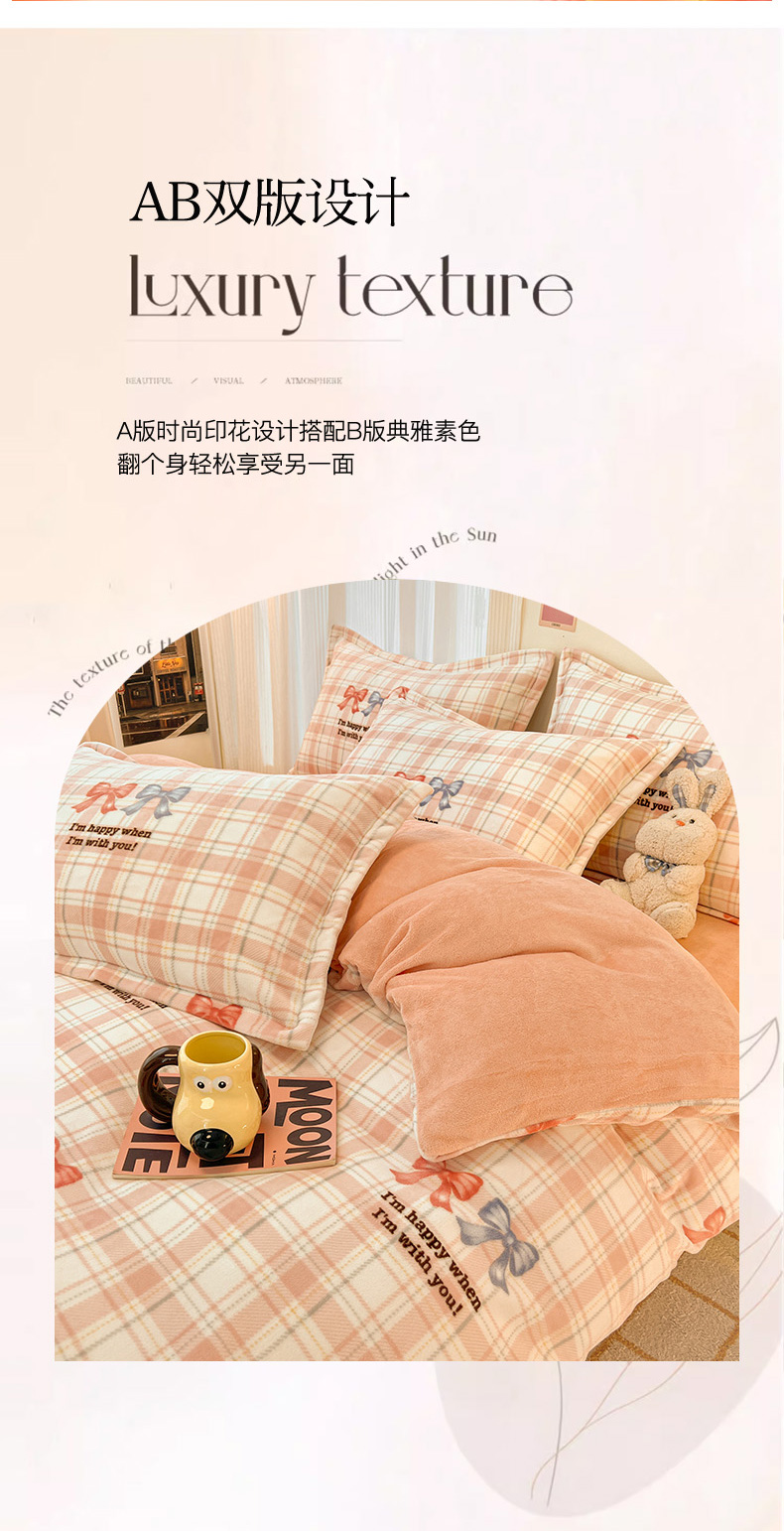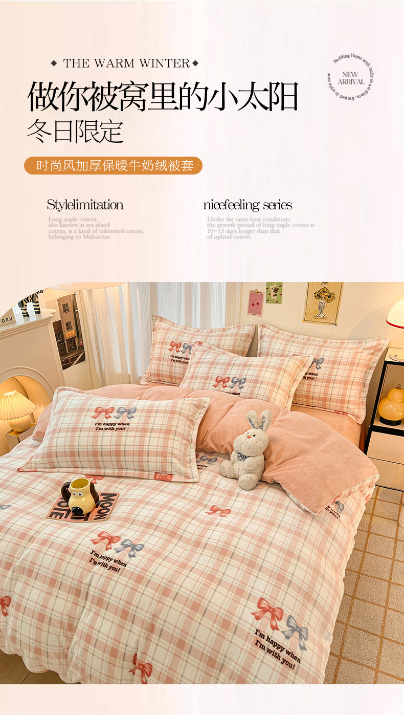 商品名称:2024新款A类高克重时尚风牛奶绒加厚保暖系列套件单品-被套 温馨