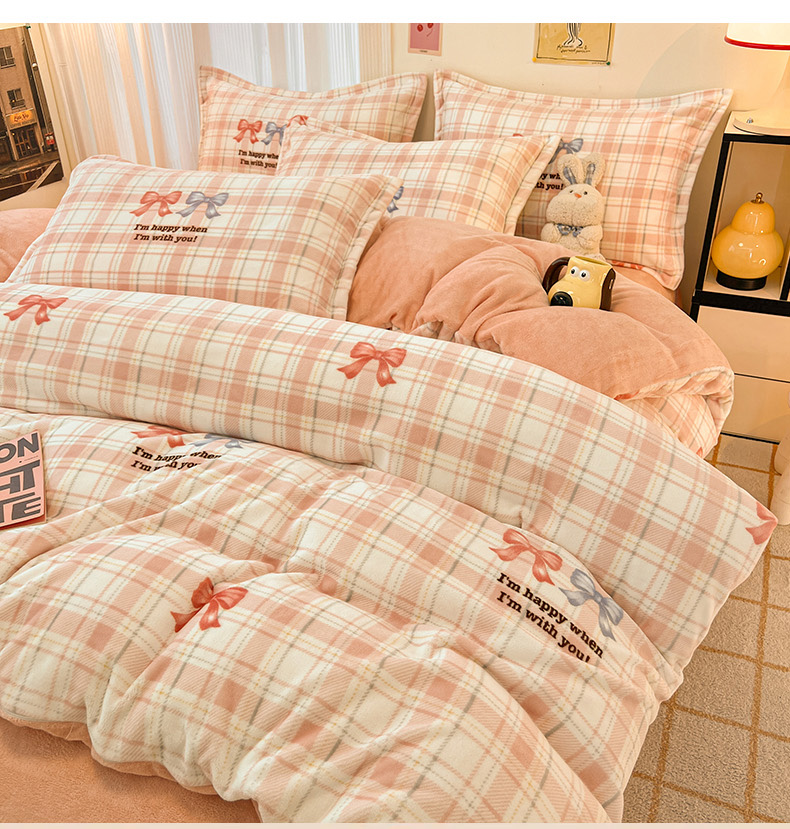 (总)倾慕 2025新款公主风立体花边款保暖绒系列四件套,方格蝶结粉,方格蝶结绿,方格蝶结紫,好梦秋天红灰,蝴蝶之梦粉红,蝴蝶之梦紫,花叶倾城粉,珠圆玉润粉