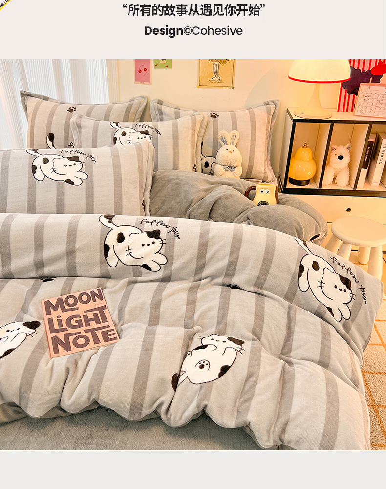 (总)倾慕家纺 2025新款卡通毛巾绣加厚保暖牛奶绒四件套,爱心女孩,咖啡小狗,猫咪熊兔,迷你小车,圣诞树熊,音乐企鹅