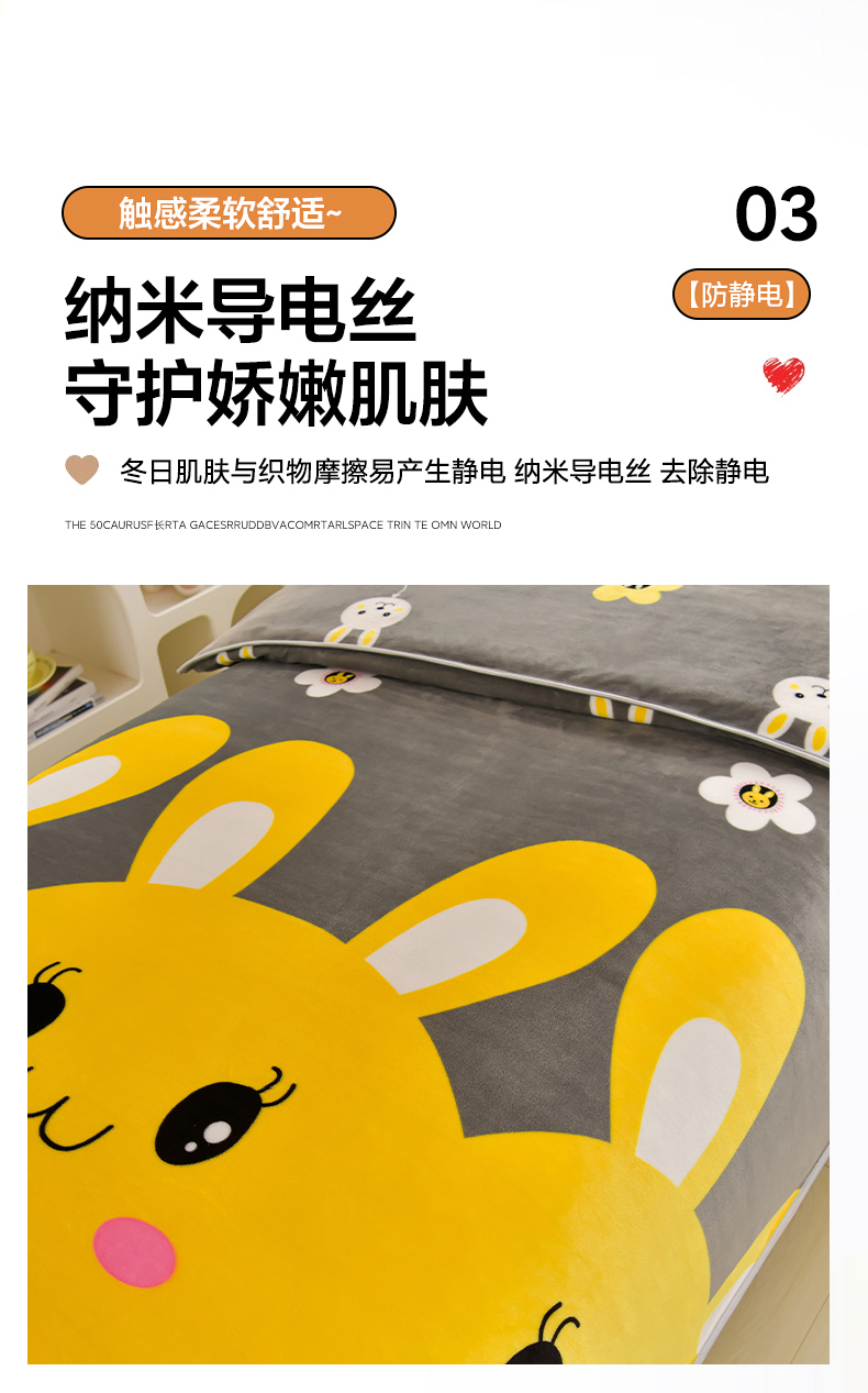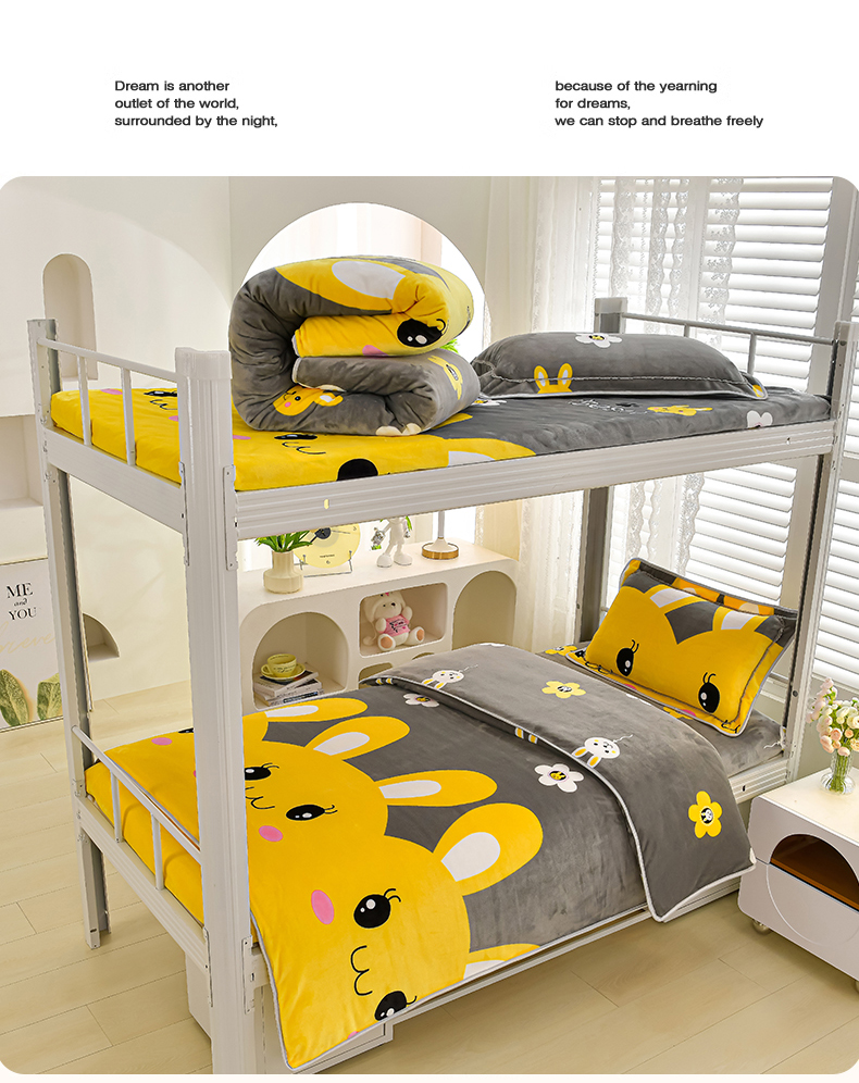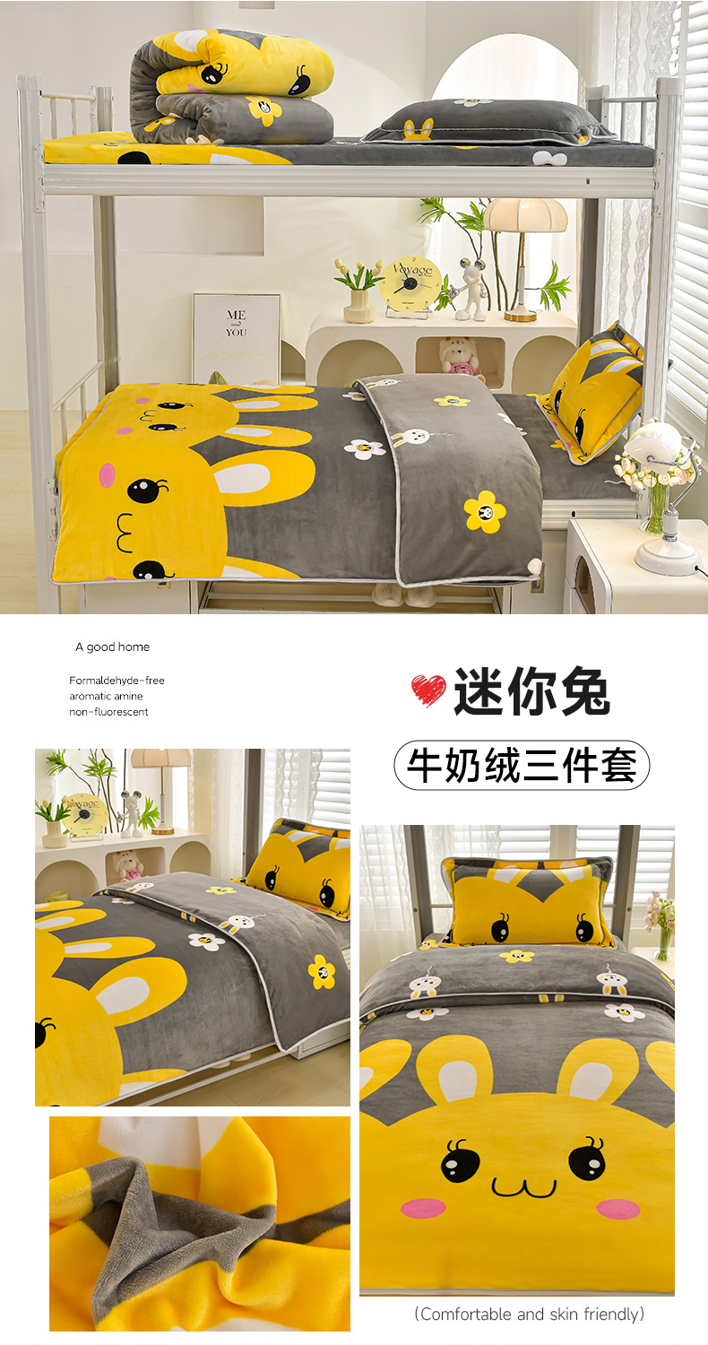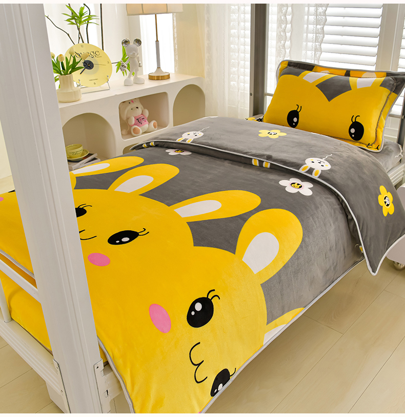商品名称:绒品荟家纺 2025新款加厚牛奶绒三件套金貂绒法莱绒冬季床单款床笠款学生宿舍单人三件套 迷你兔
