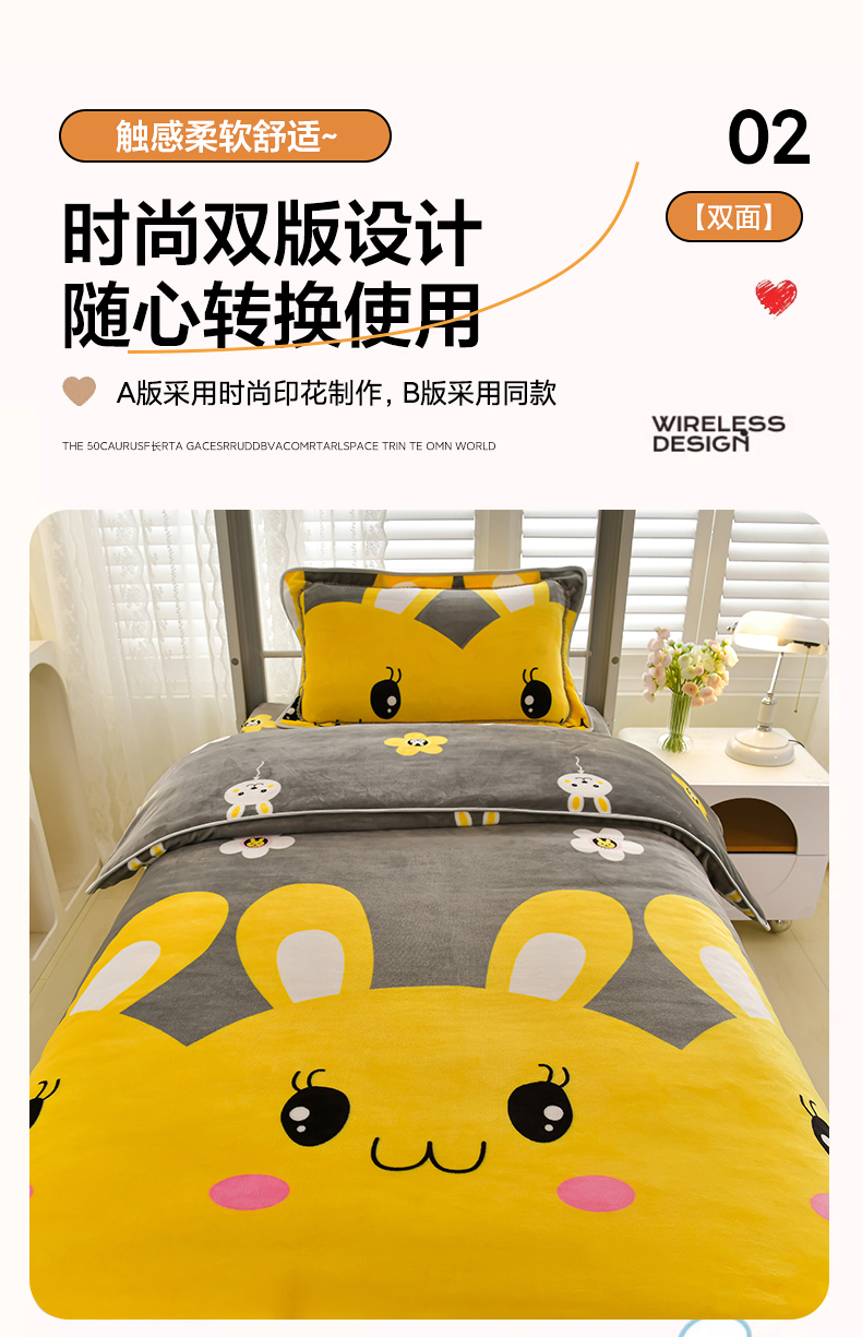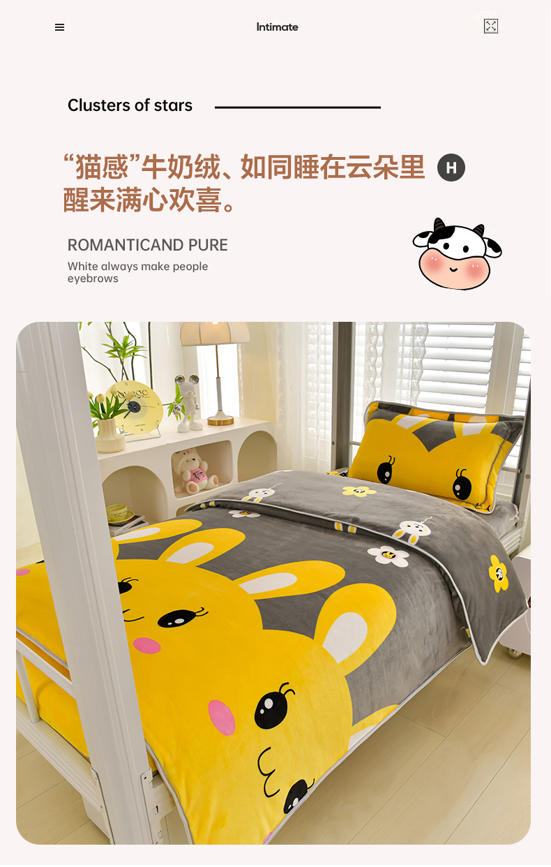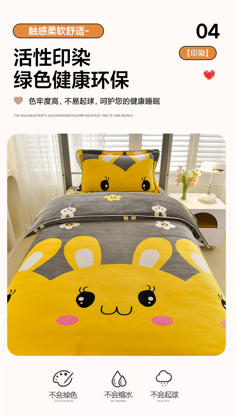 商品名称:绒品荟家纺 2025新款加厚牛奶绒三件套金貂绒法莱绒冬季床单款床笠款学生宿舍单人三件套 迷你兔