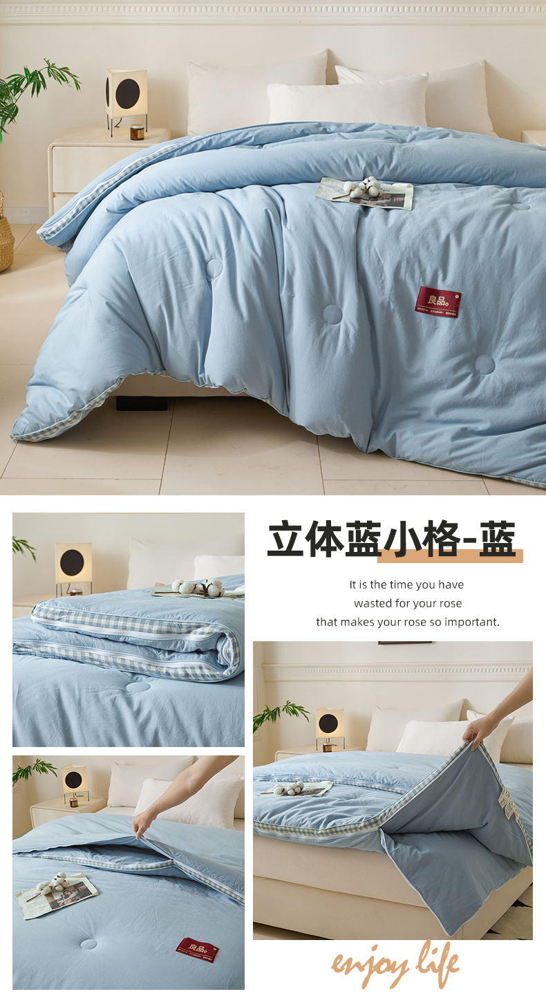 • 91家纺网 家纺一手货源 找家纺 创优家纺 2025新款良品针织棉子母被春秋被冬被二合一拉链款子母被 立体蓝小格-蓝