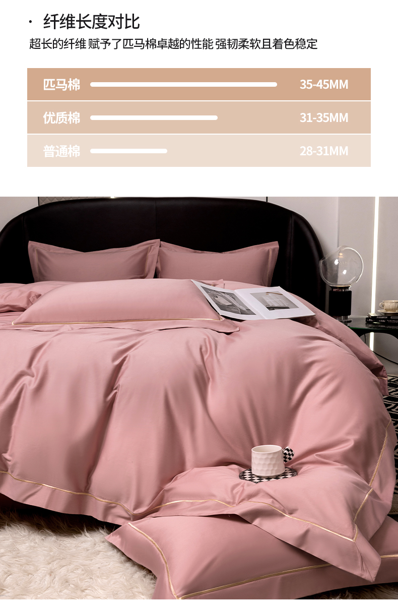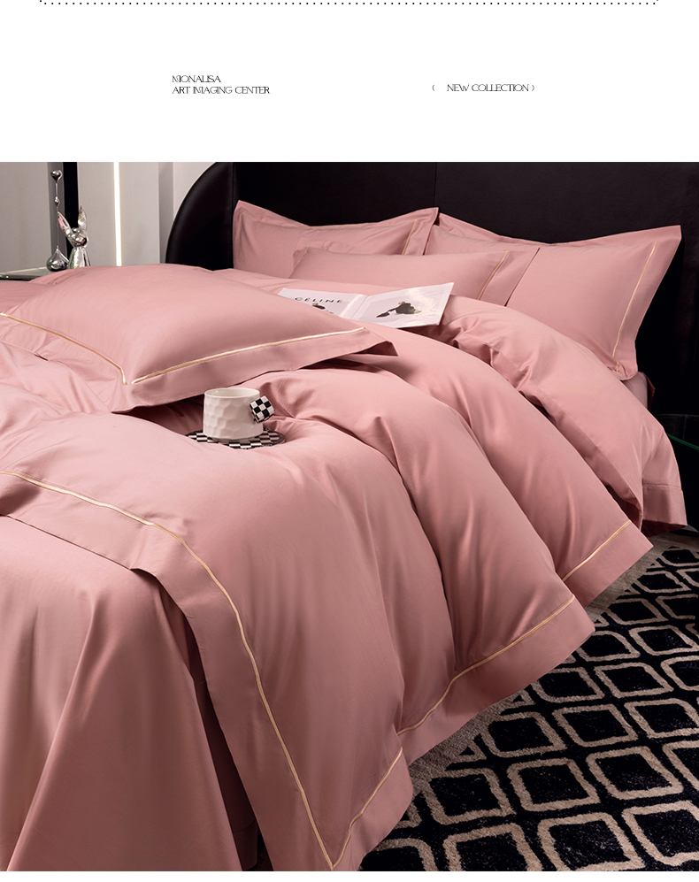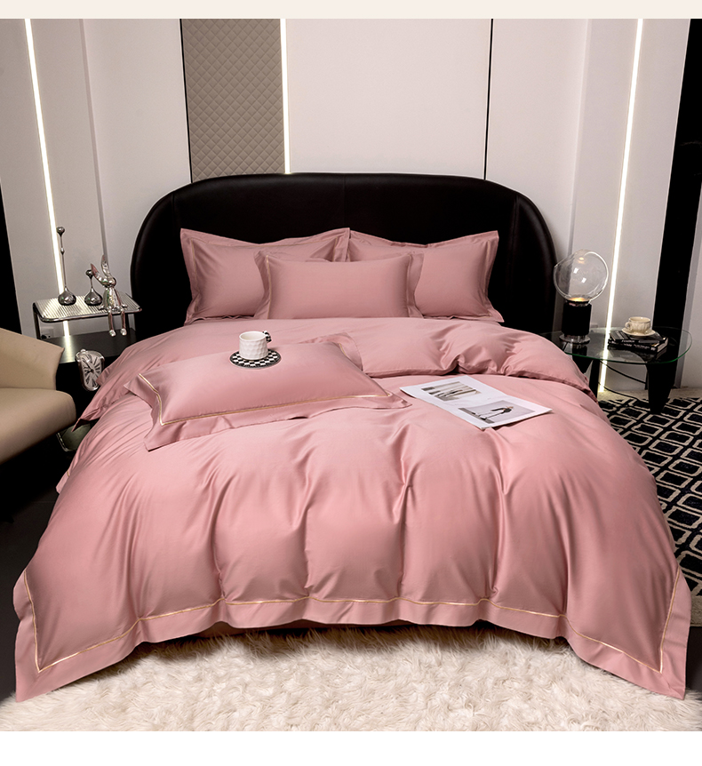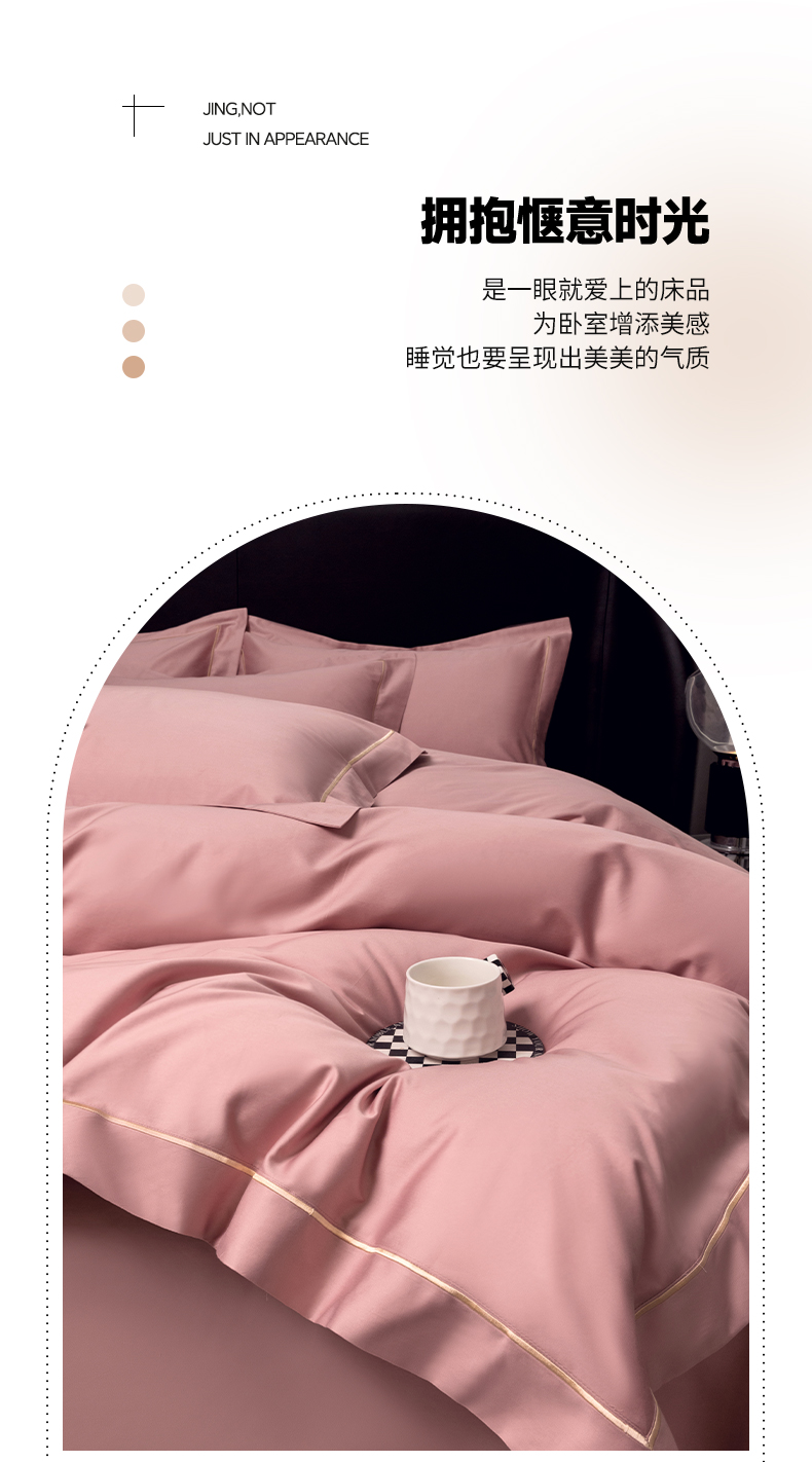 心悦家纺 2024新款高支高密匹马棉刺绣四件套 蜜汁粉