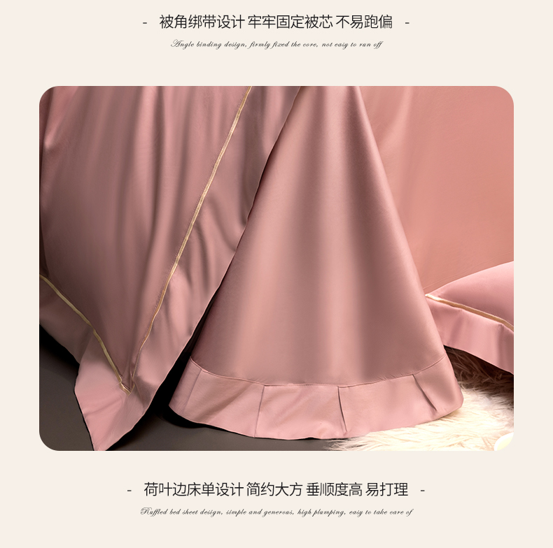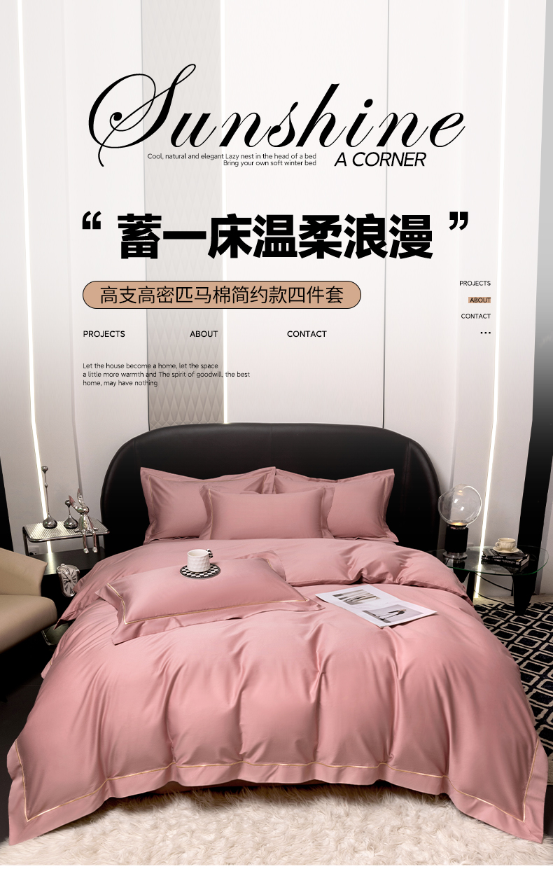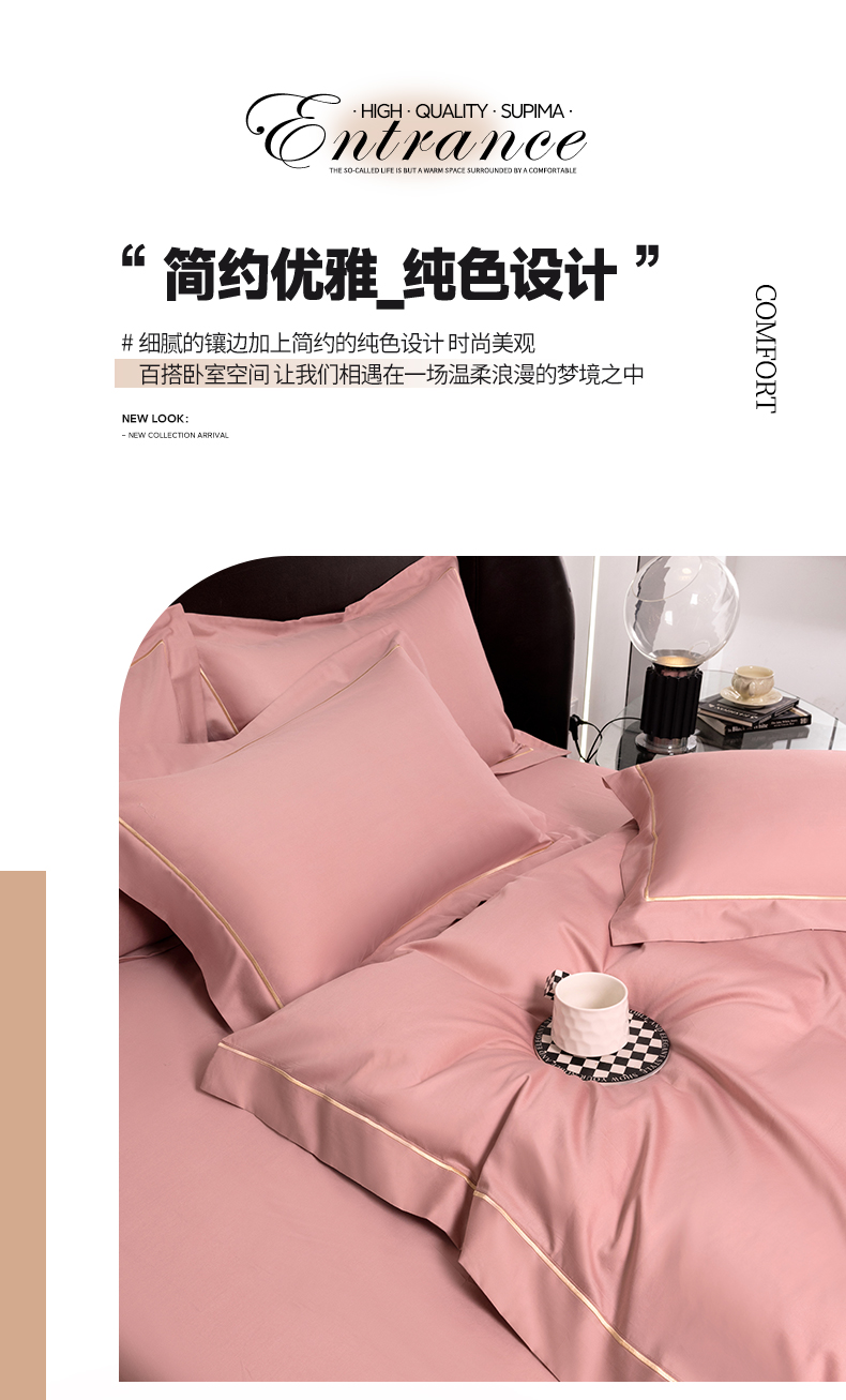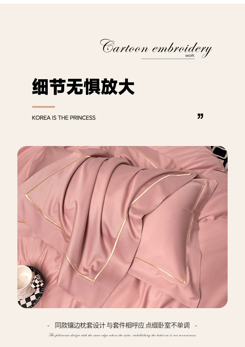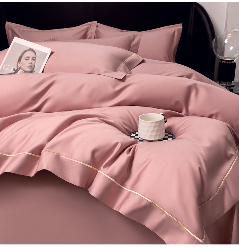 心悦家纺 2024新款高支高密匹马棉刺绣四件套 蜜汁粉