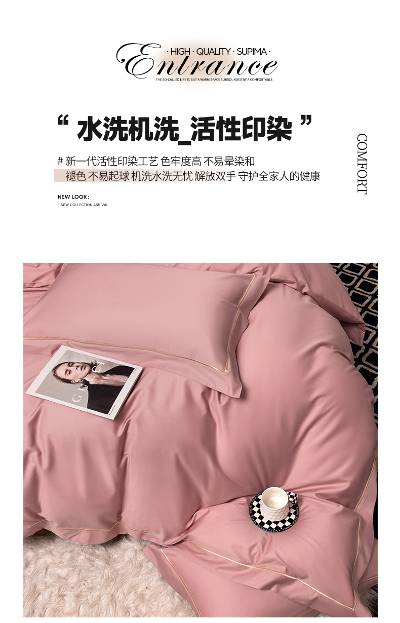商品名称:心悦家纺 2024新款高支高密匹马棉刺绣四件套 蜜汁粉