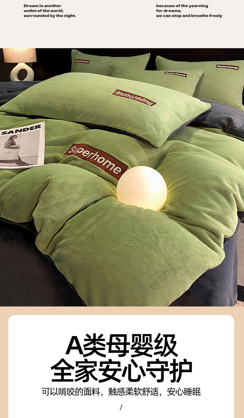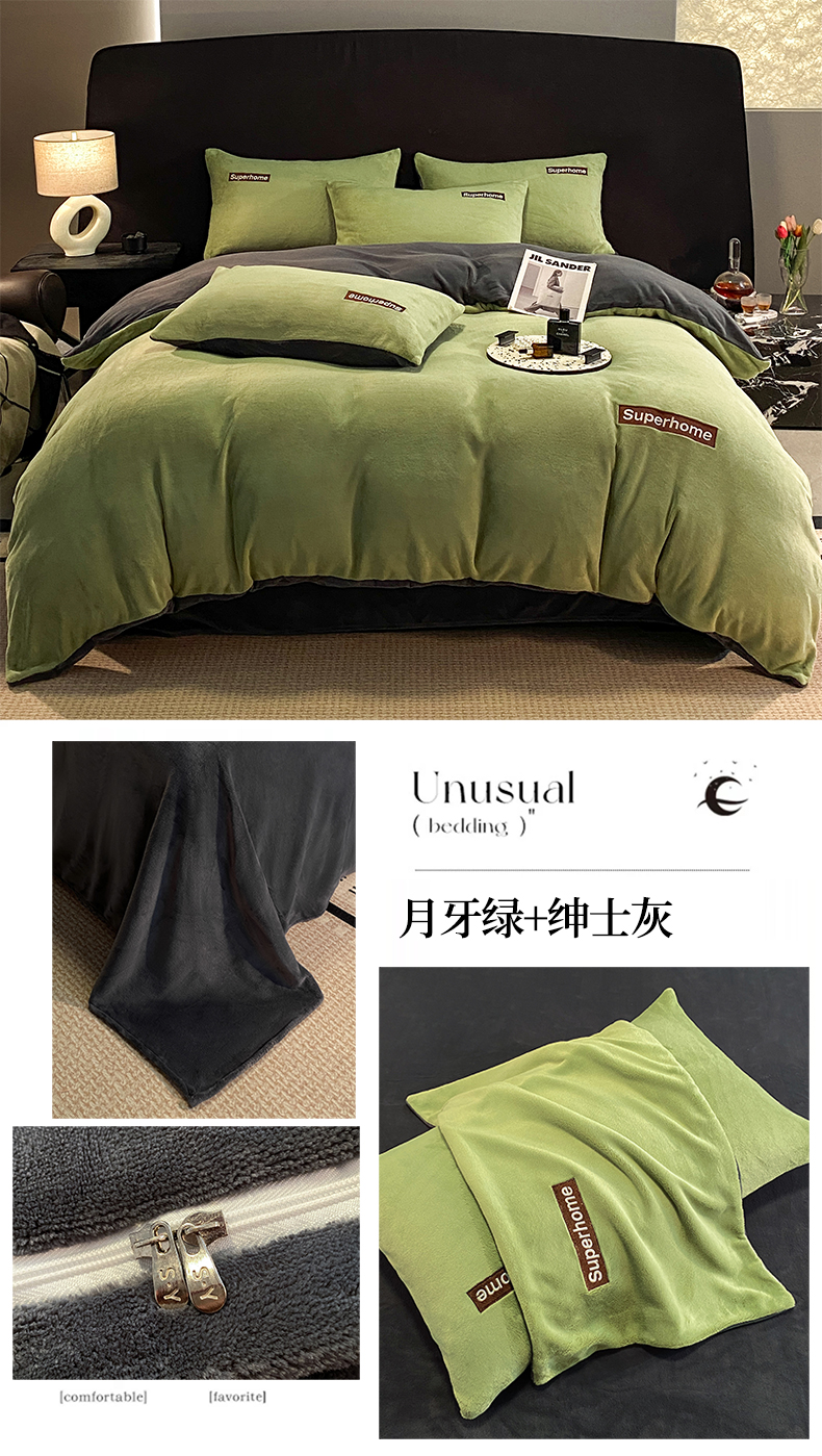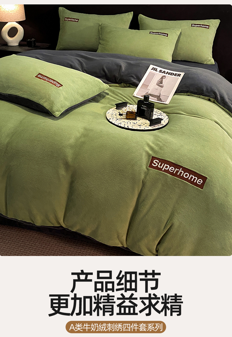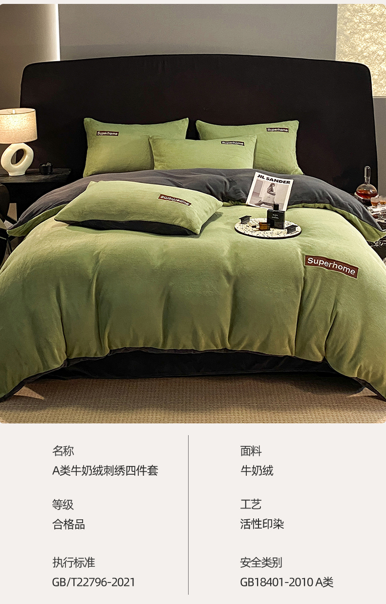 当前位置: 91家纺网 > 商品网购 > 床品套件 > 四件套 > 牛奶绒四件套 > 笙意家纺 2025新款牛奶绒刺绣四件套-杰尼娅系列绒 杰尼亚-月牙绿+绅士灰