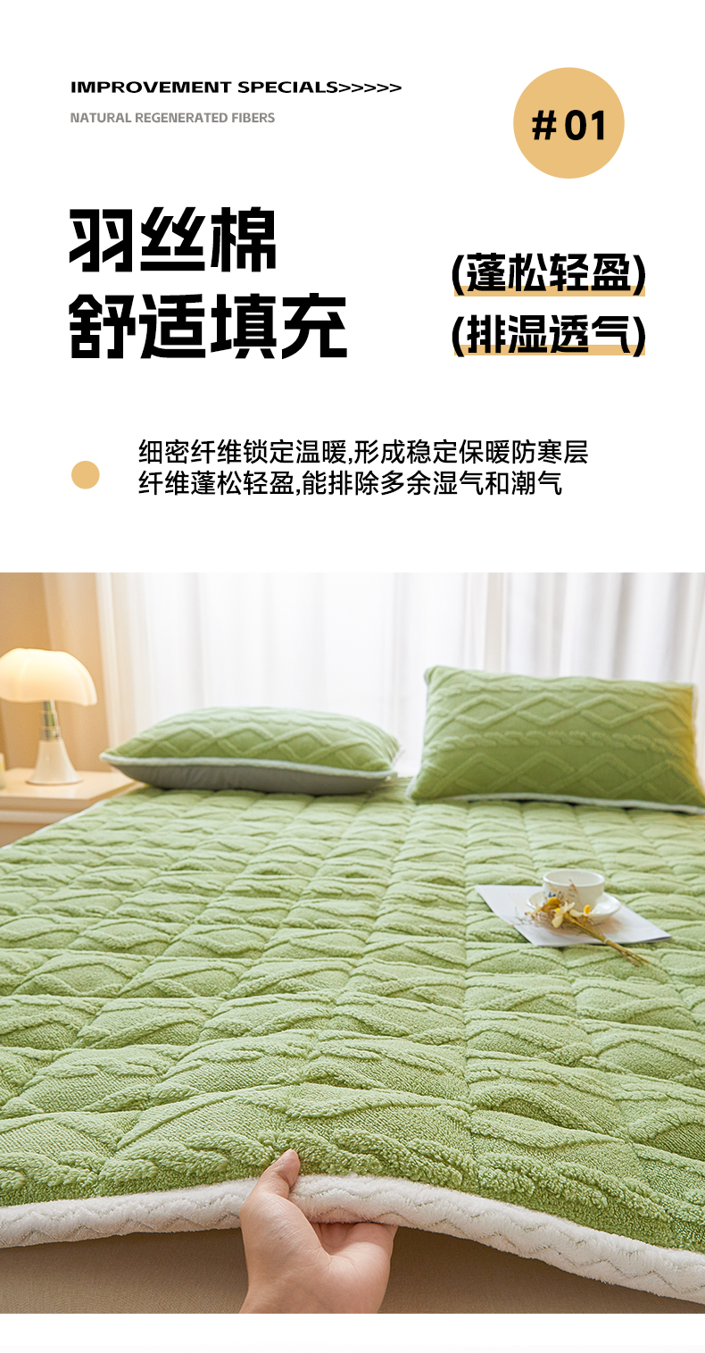 当前位置: 91家纺网 > 商品网购 > 床垫/床褥 > 普通床垫 > 卡伦家纺 2025新款塔芙绒保暖床垫成人双人单人床垫 青竹绿