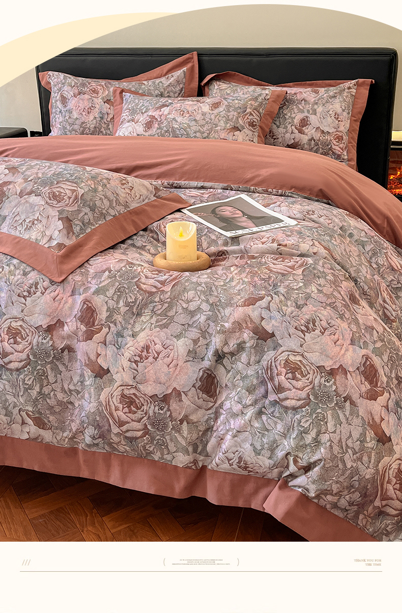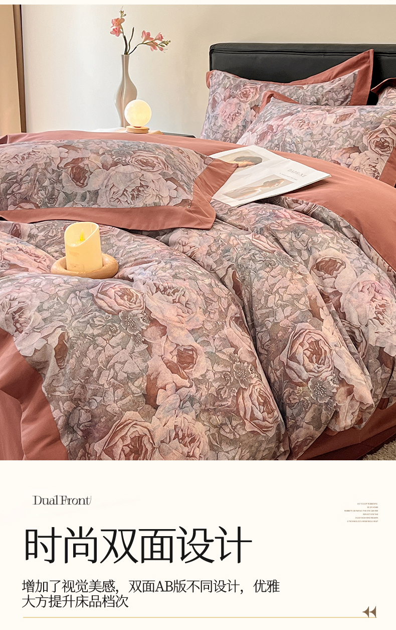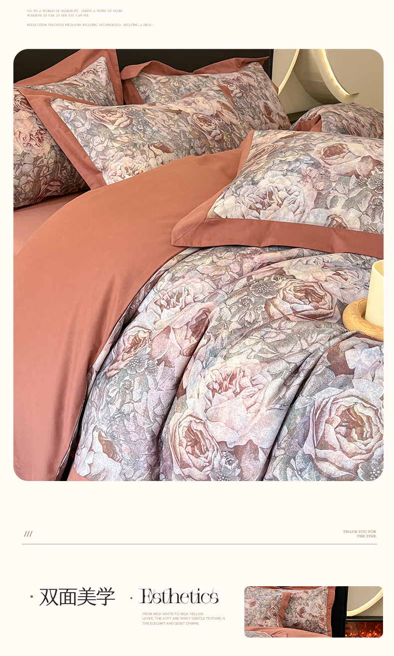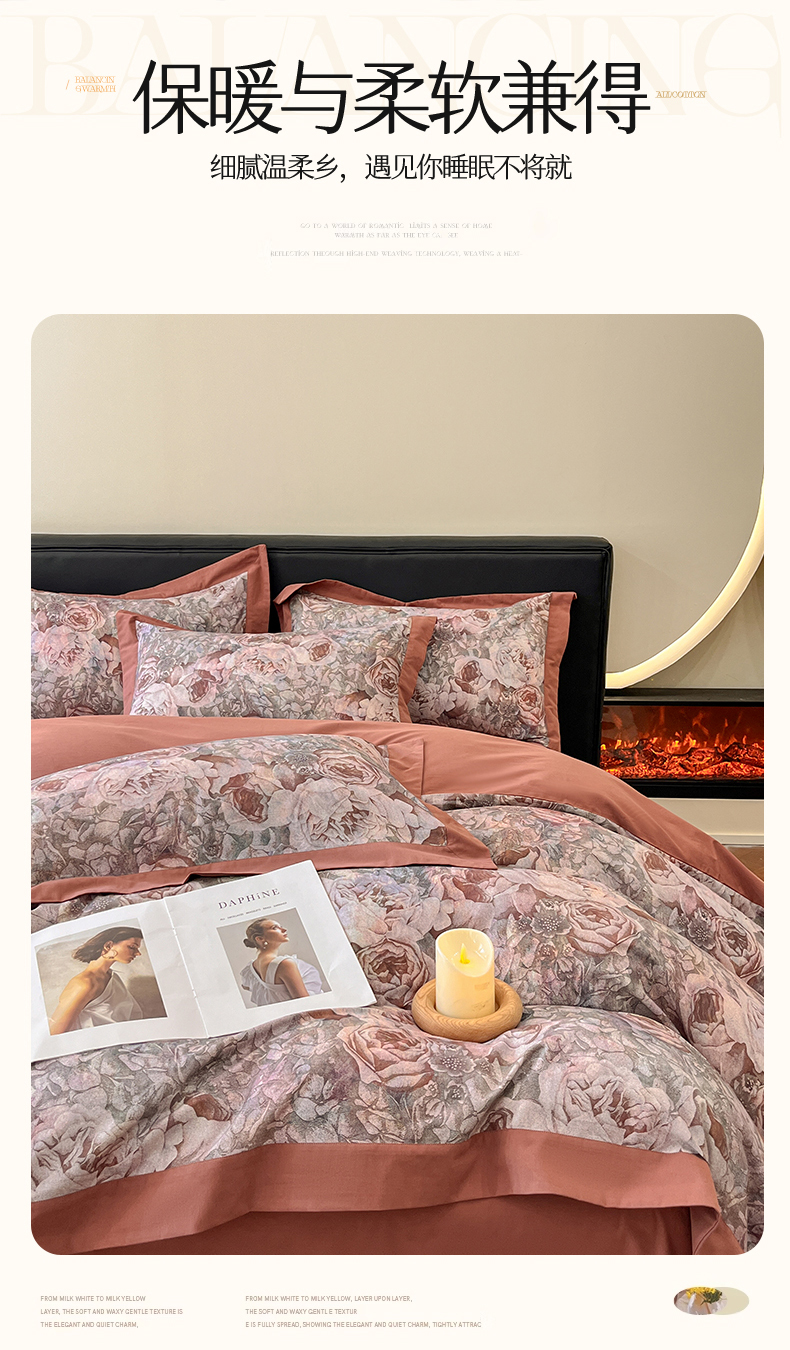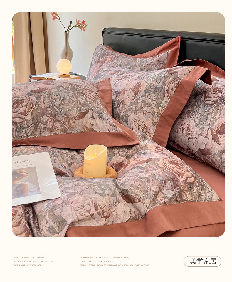 (总)蓝米卡夫 2025秋冬-全棉生态磨毛数码印花-大版花边(礼盒包装)-拍摄风格1 提供买家秀,可可托海-杏粉,可可托海-淡紫,可可托海-浅驼