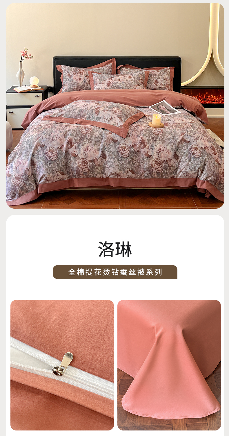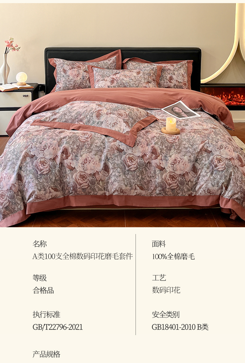 商品名称:2024新保暖-秋冬A类100支全棉数码印花磨毛拼角四件套(礼盒包装) 100支磨毛-洛琳