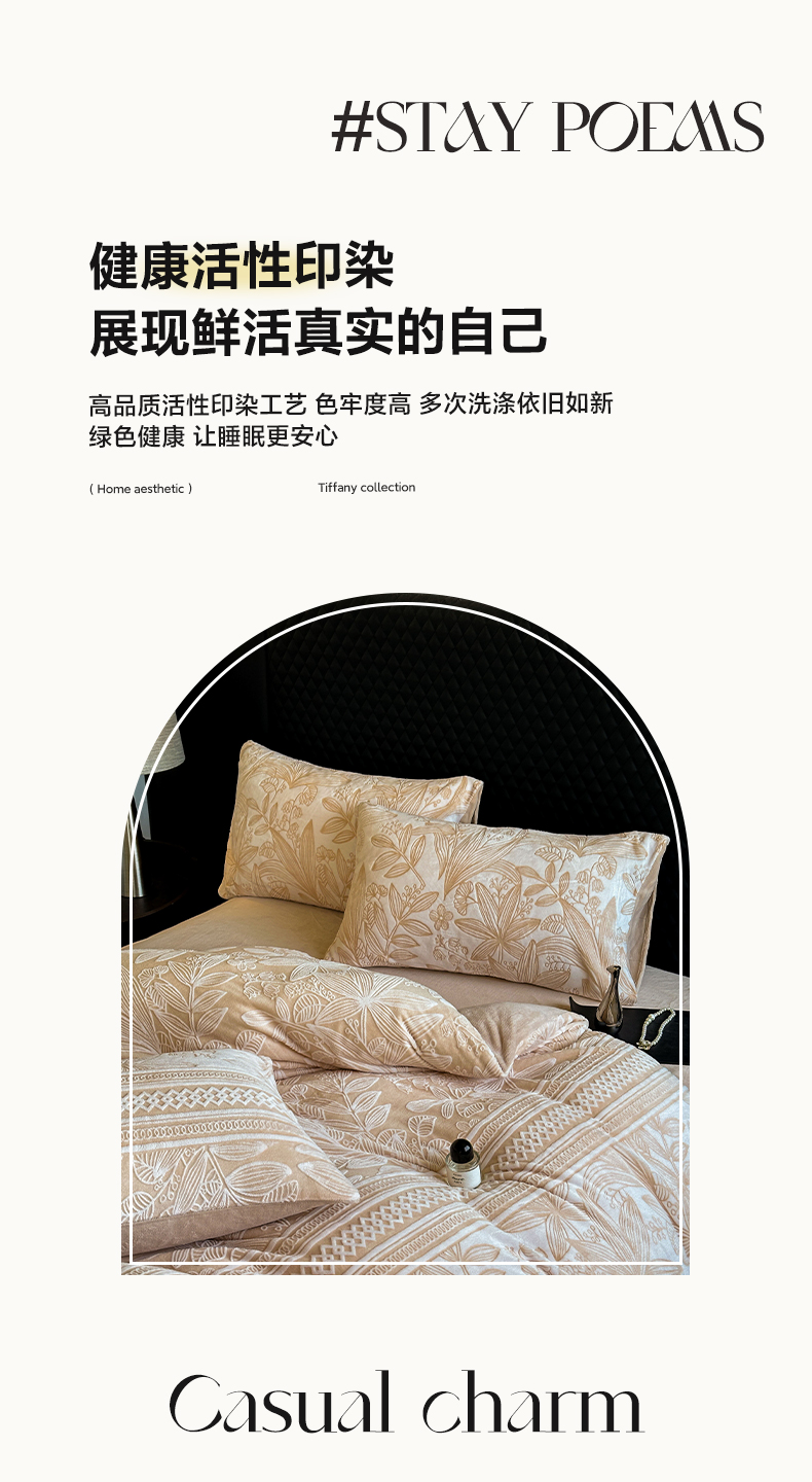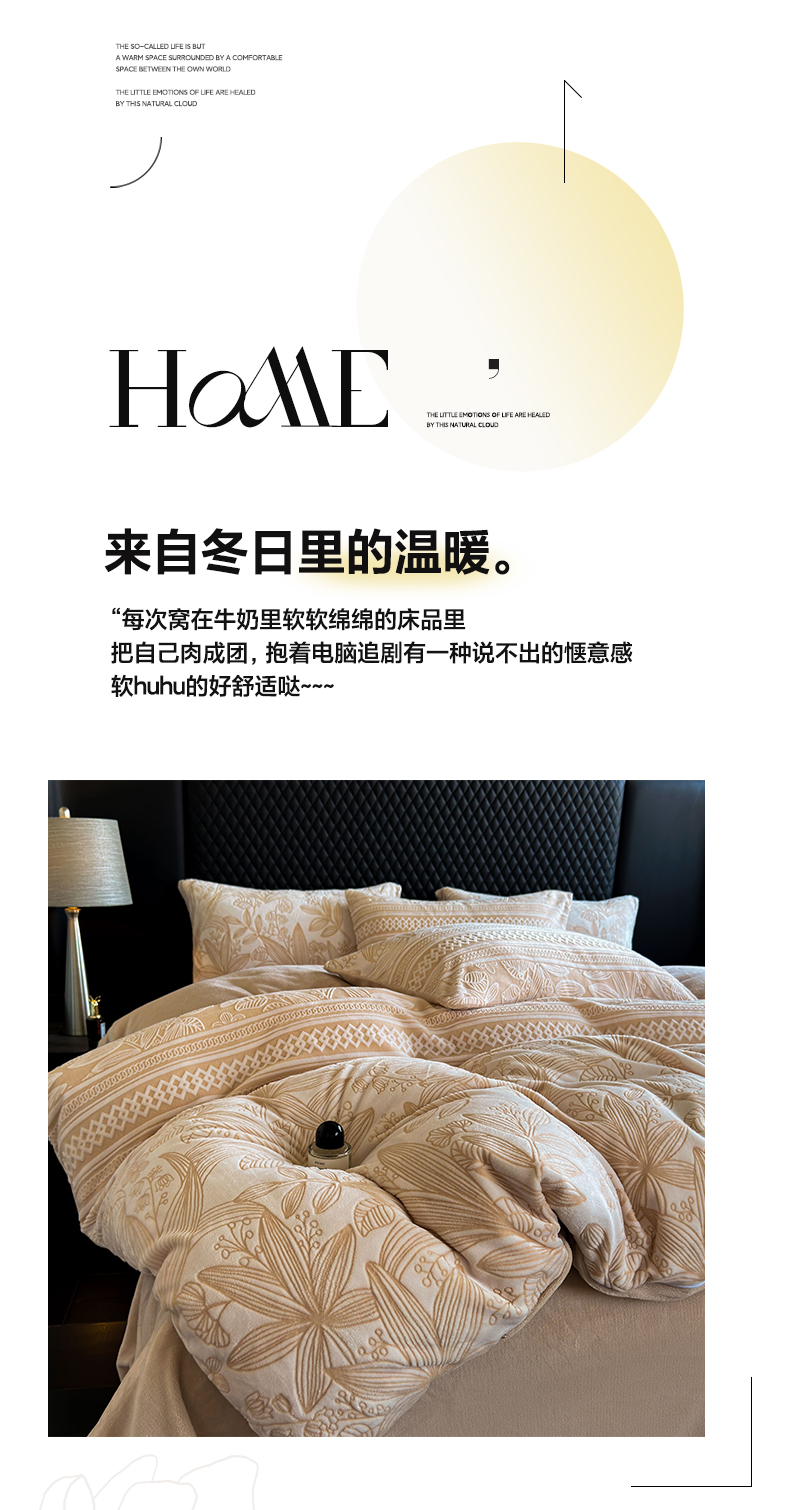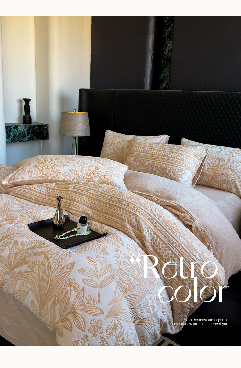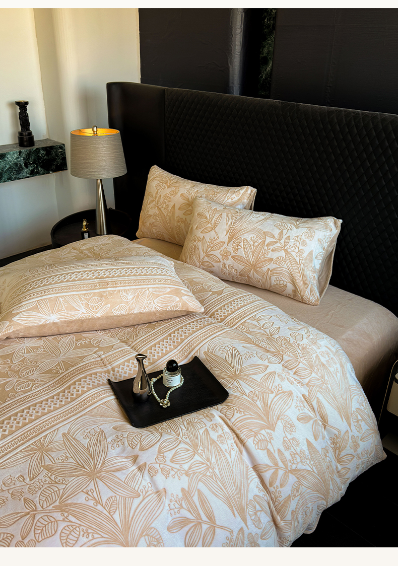 当前位置: 91家纺网 > 商品网购 > 床品套件 > 四件套 > 牛奶绒四件套 > 莱登卡奴 2024新款高克重牛奶绒雕花轻奢款四件套-维多利系列 花间奶杏