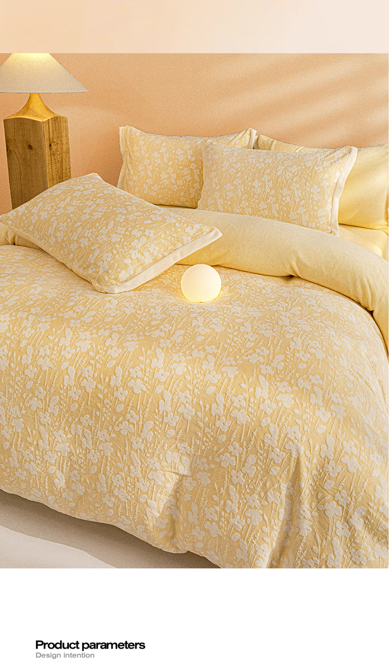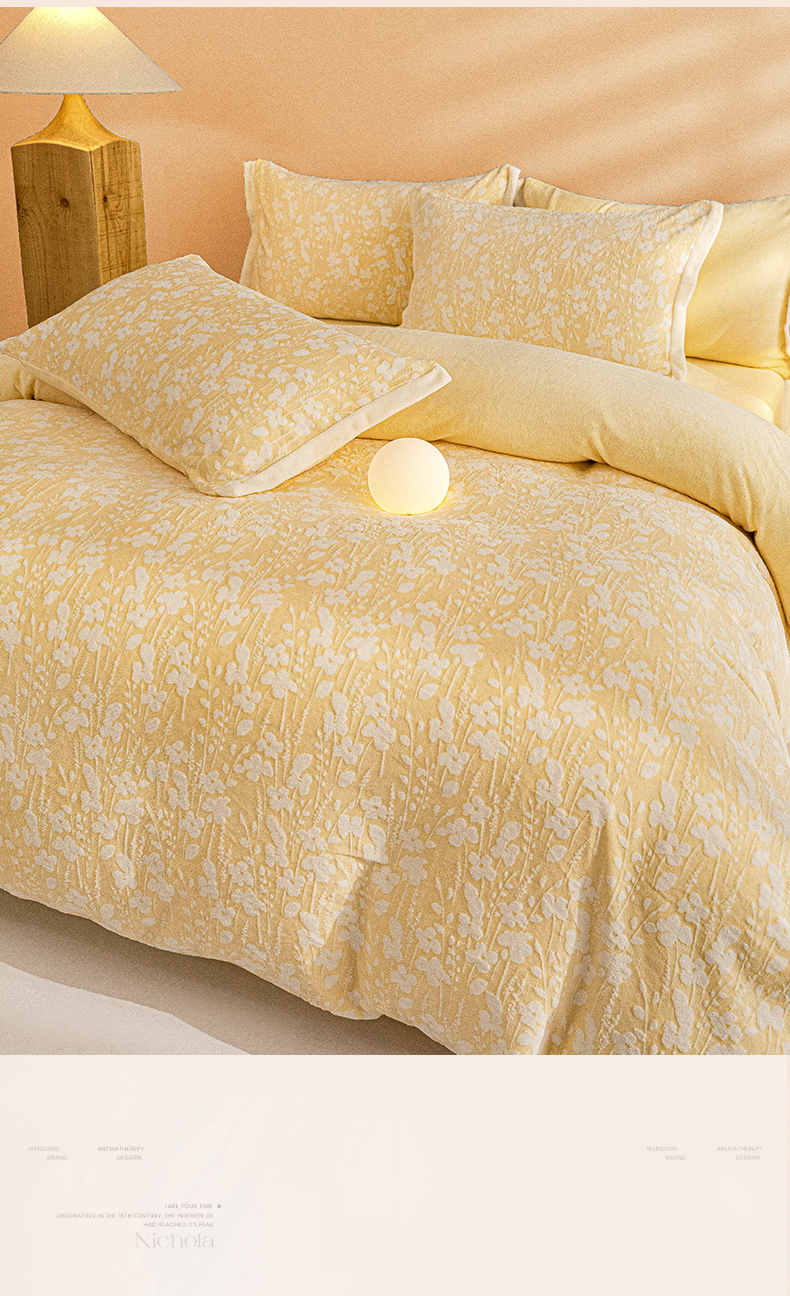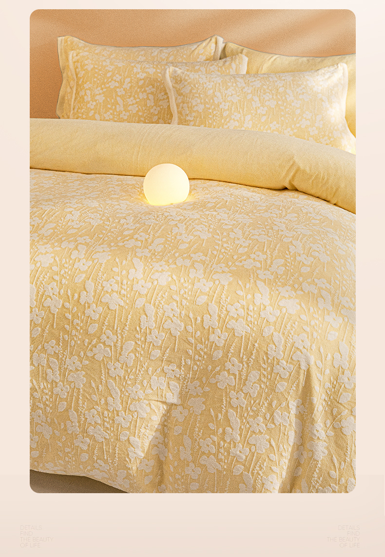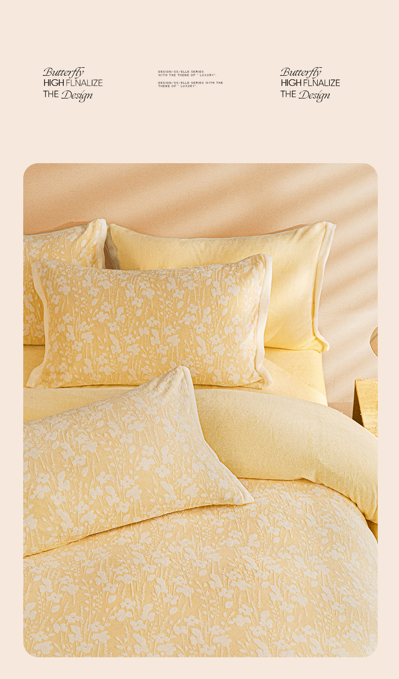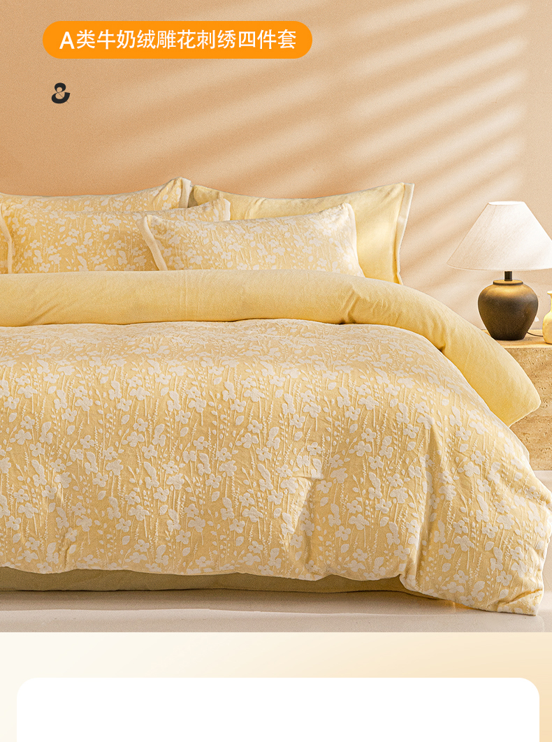 2024新保暖-秋冬A类高端加厚牛奶绒雕花四件套系列 公主风-黄色
