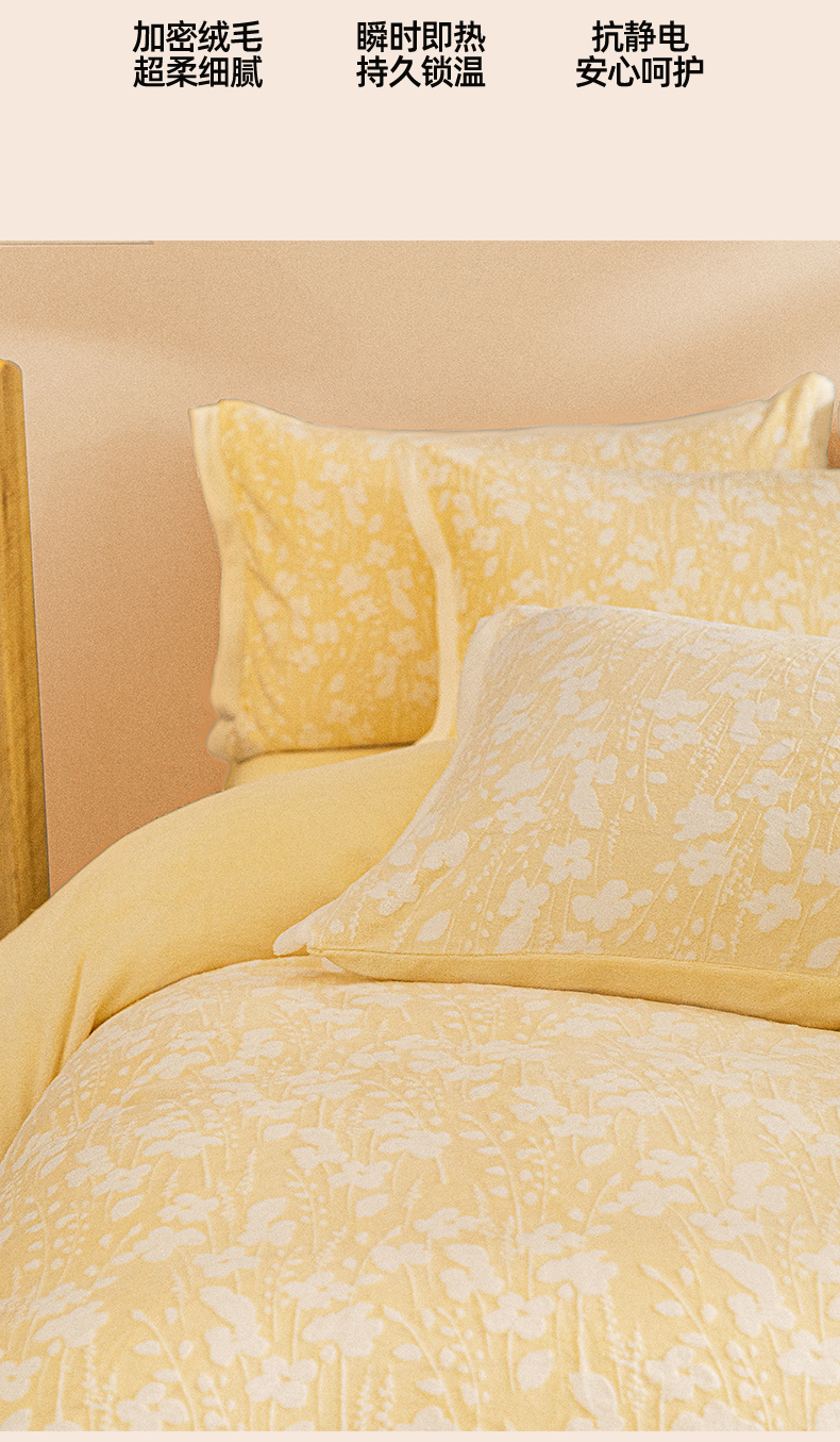 商品名称:2024新保暖-秋冬A类高端加厚牛奶绒雕花四件套系列 公主风-黄色