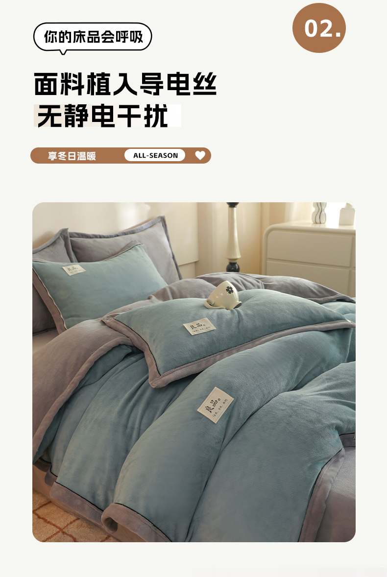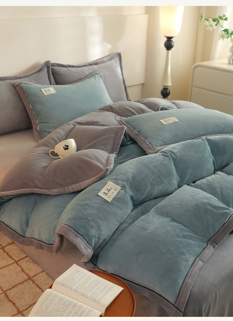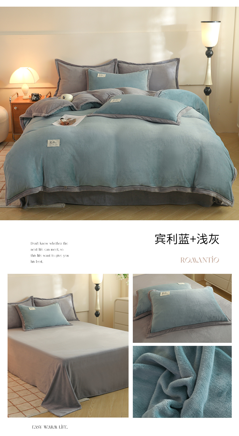 • 91家纺网 家纺一手货源 找家纺 2025新款A类加厚牛奶绒大包边系列-单被套 宾利蓝+浅灰