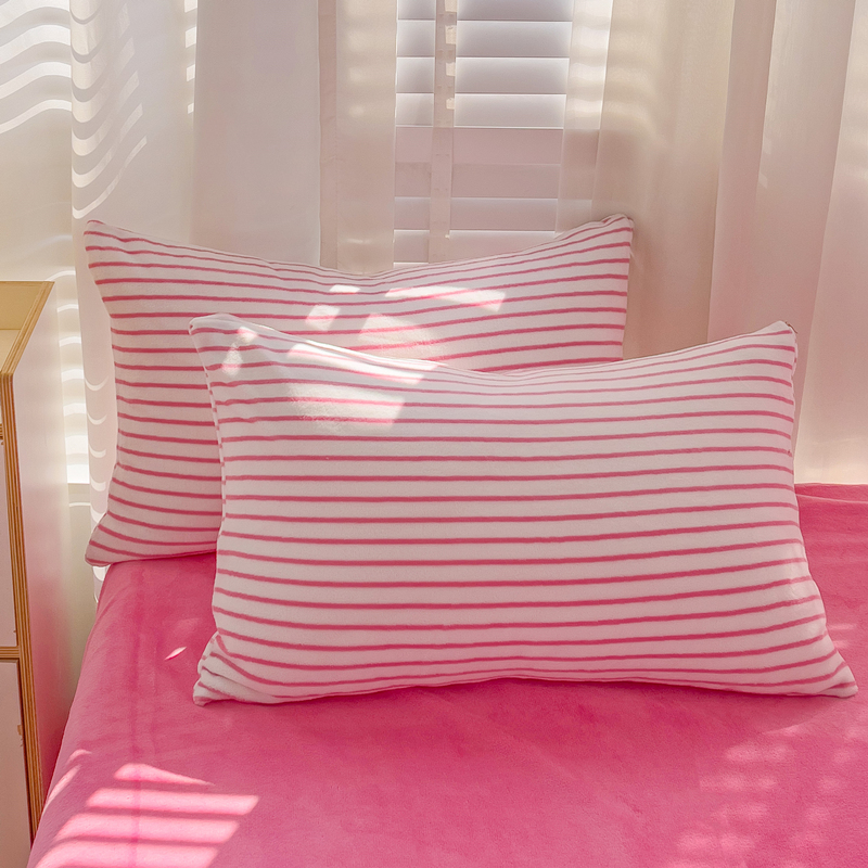 丽涵家纺 2024秋冬新品多巴胺博主风牛奶绒条纹枕套 芭比粉条