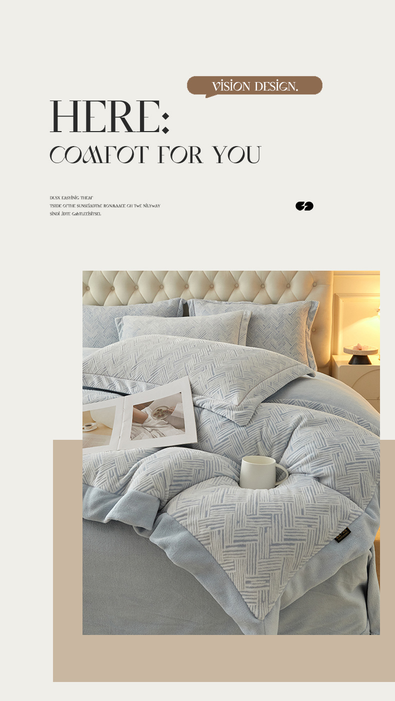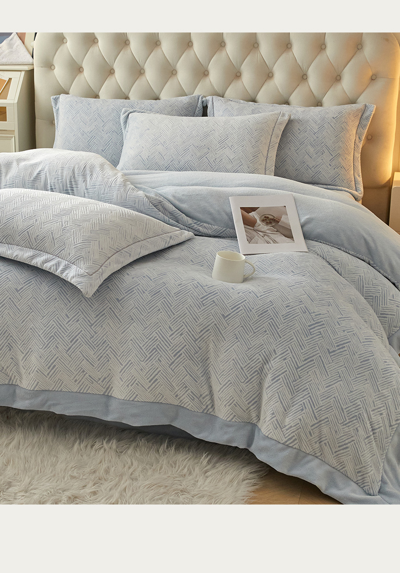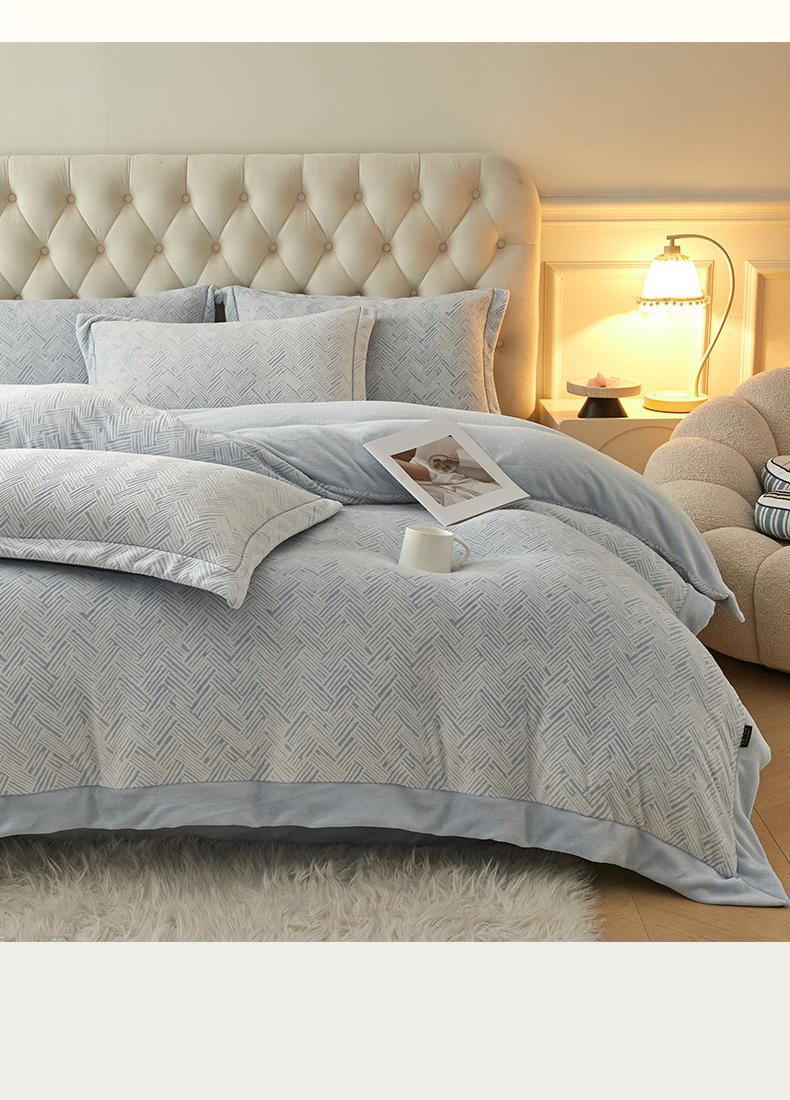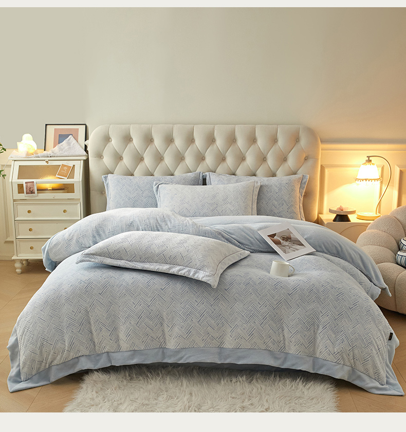 简如 2025新款A类230克加厚立体雕花绒四件套 安吉拉-天空蓝