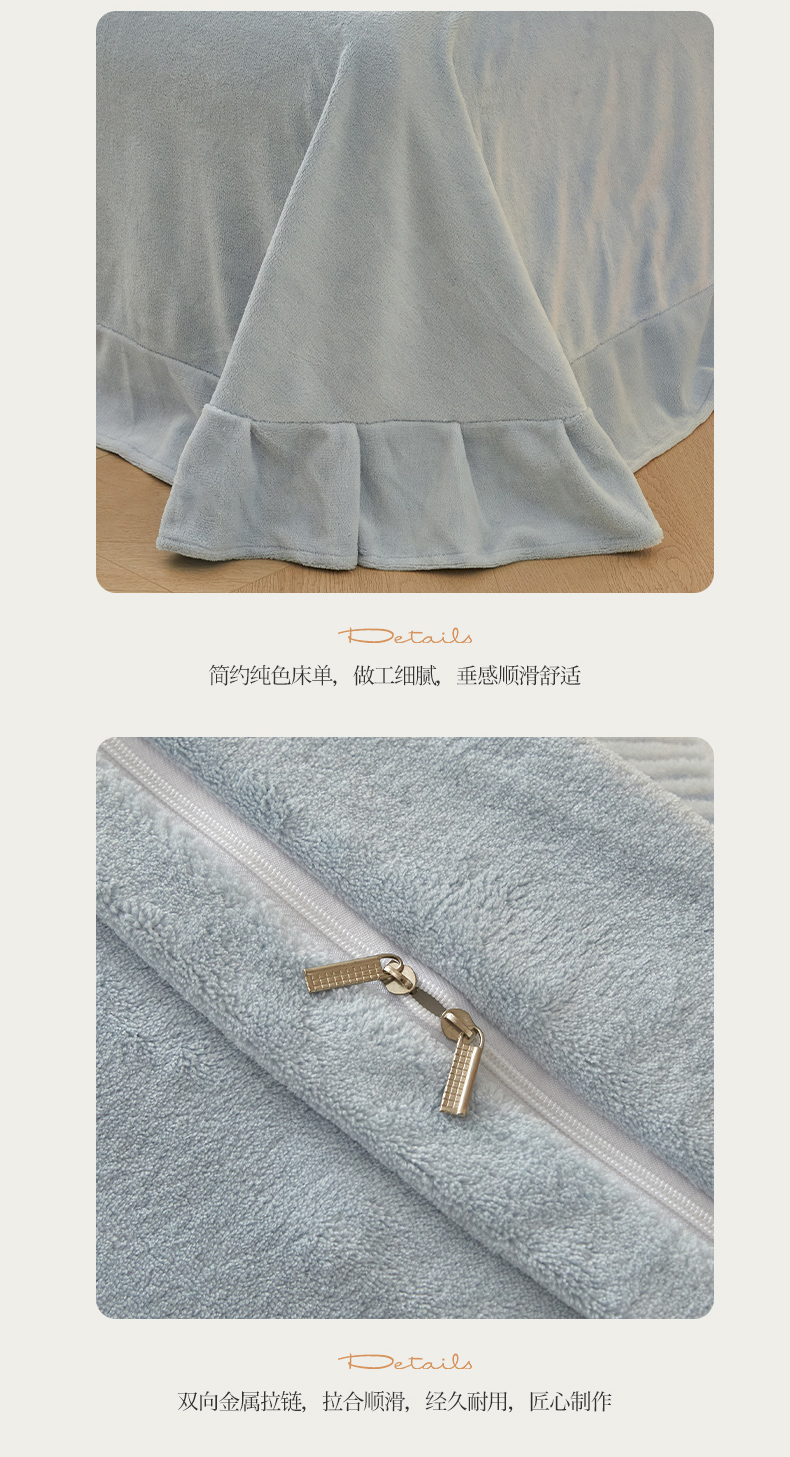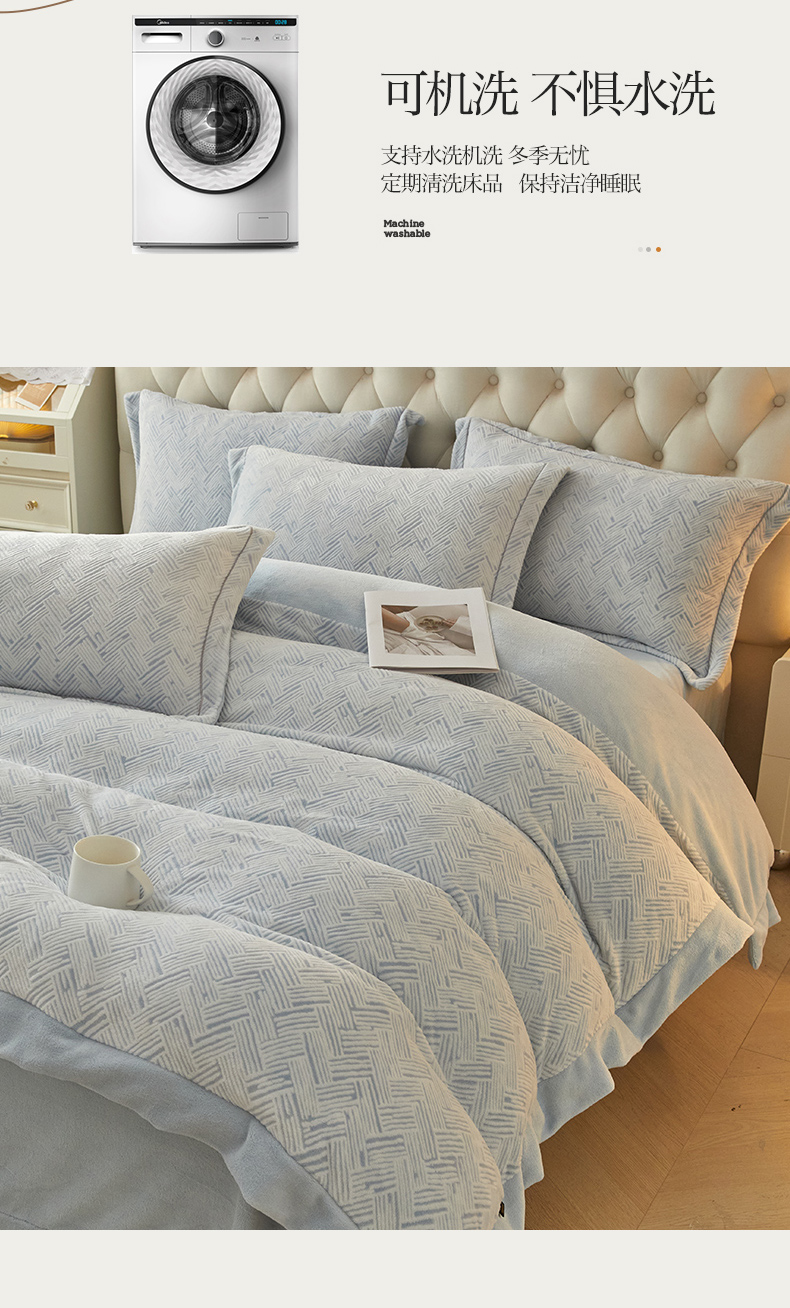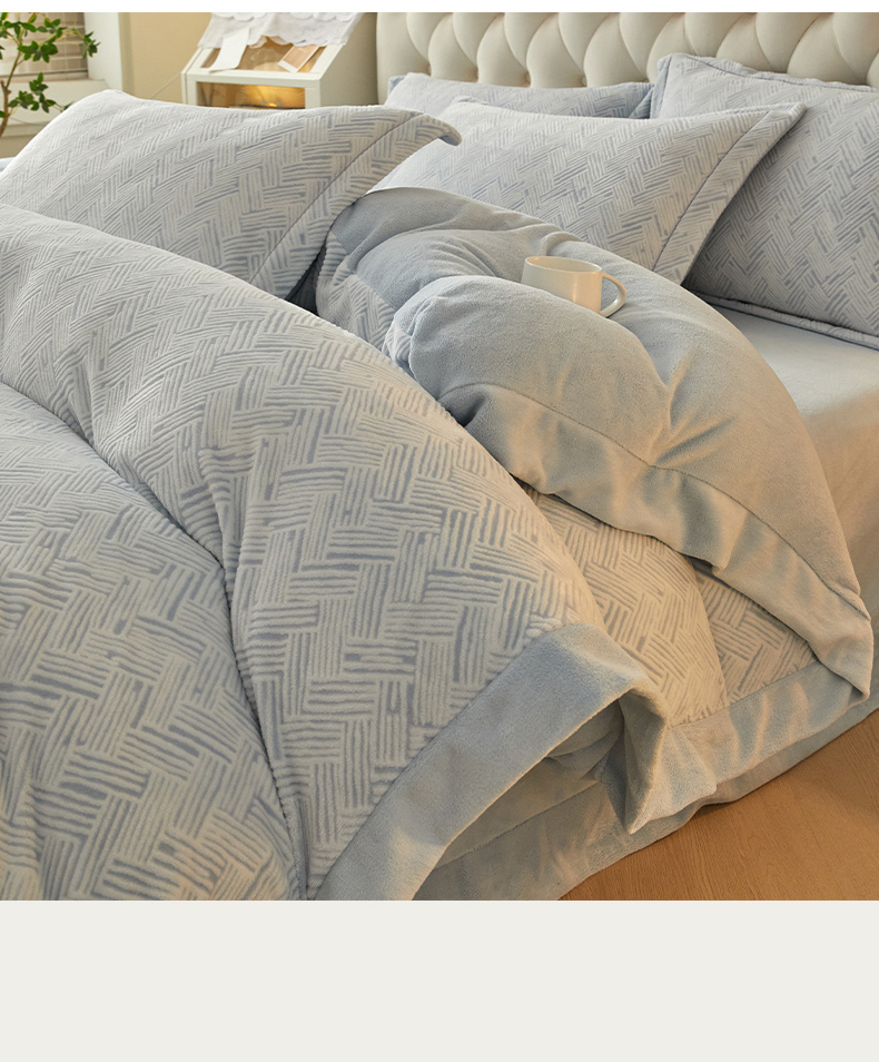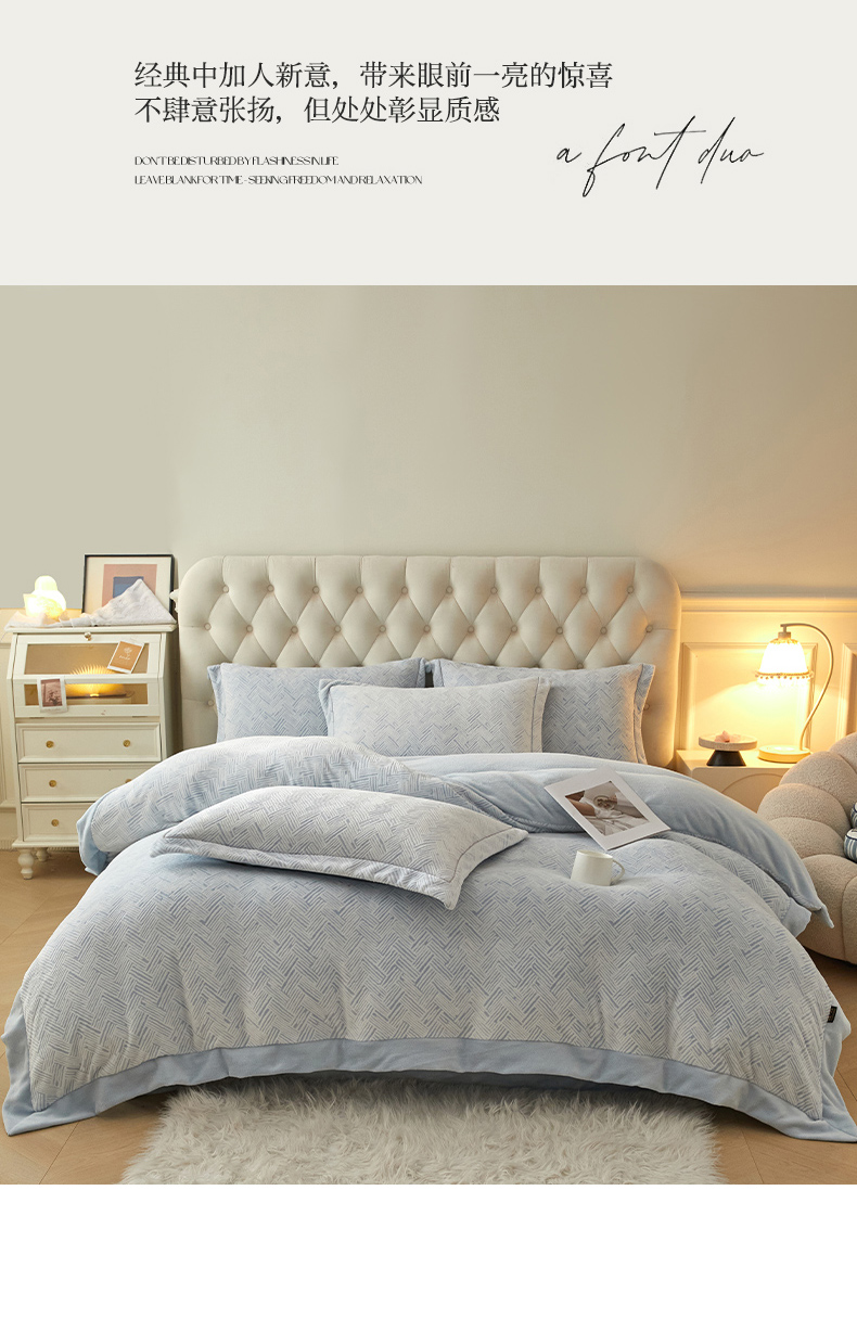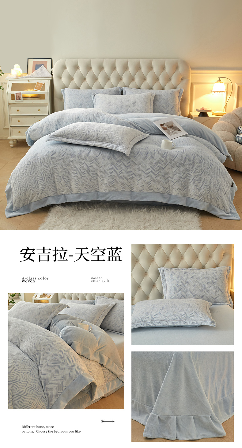 商品名称:简如 2025新款A类230克加厚立体雕花绒四件套 安吉拉-天空蓝
