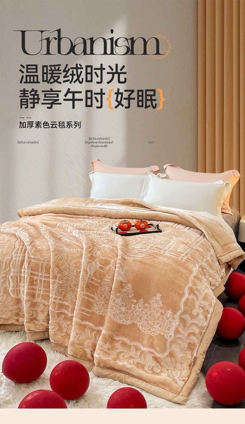凯轩毛毛毯毯子网销专供 2024新款5D压花素色云毛毯毯子毛毛毯毯子毛毯毯子子 素雅-浅驼