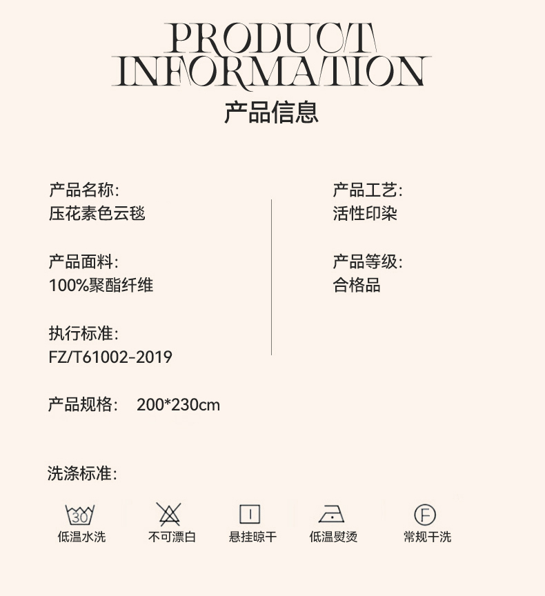 商品名称:凯轩毛毛毯毯子网销专供 2024新款5D压花素色云毛毯毯子毛毛毯毯子毛毯毯子子 素雅-浅驼