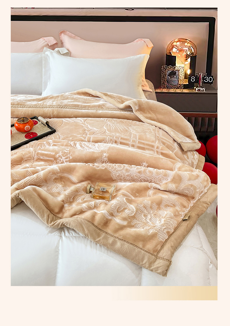 (总)凯轩毛毯网销专供 2026新款仿刺绣双层加厚压花云毯,豆沙红,绛紫色,孔雀绿,奶油咖,珊瑚粉,深灰色