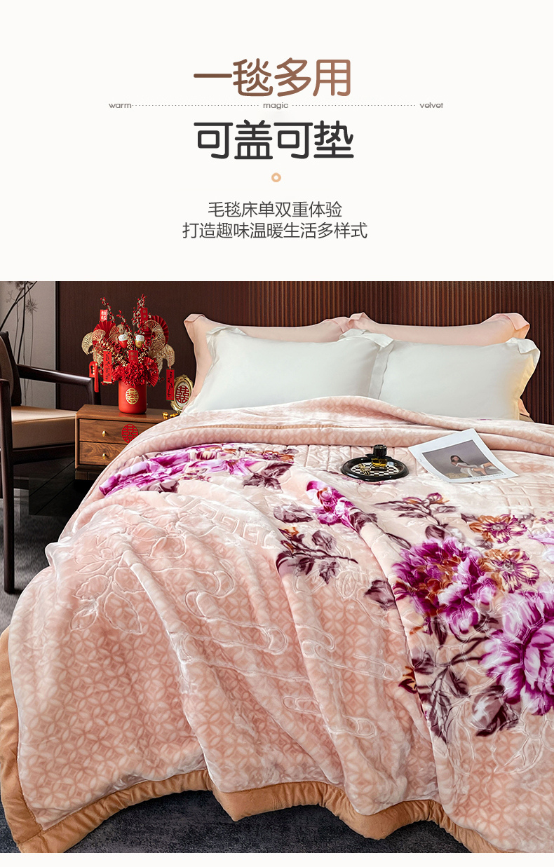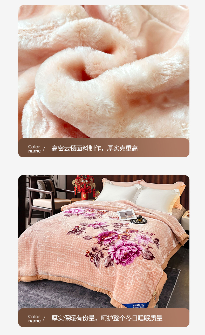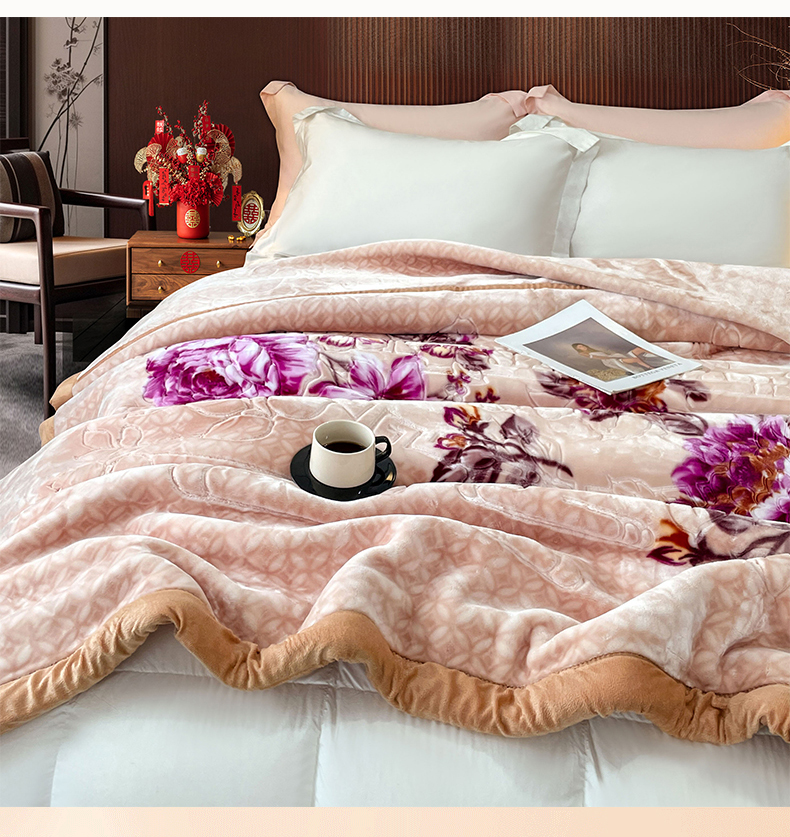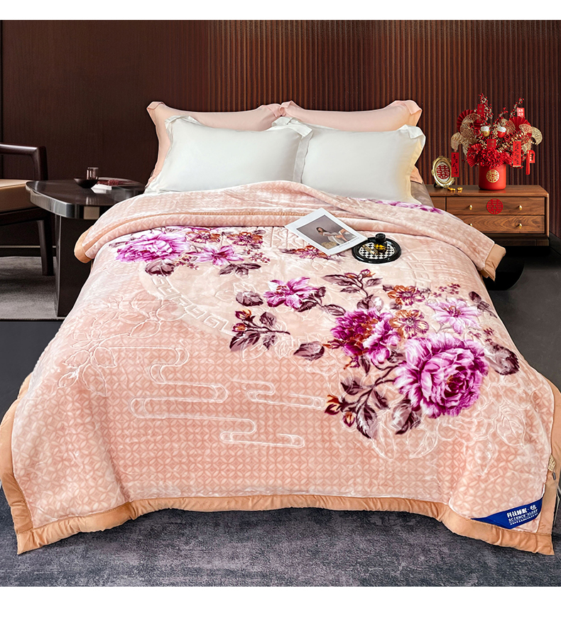 凯轩毛毛毯毯子网销专供 2024新款花开盛世5D婚庆云毛毯毯子 花开盛世-玉色