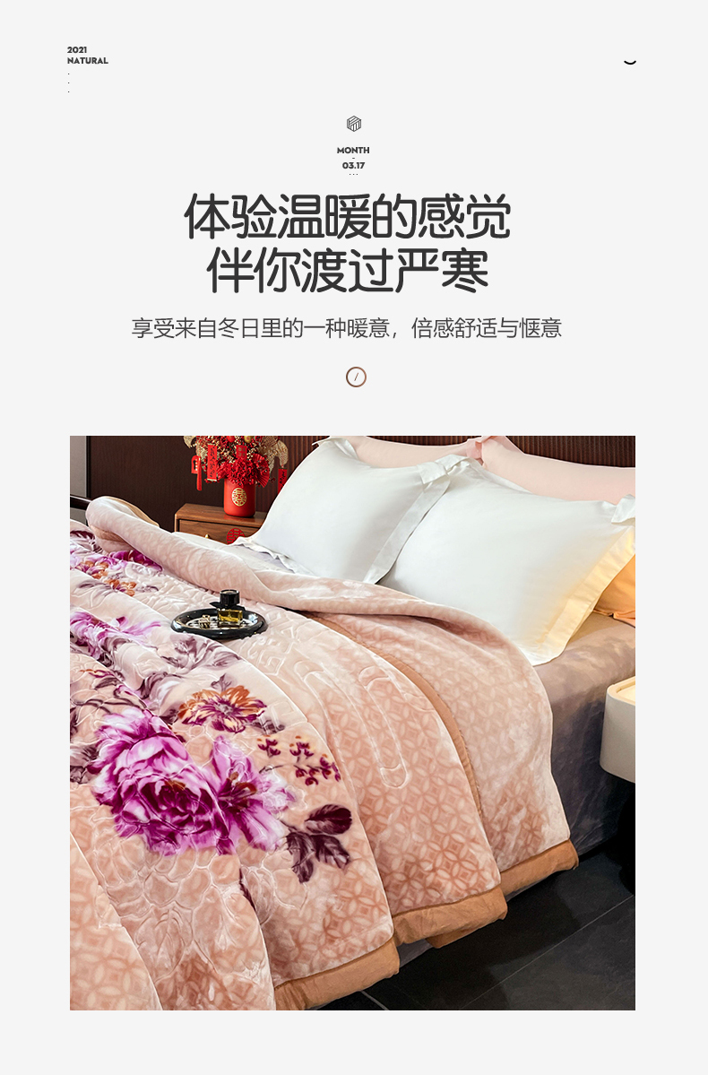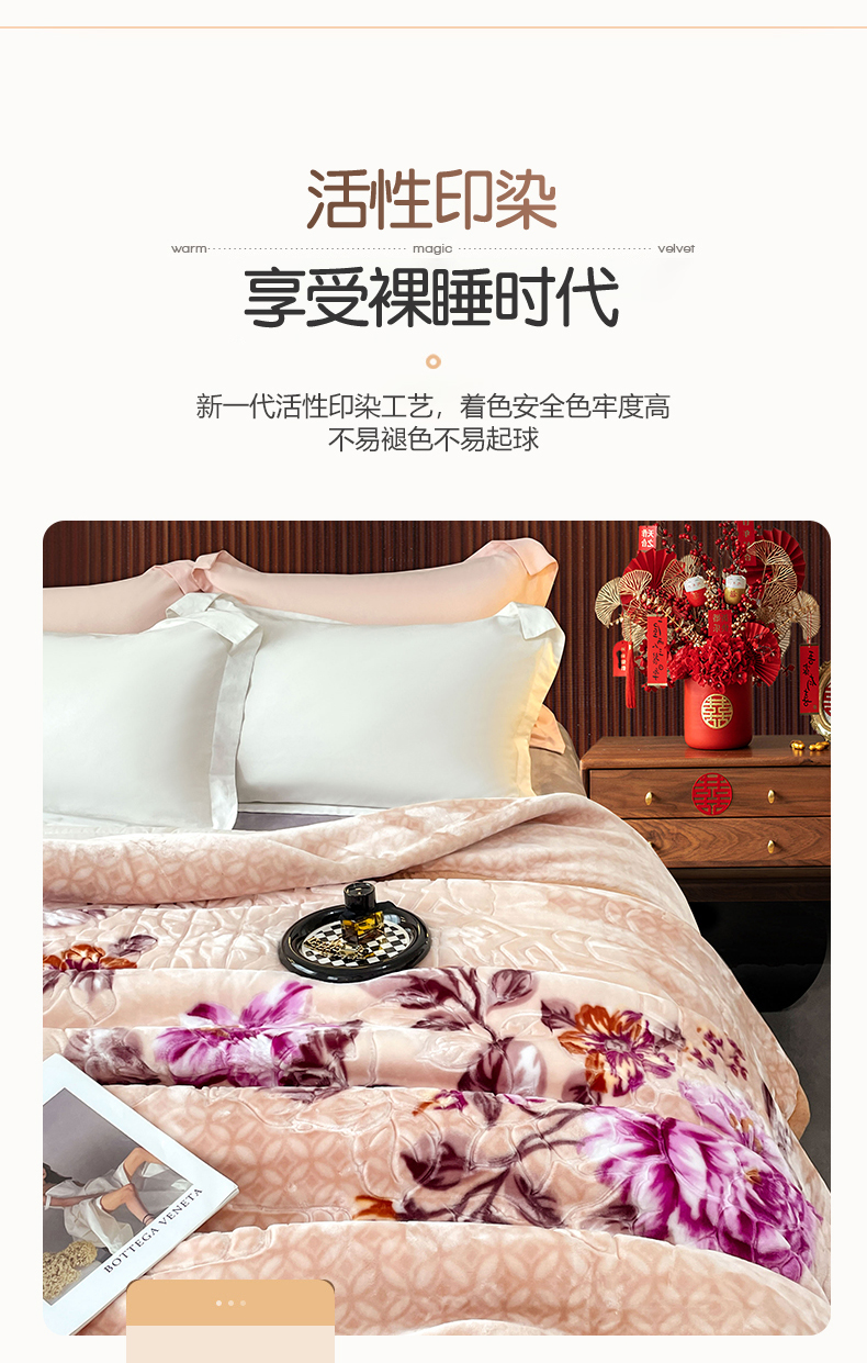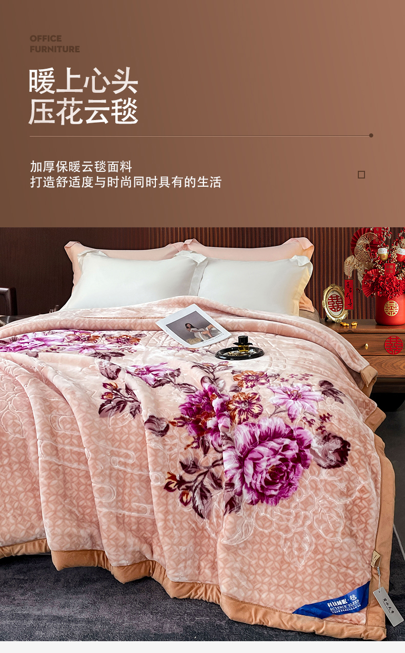 凯轩毛毛毯毯子网销专供 2024新款花开盛世5D婚庆云毛毯毯子 花开盛世-玉色