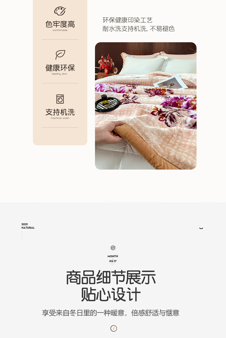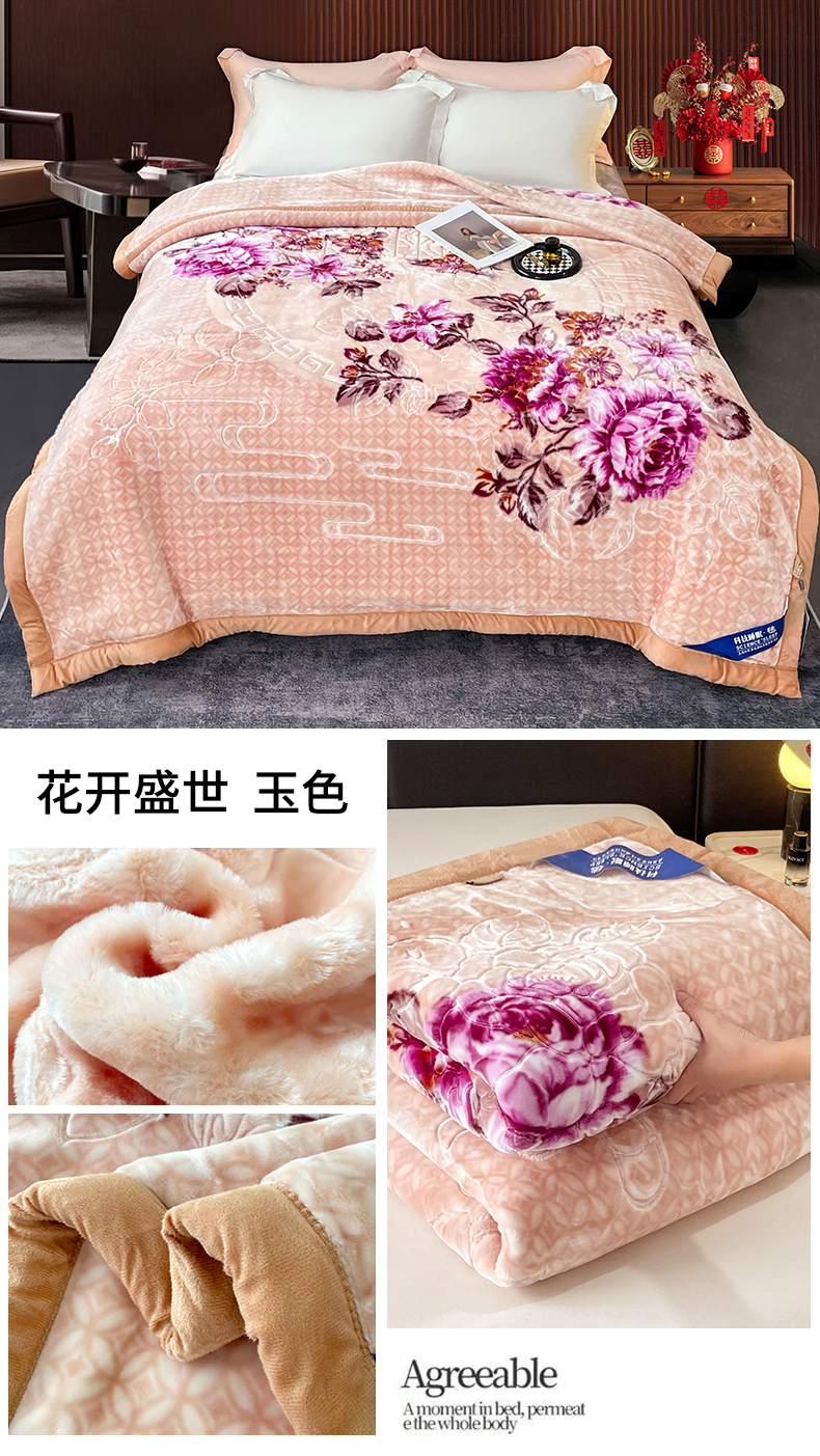 商品名称:凯轩毛毛毯毯子网销专供 2024新款花开盛世5D婚庆云毛毯毯子 花开盛世-玉色