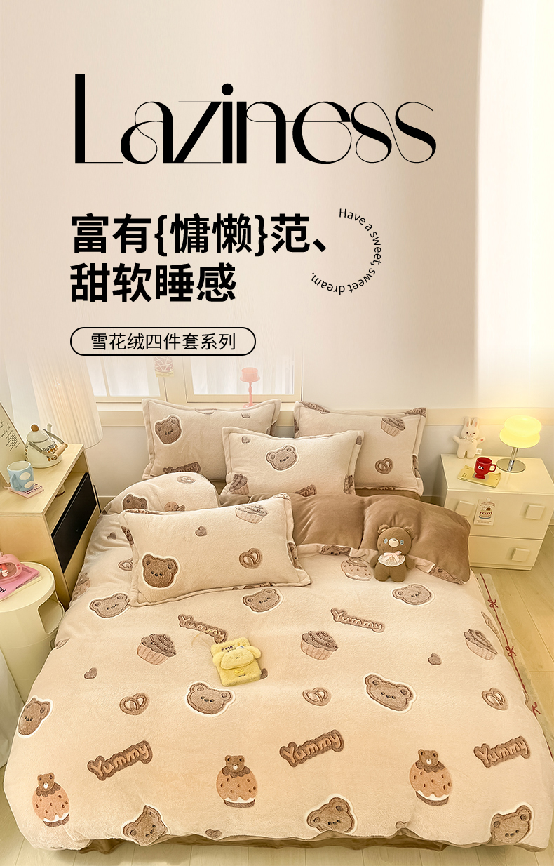 (总)川悦生活 2025新款立体雪花绒印花大床四件套系列一场景一,爱米兔,冰激凌小熊,波波熊,彩虹爱心粉,彩虹爱心蓝,彩虹爱语粉,彩虹爱语蓝,藏蓝星语,哒哒鸭丫,嘎嘎小熊,花田米兔,花园蝴蝶,橘兔,可爱熊,快乐鸭鸭,蜜语奶兔,奶芙小花,奶咖小熊,奶味云朵,妮娜兔,泡芙小兔,巧克力熊,秋语-红豆,少女小兔,塔丽小熊猫,桃心爱语,甜蜜日常粉,甜系粉熊,甜系龙龙,甜心花田,小狗物语,小熊花园,小雪狗,小郁金,幸福甜兔,熊小巴,樱桃啵啵,郁金奶兔,云朵奶狗,ins樱桃,lucky熊猫