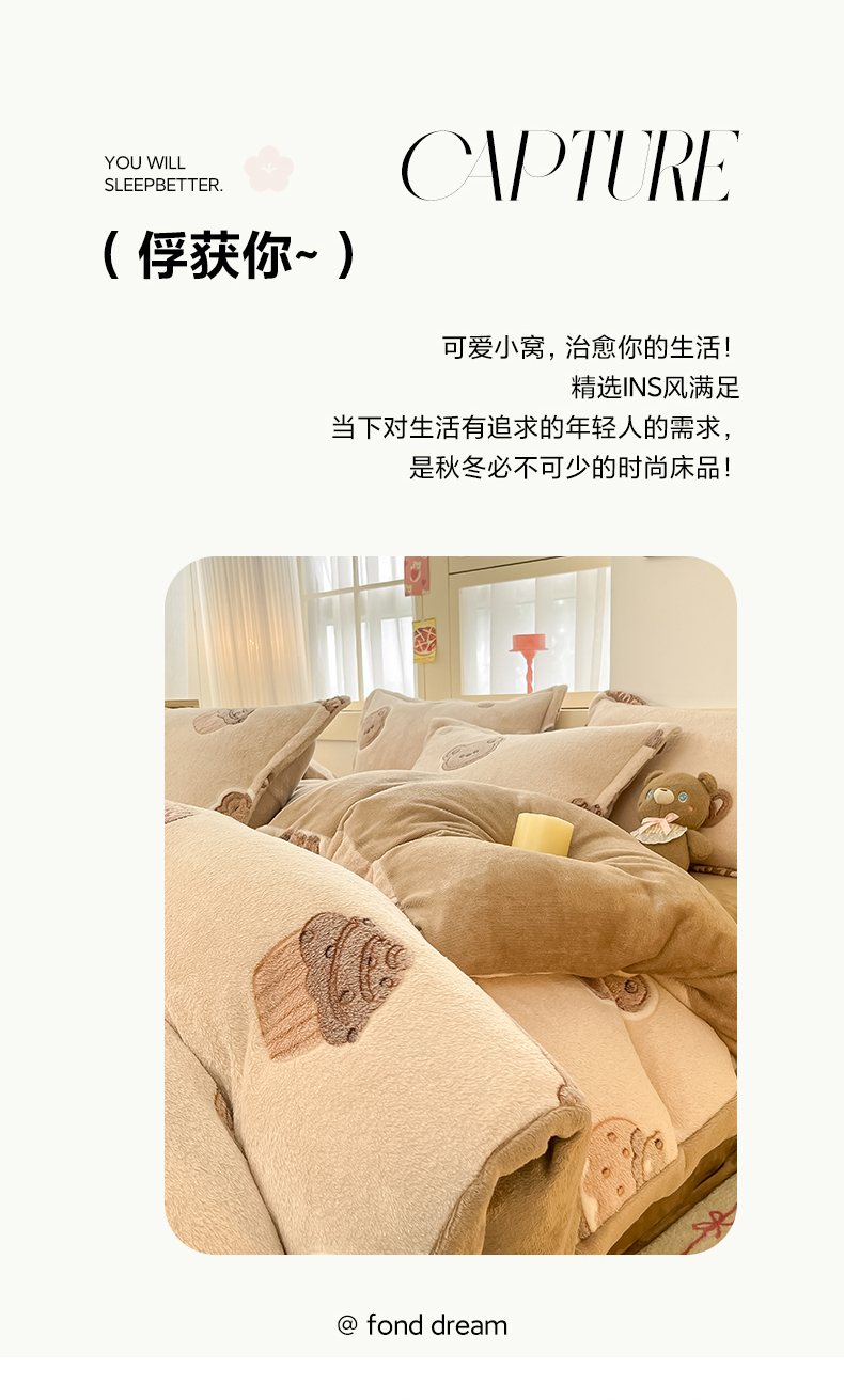 (总)川悦生活 2025新款A类300克高克重提花牛奶绒四件套,奶咖熊仔,奶咖朵朵,奶甜樱桃,暖阳小花,甜蜜福蝶,甜蜜福蝶-咖,甜甜蝴蝶结,星星愿望,幸福爱语-咖