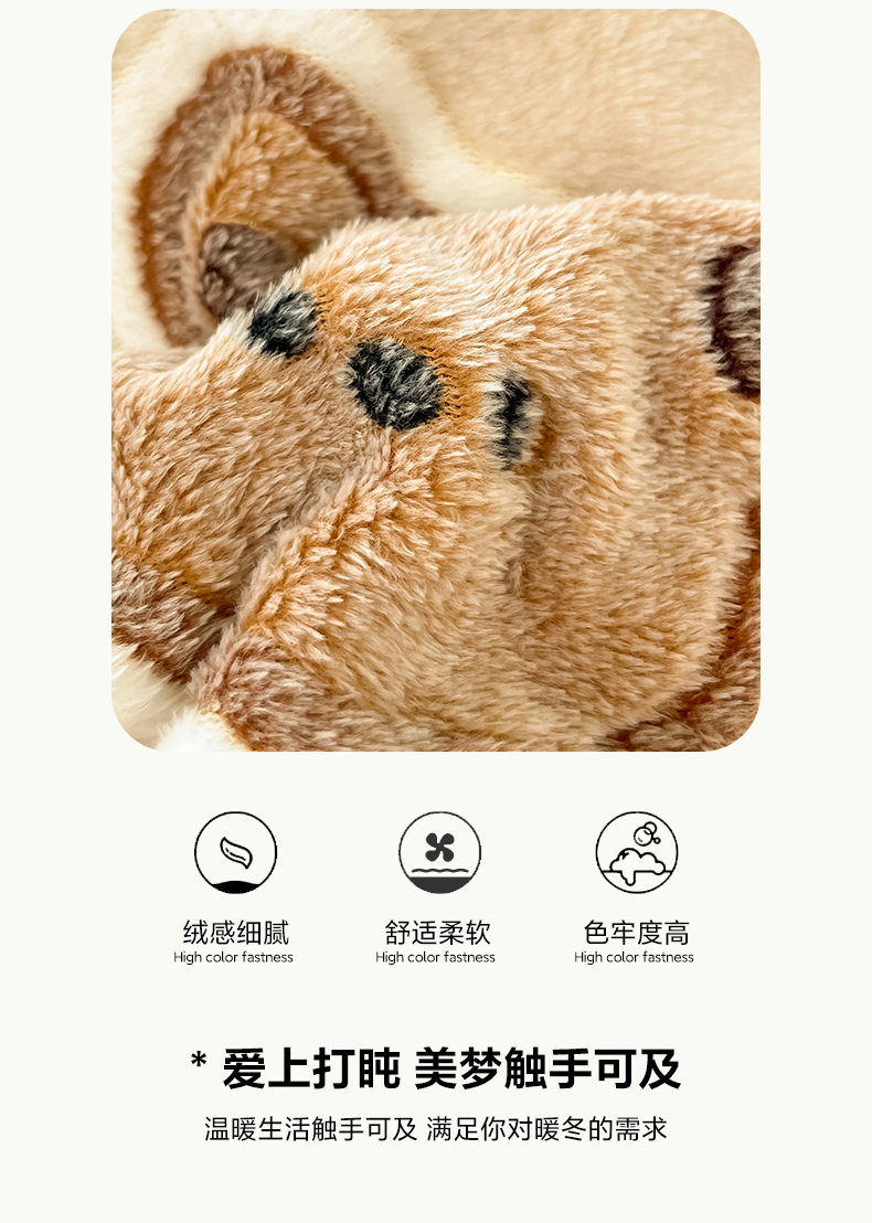 商品名称:川悦生活 2024新款雪花绒印花单被套系列-自然光 巧克力熊
