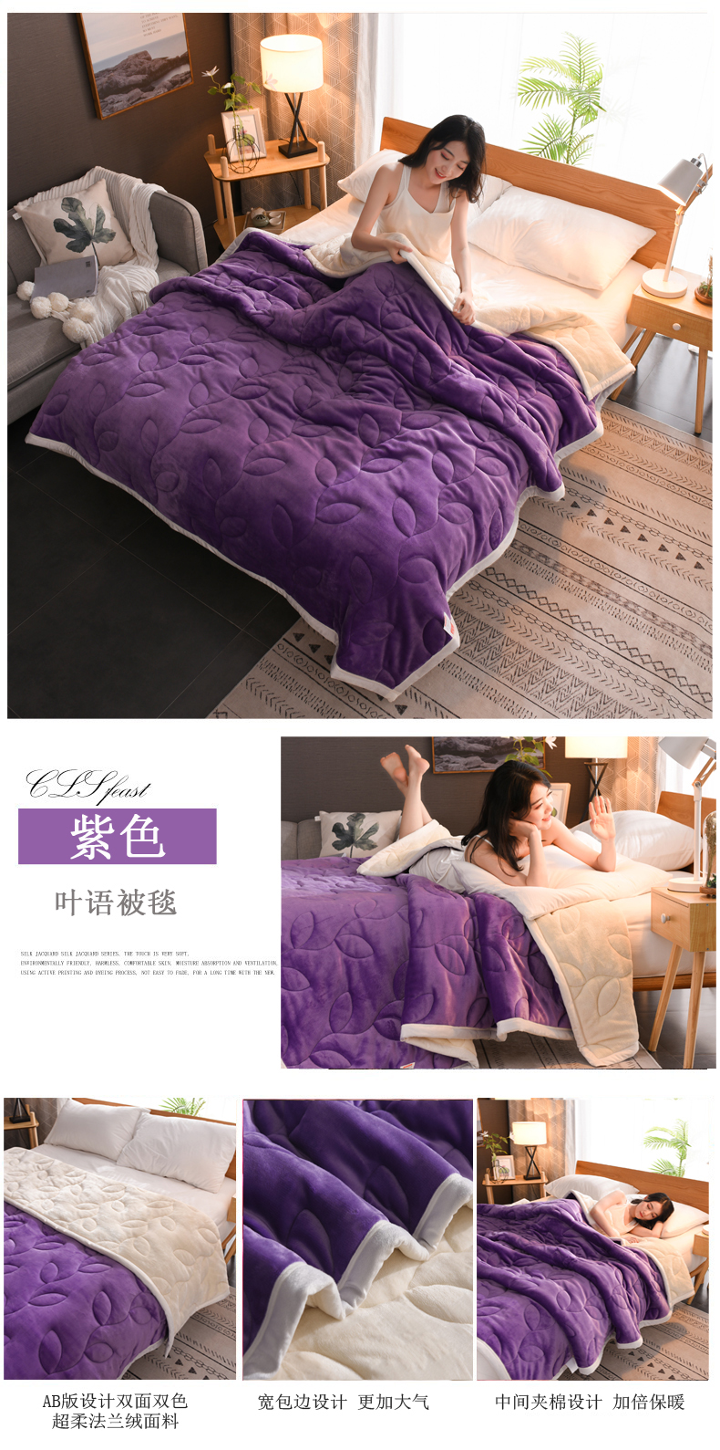 商品名称:小牛席业 2024新款复合休闲毛毯-叶语被毯 紫色
