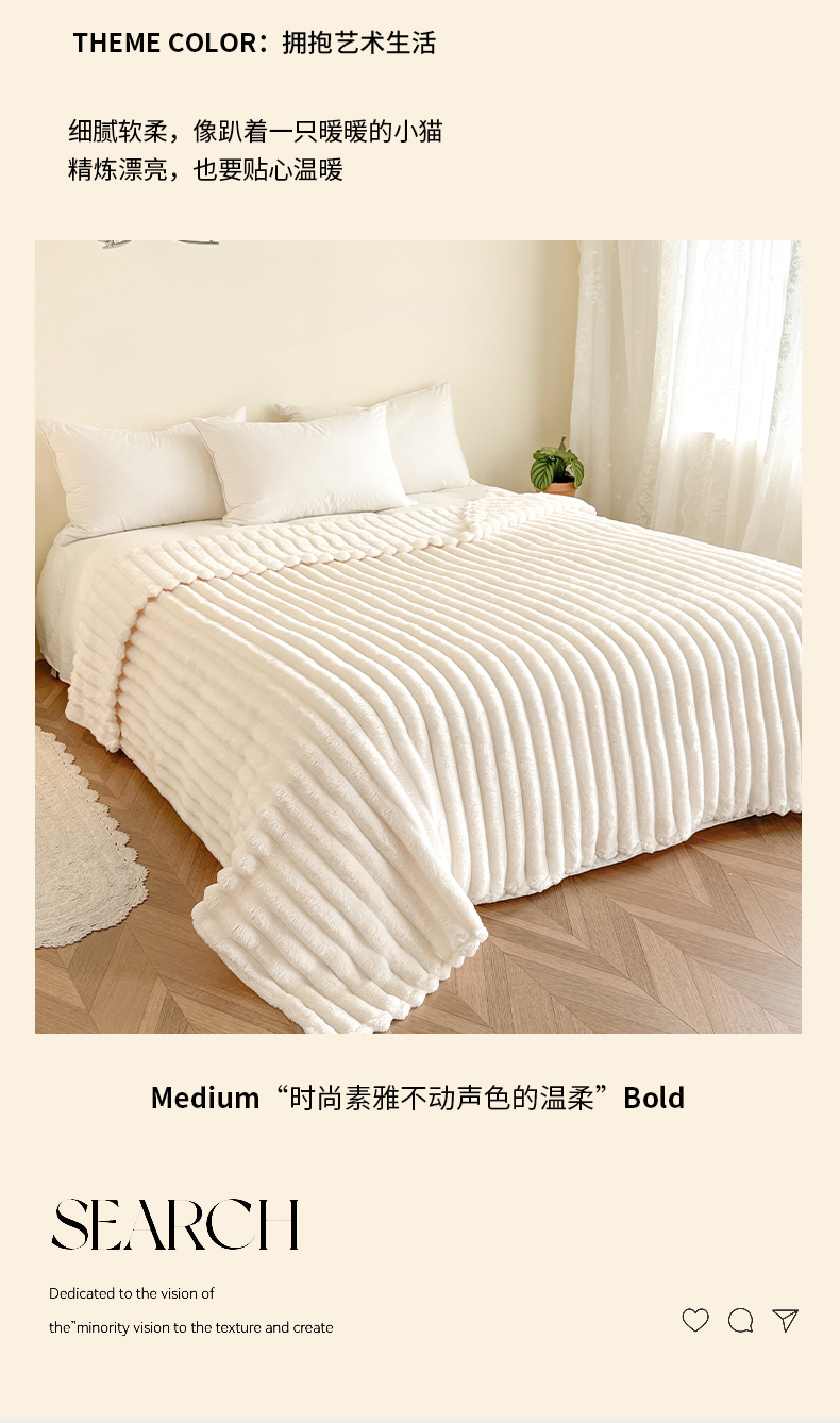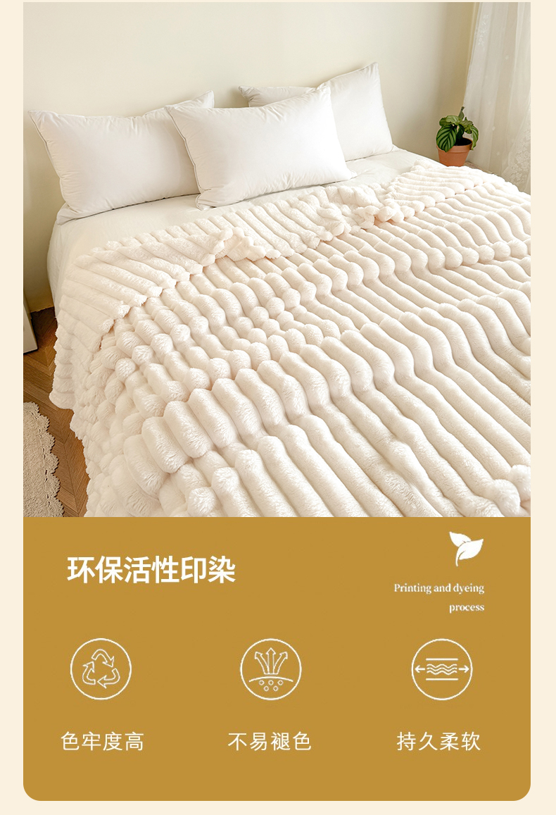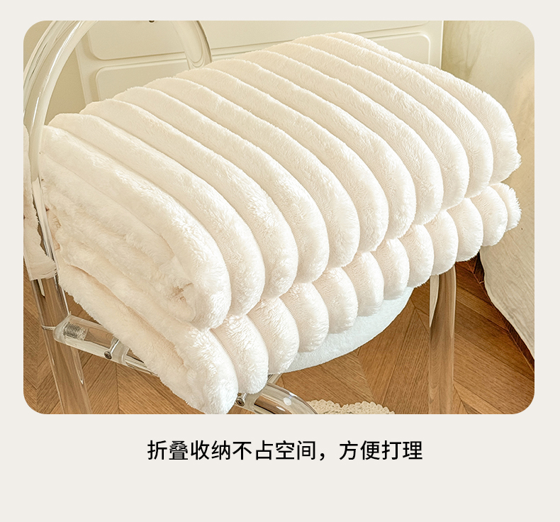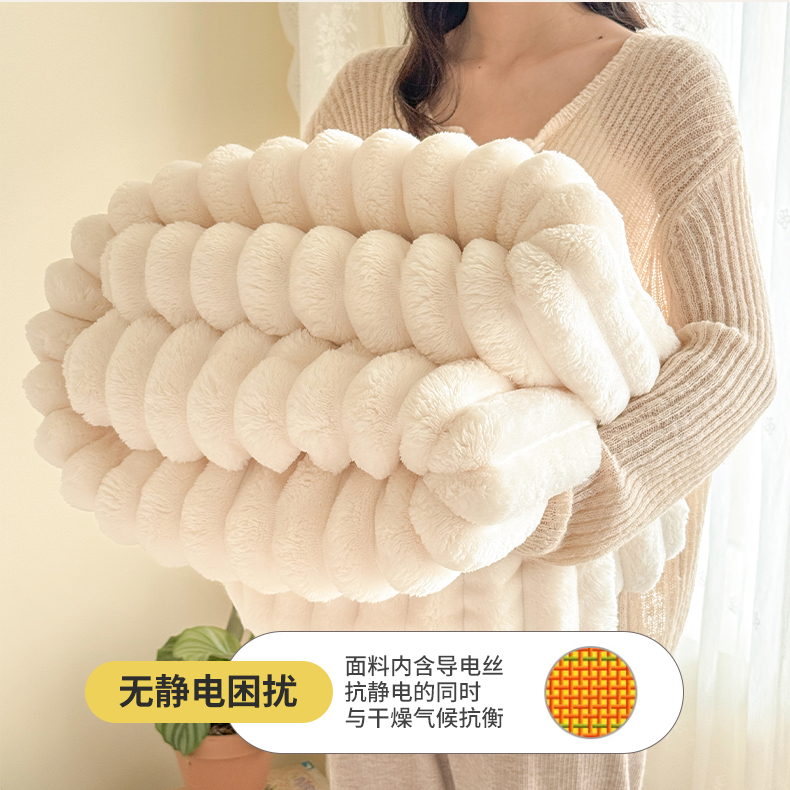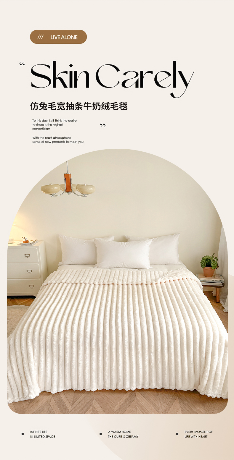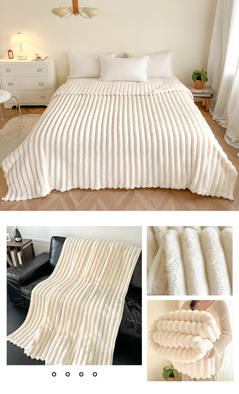 商品名称:璐维斯家纺 2025款跨境专供外贸出口电商热销款仿兔毯加厚牛奶绒盖毯 米白