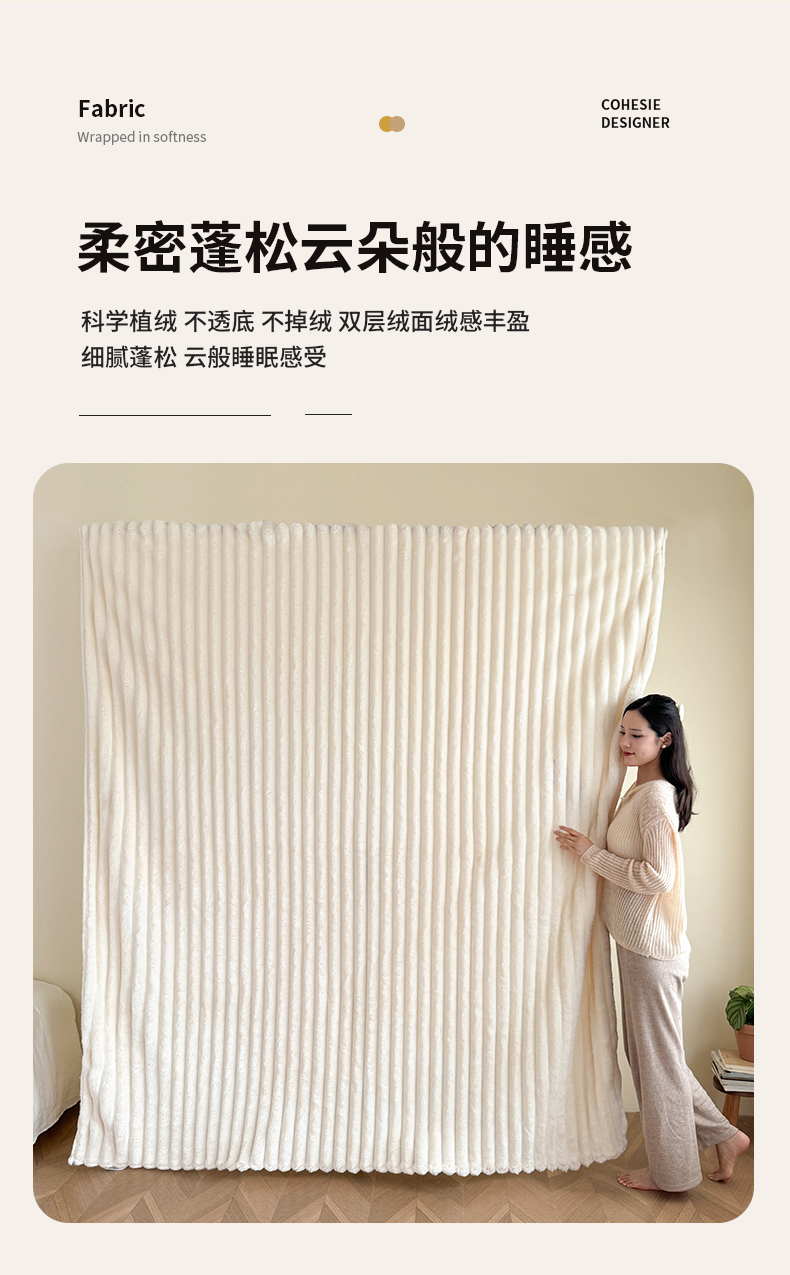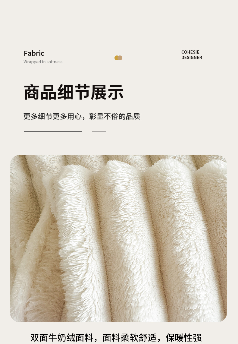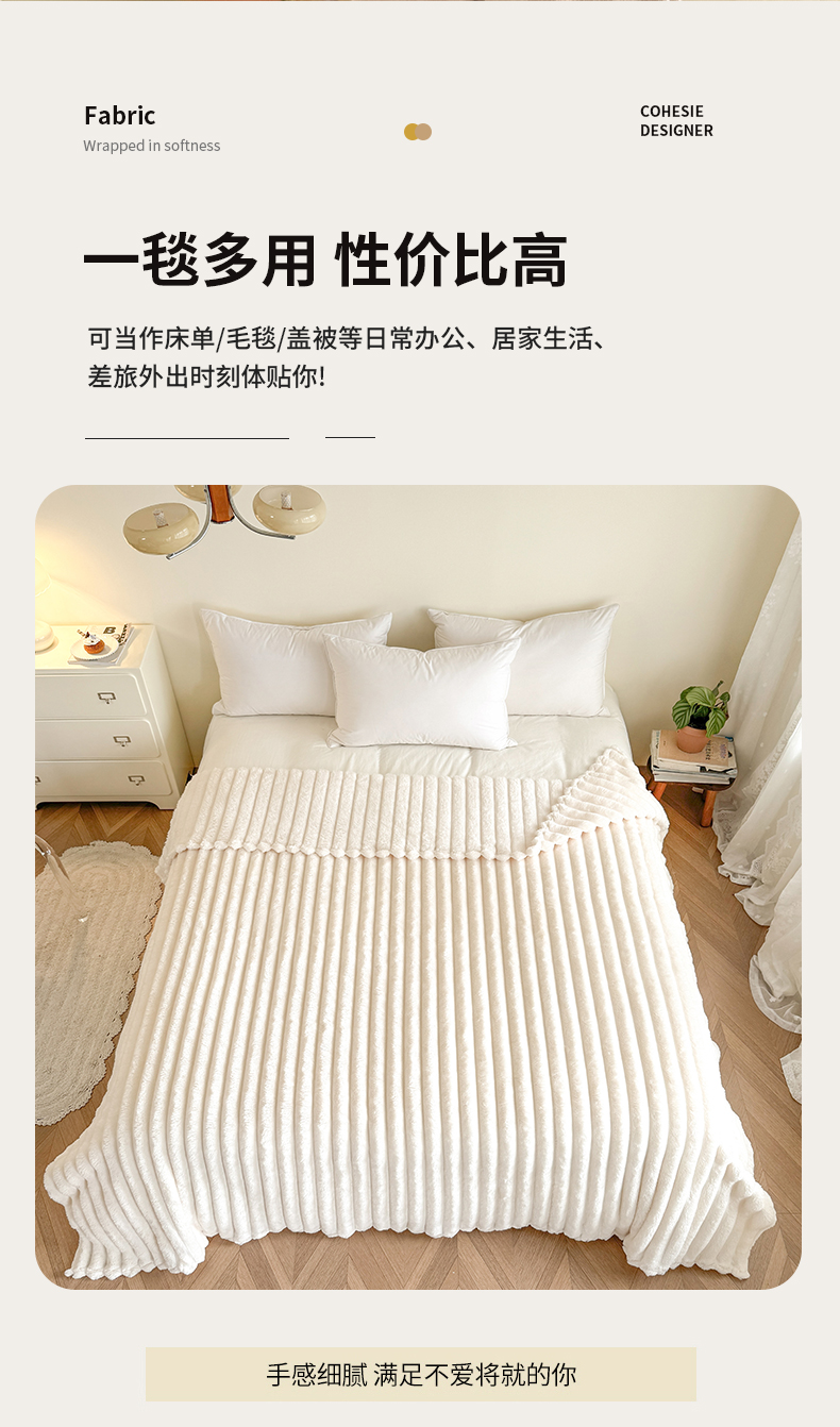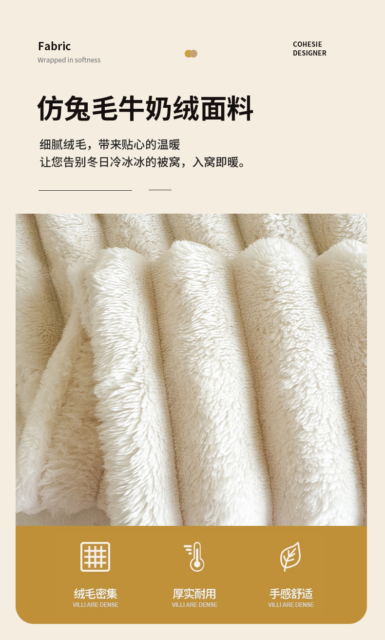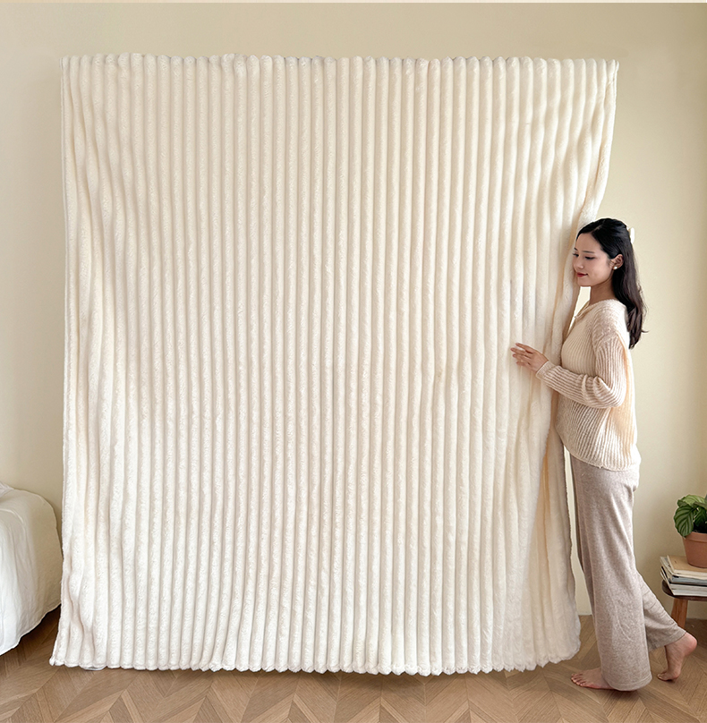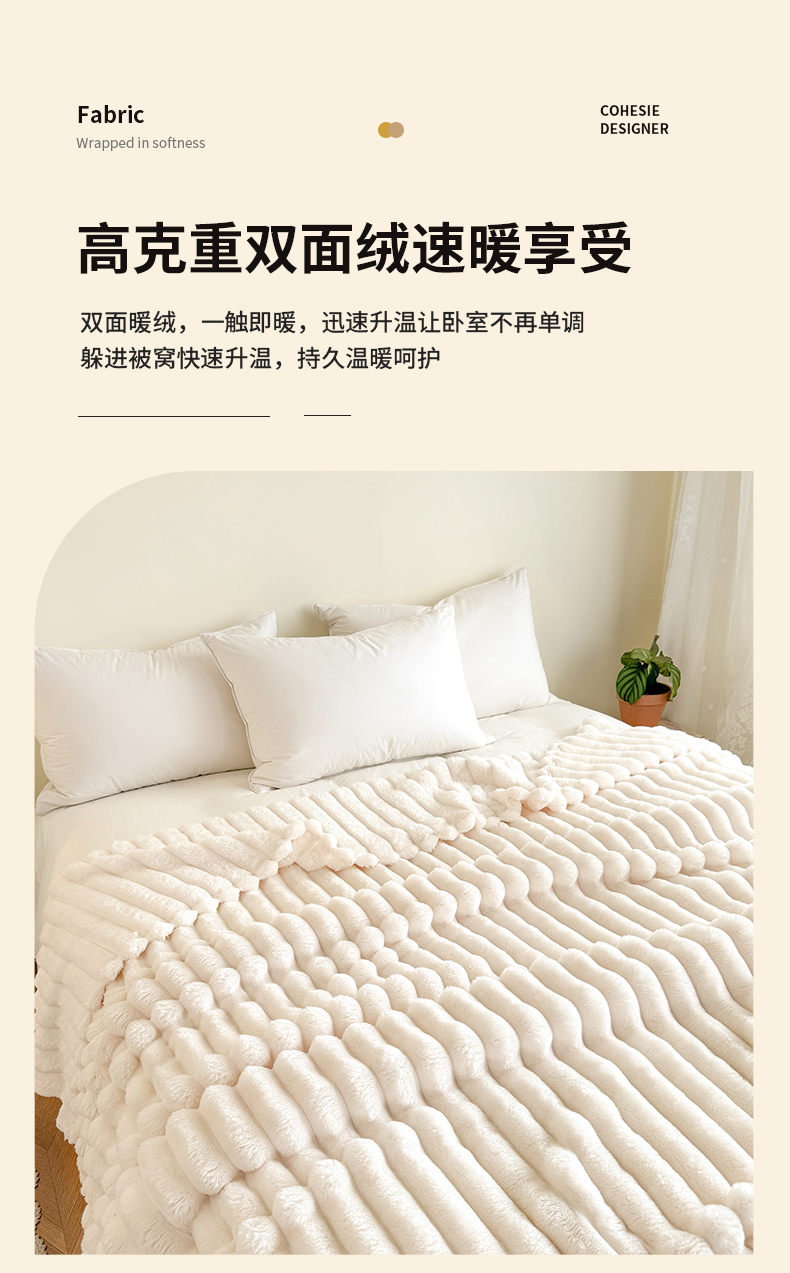 商品名称:璐维斯家纺 2025款跨境专供外贸出口电商热销款仿兔毯加厚牛奶绒盖毯 米白
