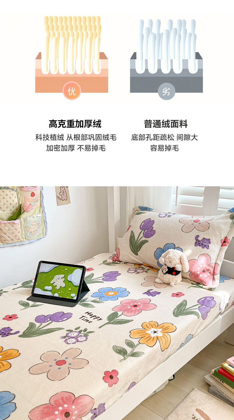 • 91家纺网 家纺一手货源 找家纺 川悦生活 2024新款宿舍牛奶绒单床笠 床笠香暮