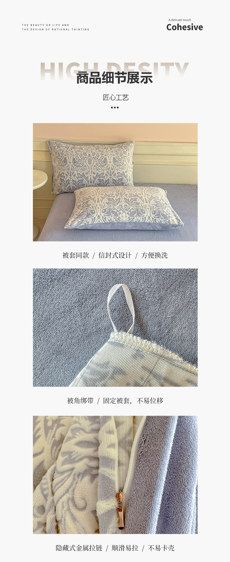 商品名称:其奥 2025新款8斤A类230克牛奶绒提花烂花四件套床笠款床单款 可可西里 灰蓝