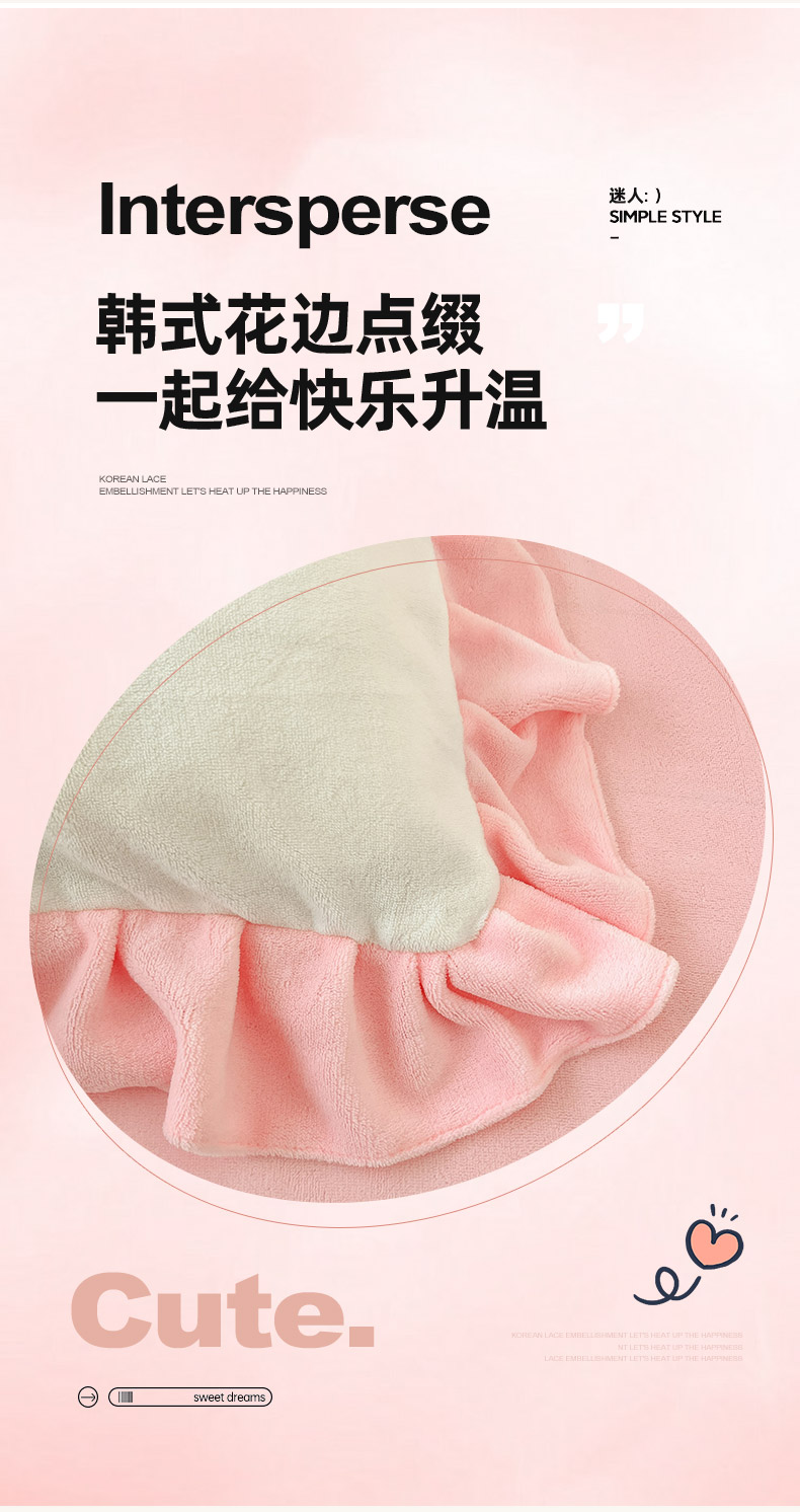丝印良品 2024直播秋冬高克重500克床裙款泡泡四件套纯色印花泡泡-粉白,泡泡-粉白
