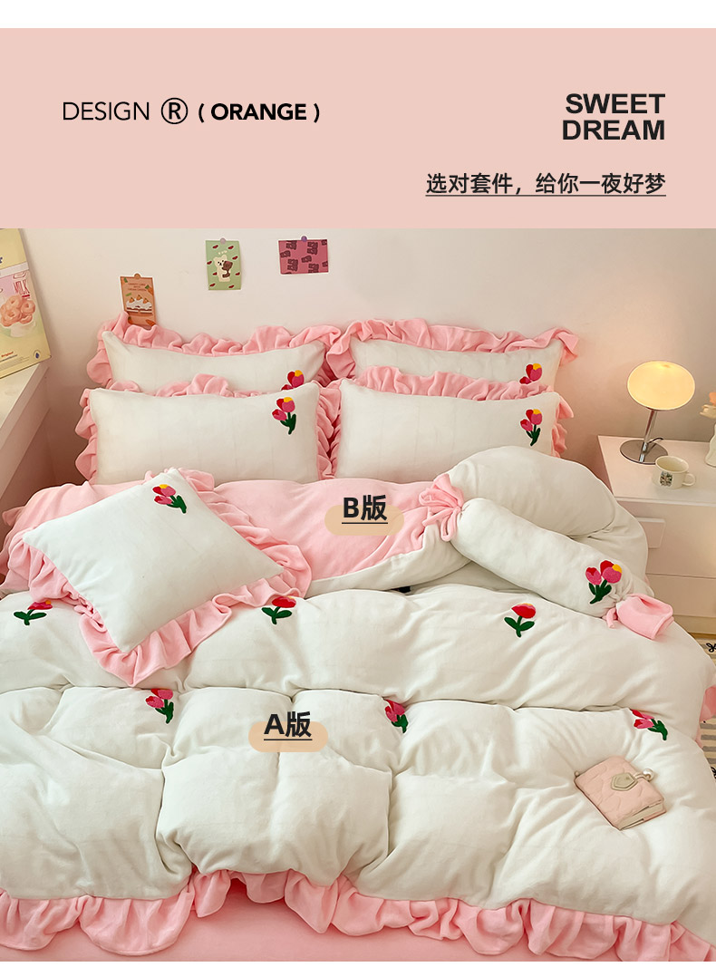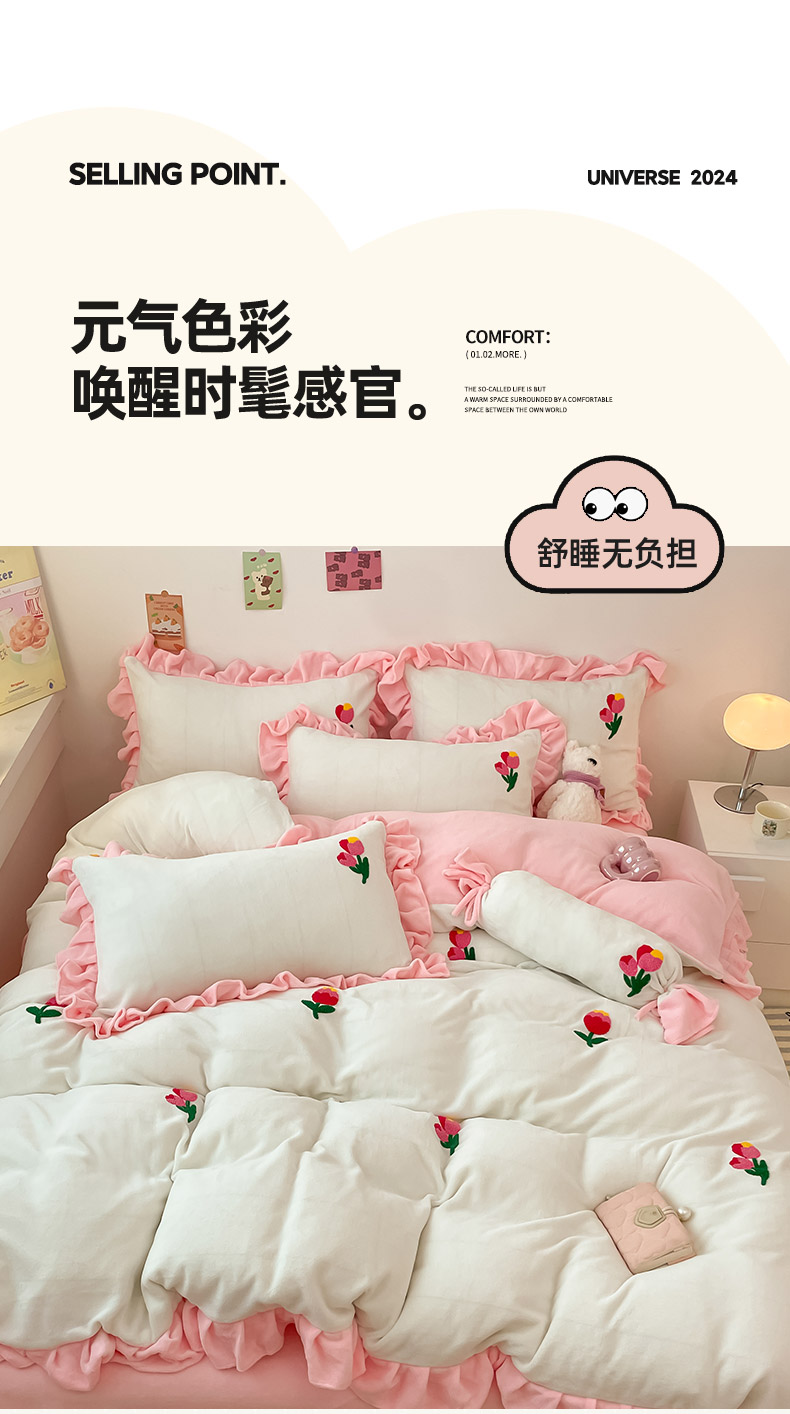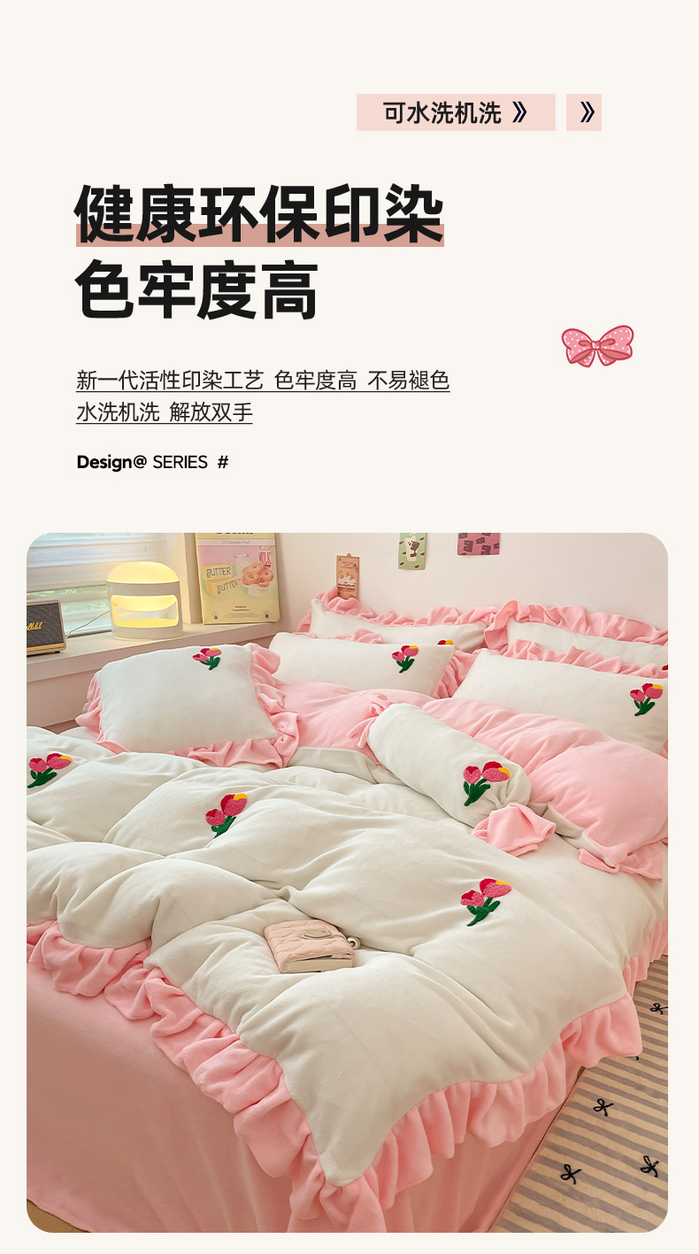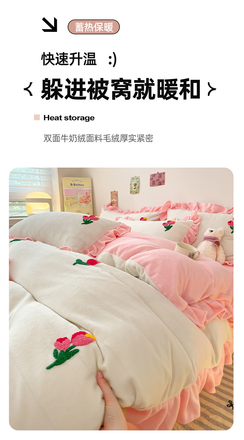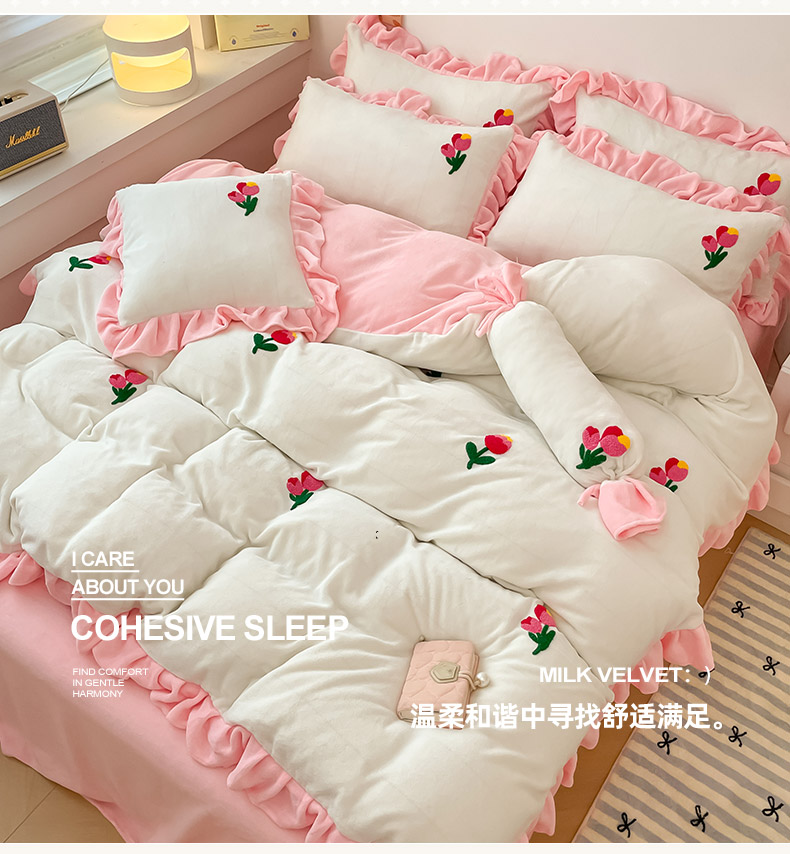 丝印良品 2024秋冬韩版公主风牛奶绒四件套 郁金香