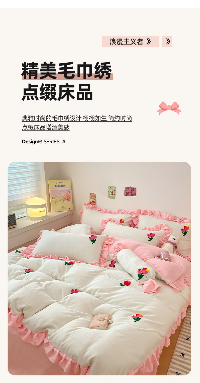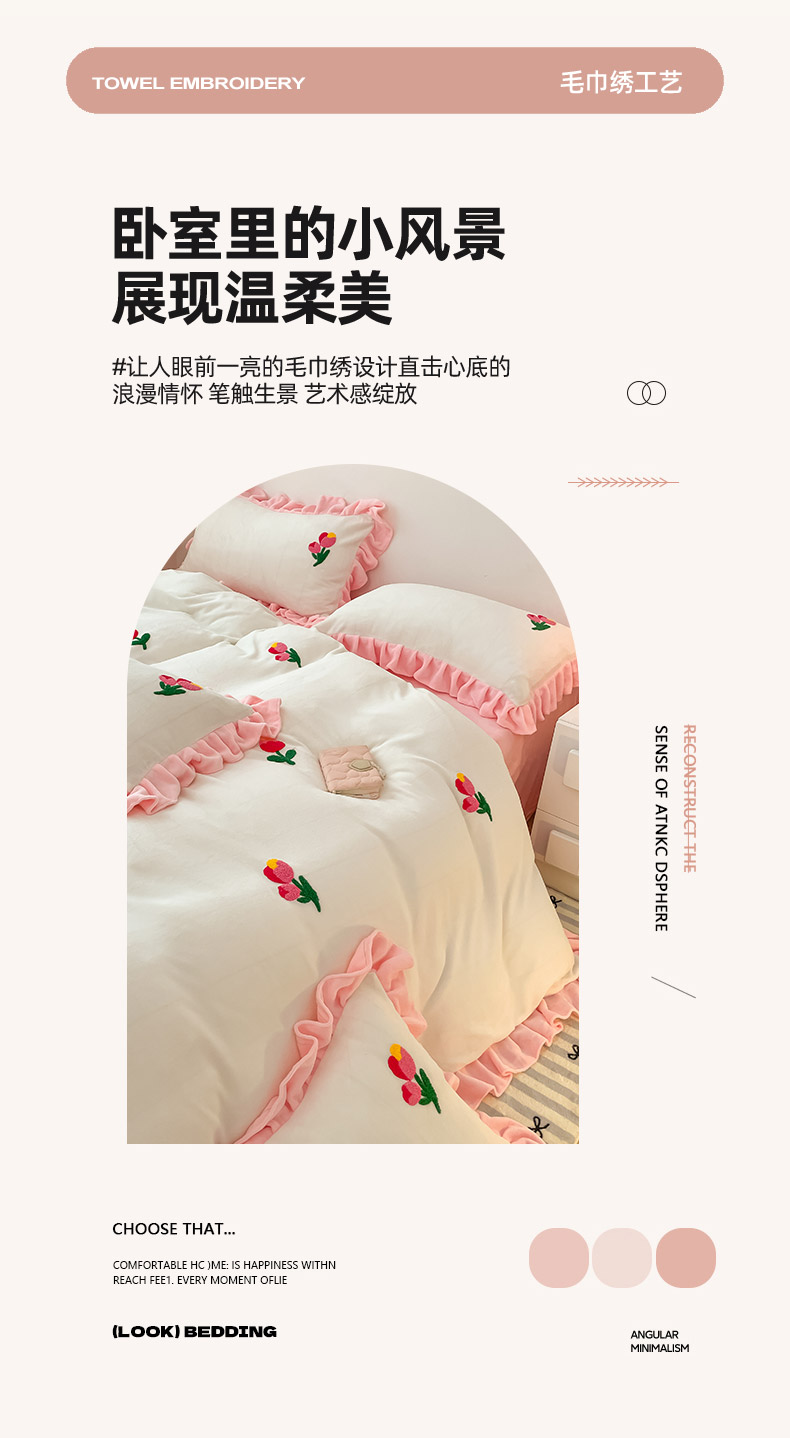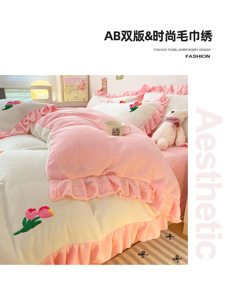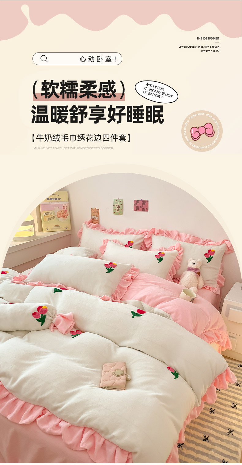 丝印良品 2024秋冬韩版公主风牛奶绒四件套 郁金香