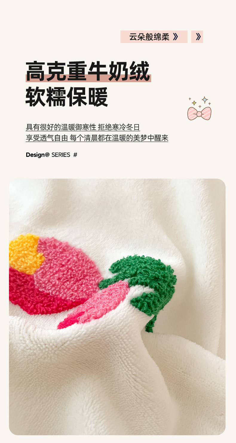 (总)丝印良品 2025新款加厚牛奶绒刺绣床裙款四件套,草莓-奶白粉,草莓-奶白,草莓-湖水蓝,草莓-落樱粉,草莓-薰衣紫