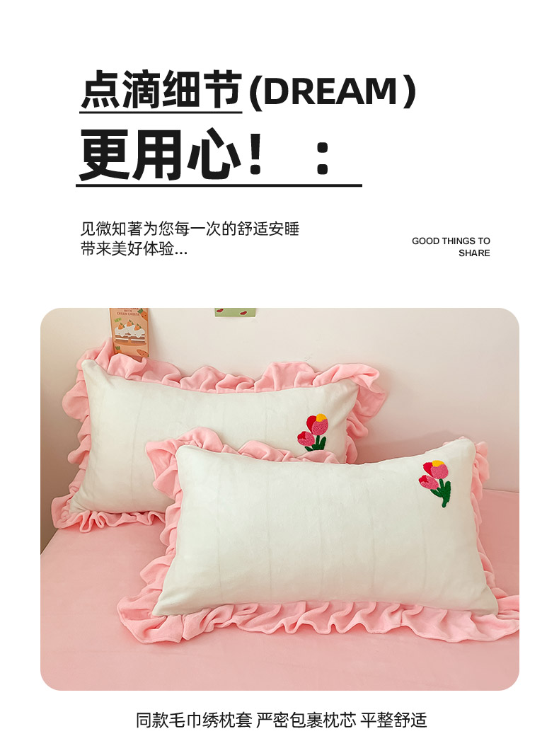 商品名称:丝印良品 2024秋冬韩版公主风牛奶绒四件套 郁金香