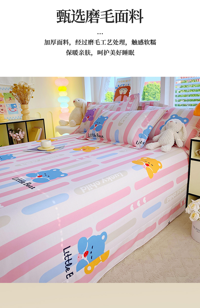 商品名称:凯磊 2024新款AB版.生态磨毛印花系列单床单 彩虹熊